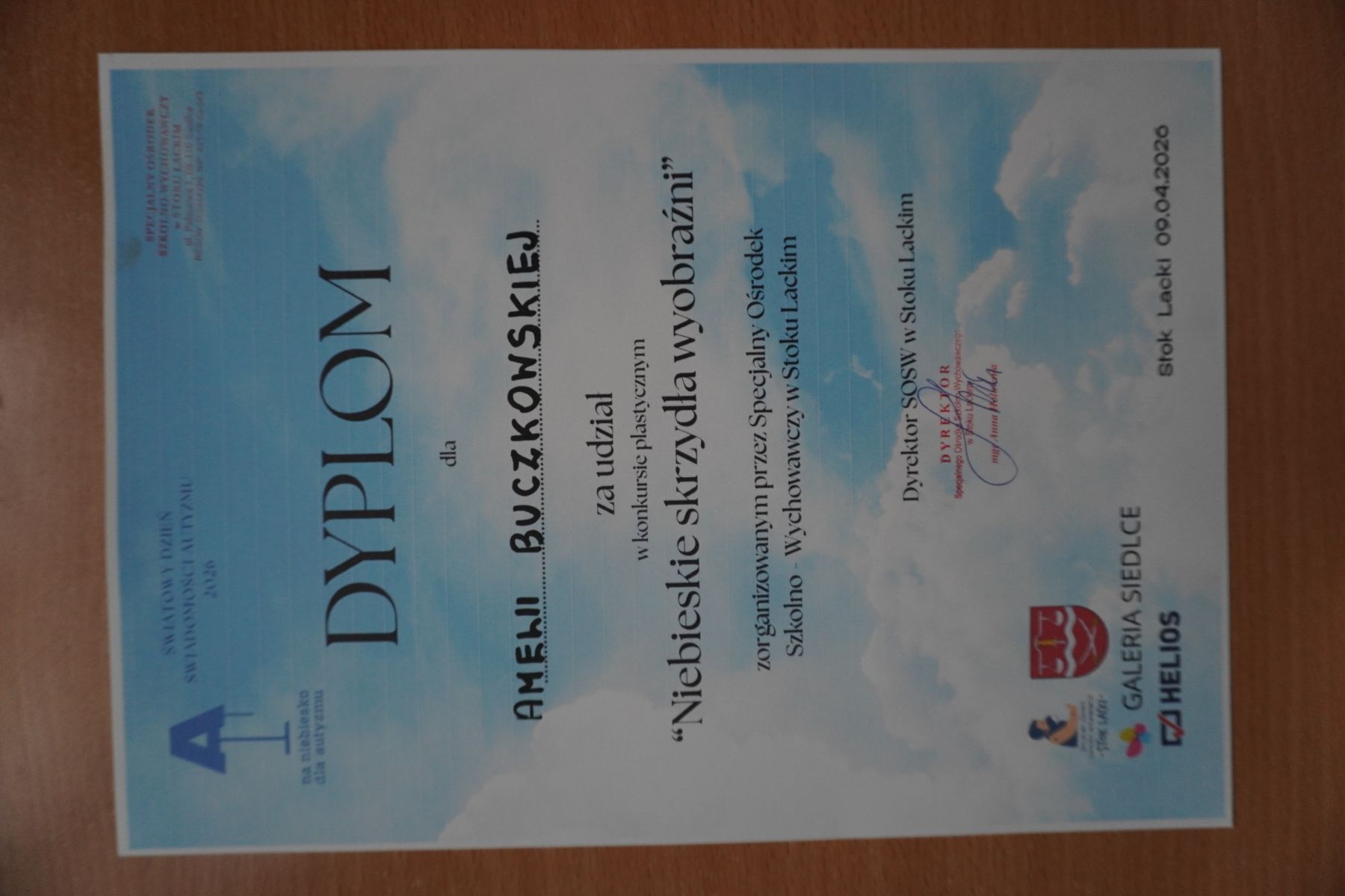 9 kwietnia 2026 roku o godz. 10.00 w Kinie Helios w Galerii Siedlce odbyło się uroczyste podsumowanie konkursu plastycznego „Niebieskie skrzydła wyobraźni”. Wydarzenie zgromadziło wielu gości, uczestników oraz ich bliskich, a jego najważniejszym momentem było wręczenie nagród laureatom.