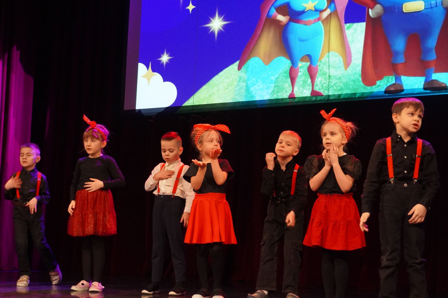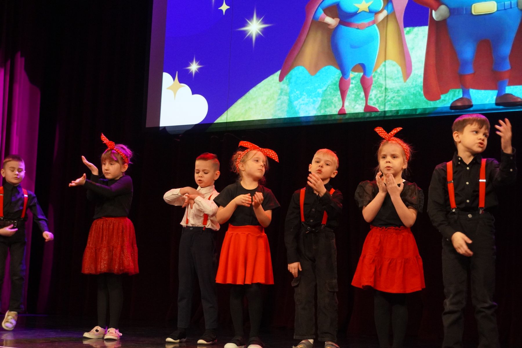 Na scenie zaprezentowały się dzieci z różnych grup wiekowych, przedstawiając bogaty program artystyczny. Występy obejmowały wiersze, piosenki, tańce oraz krótkie inscenizacje, które wprowadziły publiczność w radosny i wzruszający nastrój.