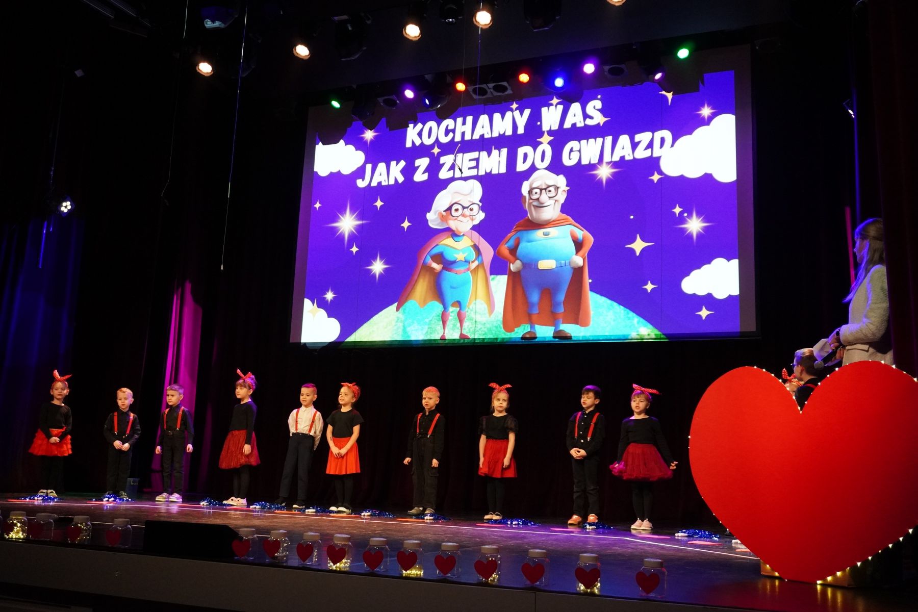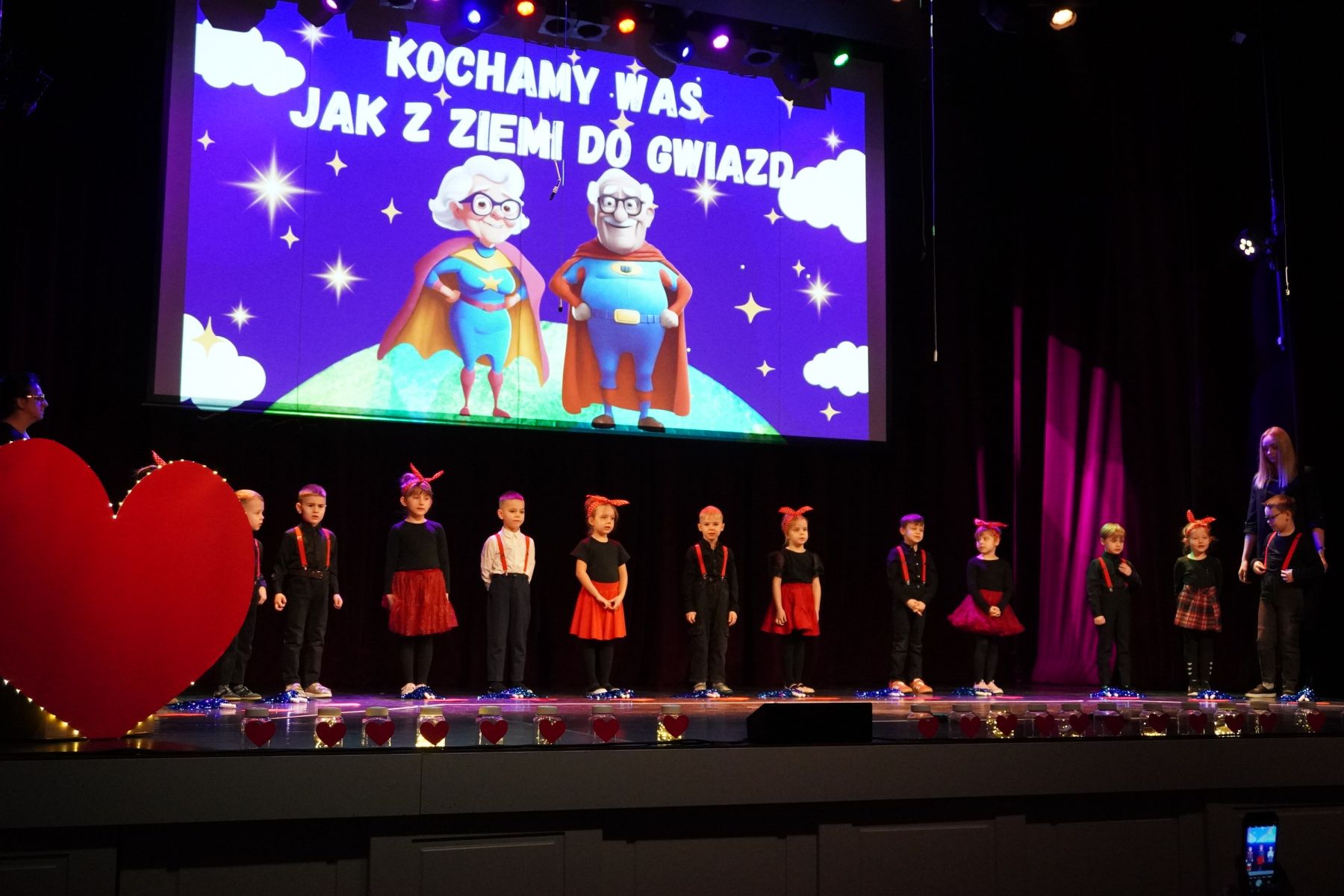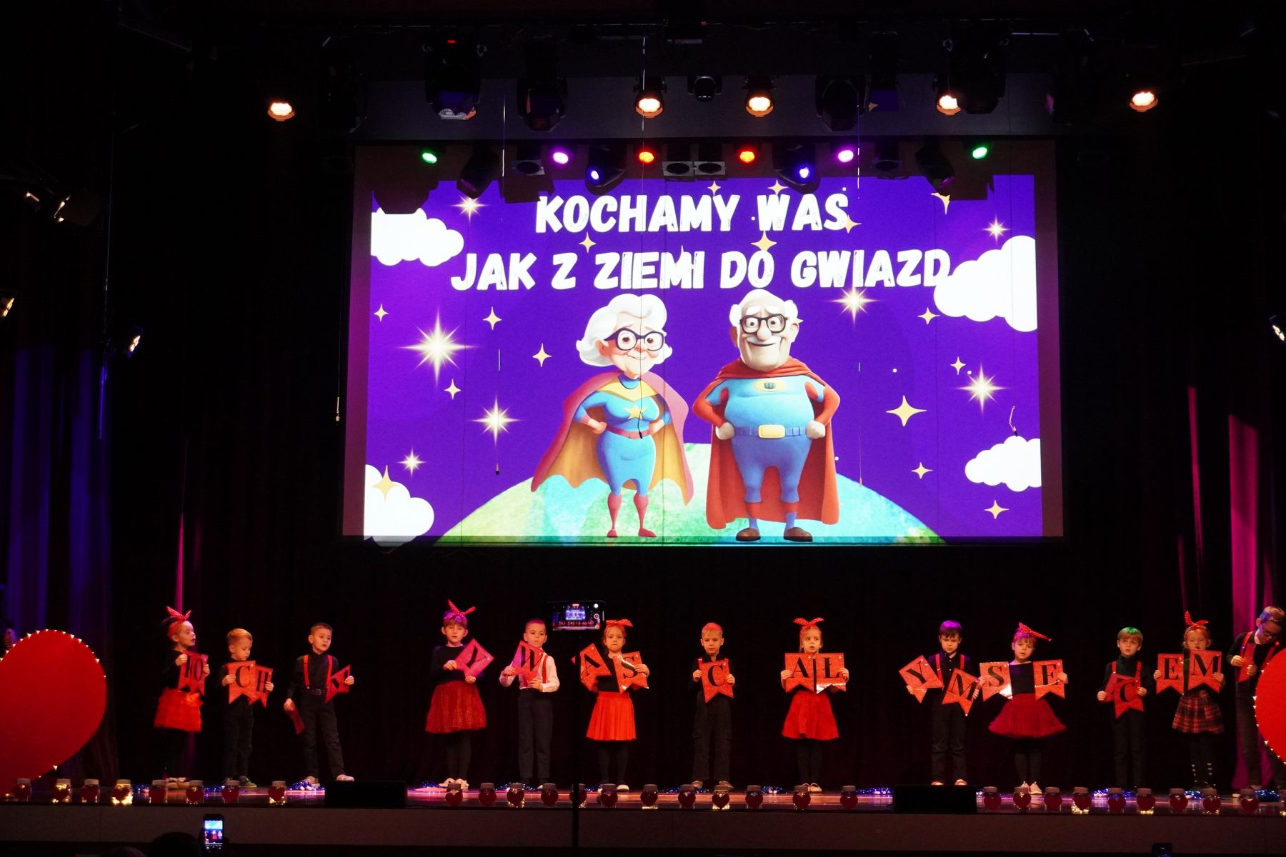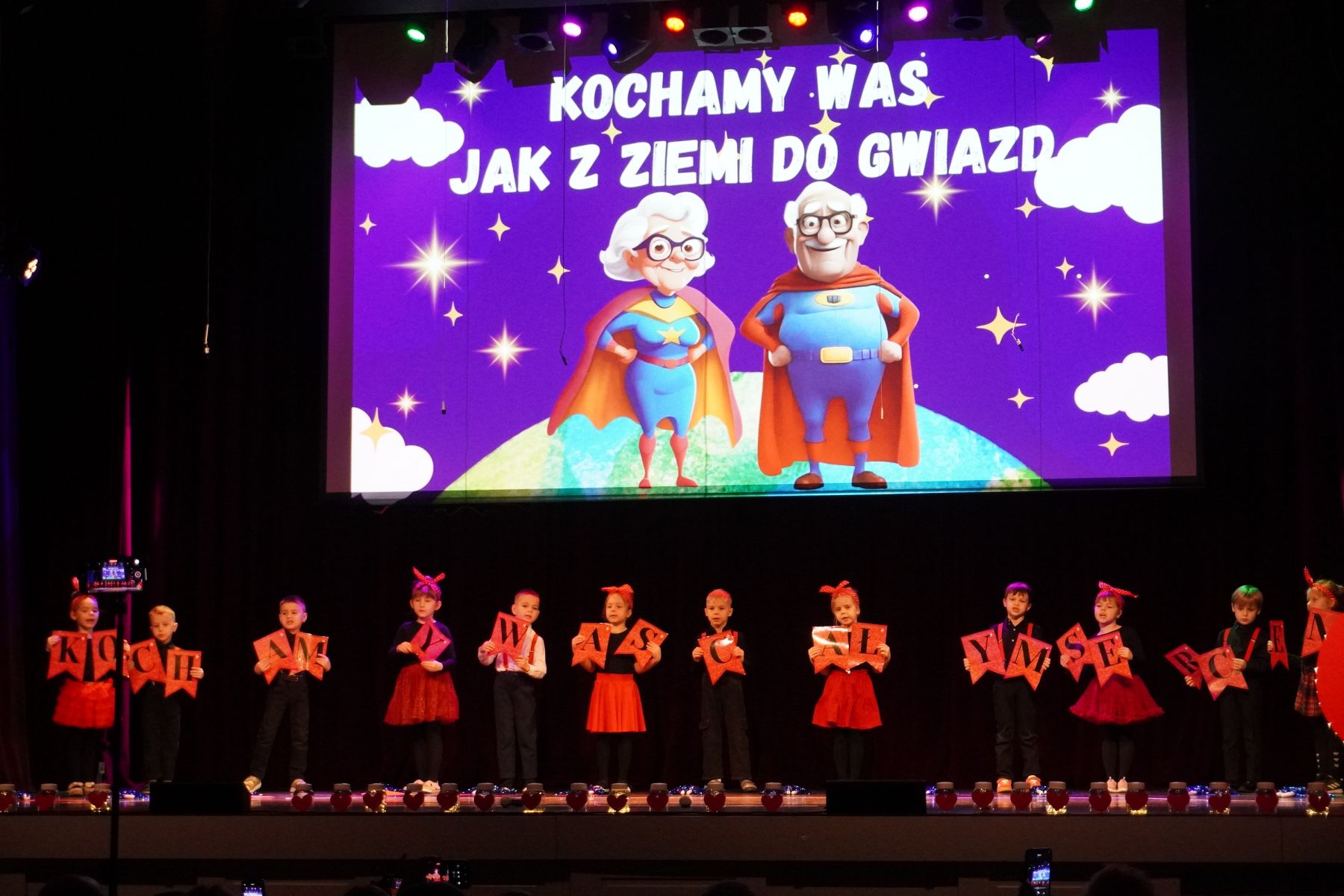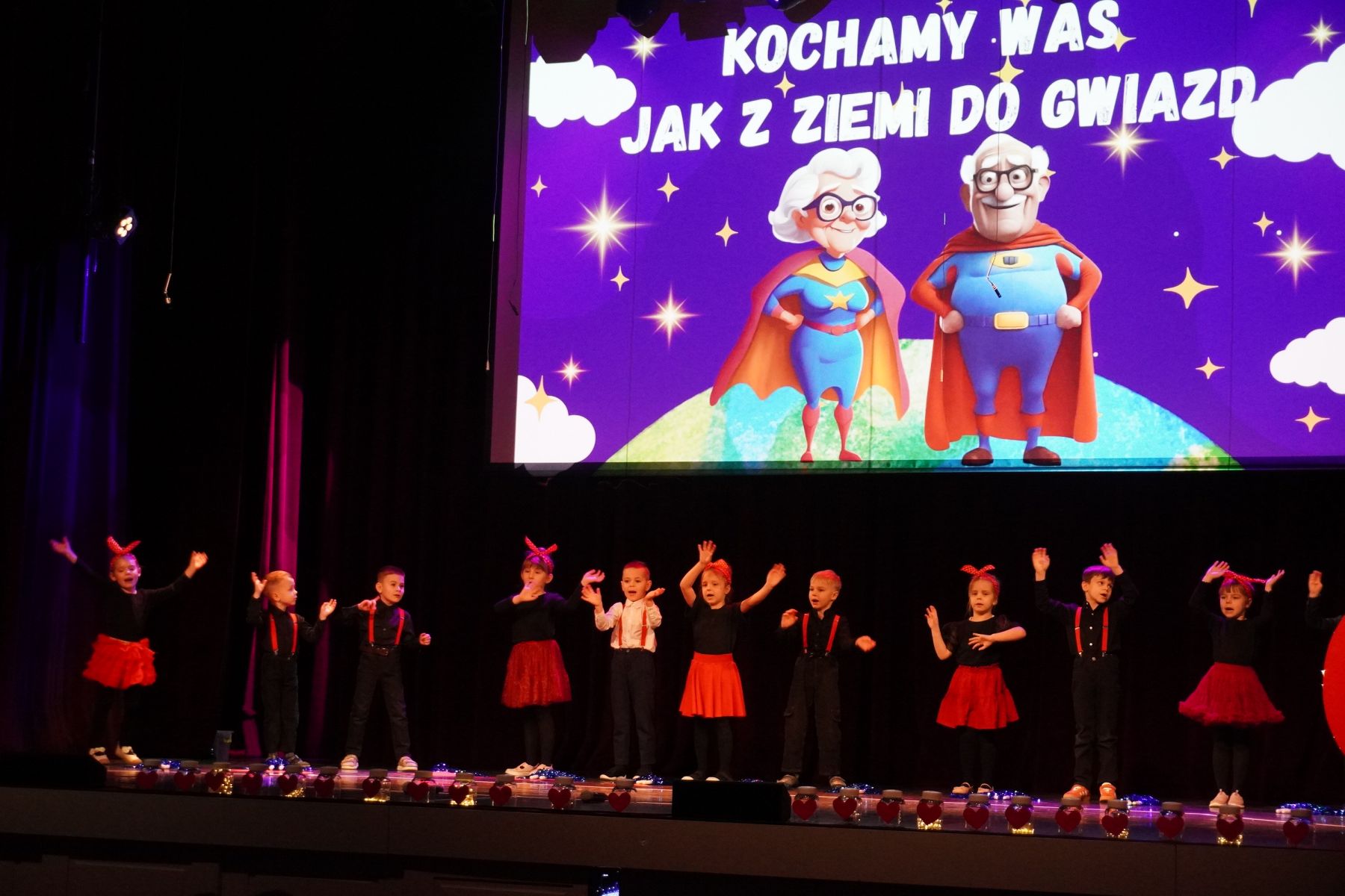 Publiczność nagradzała młodych artystów gromkimi brawami, a na twarzach babć i dziadków pojawiały się łzy wzruszenia i szczere uśmiechy.