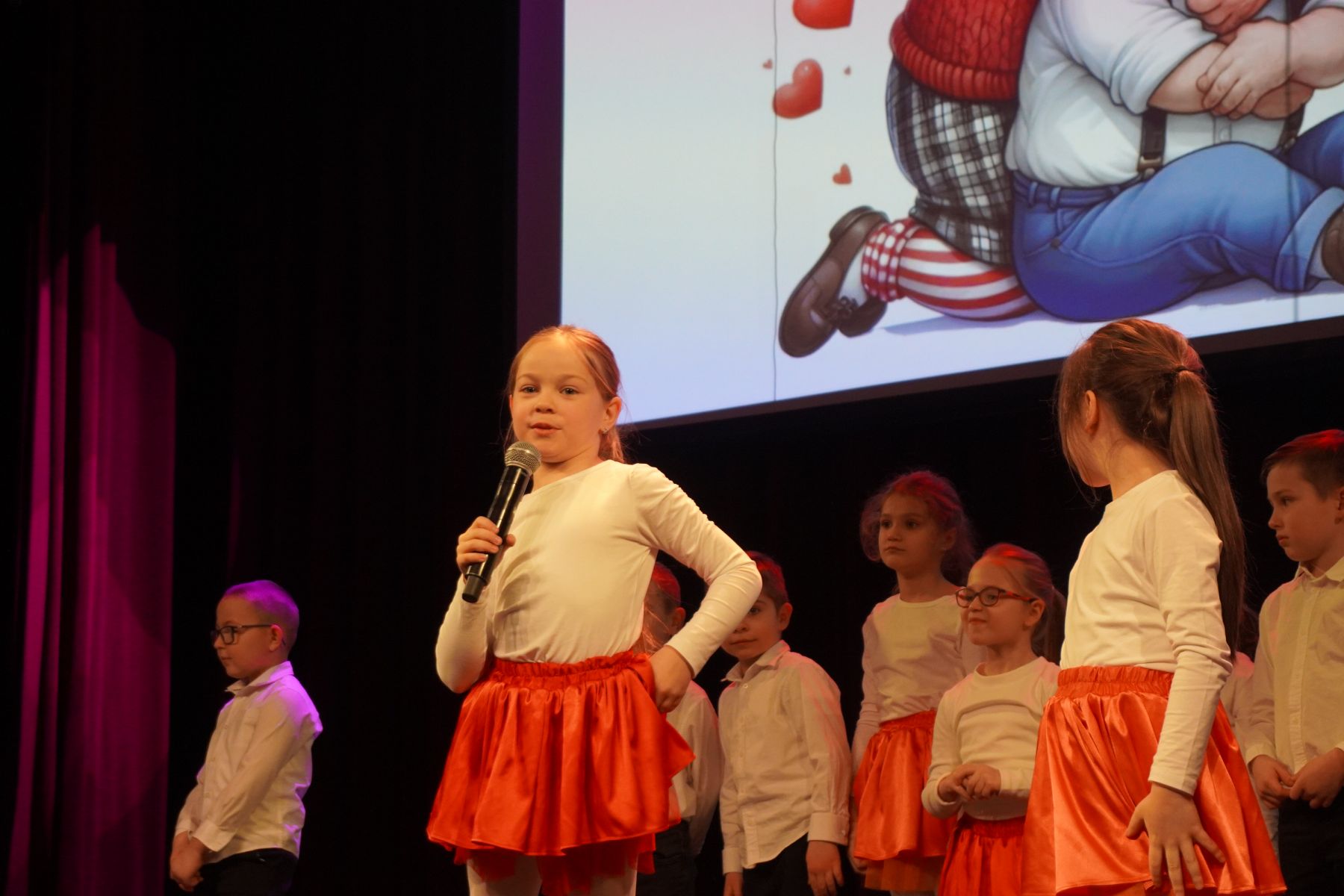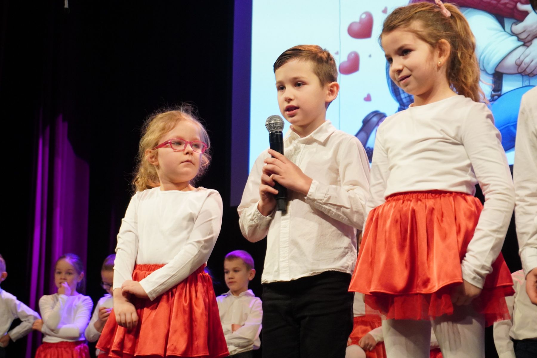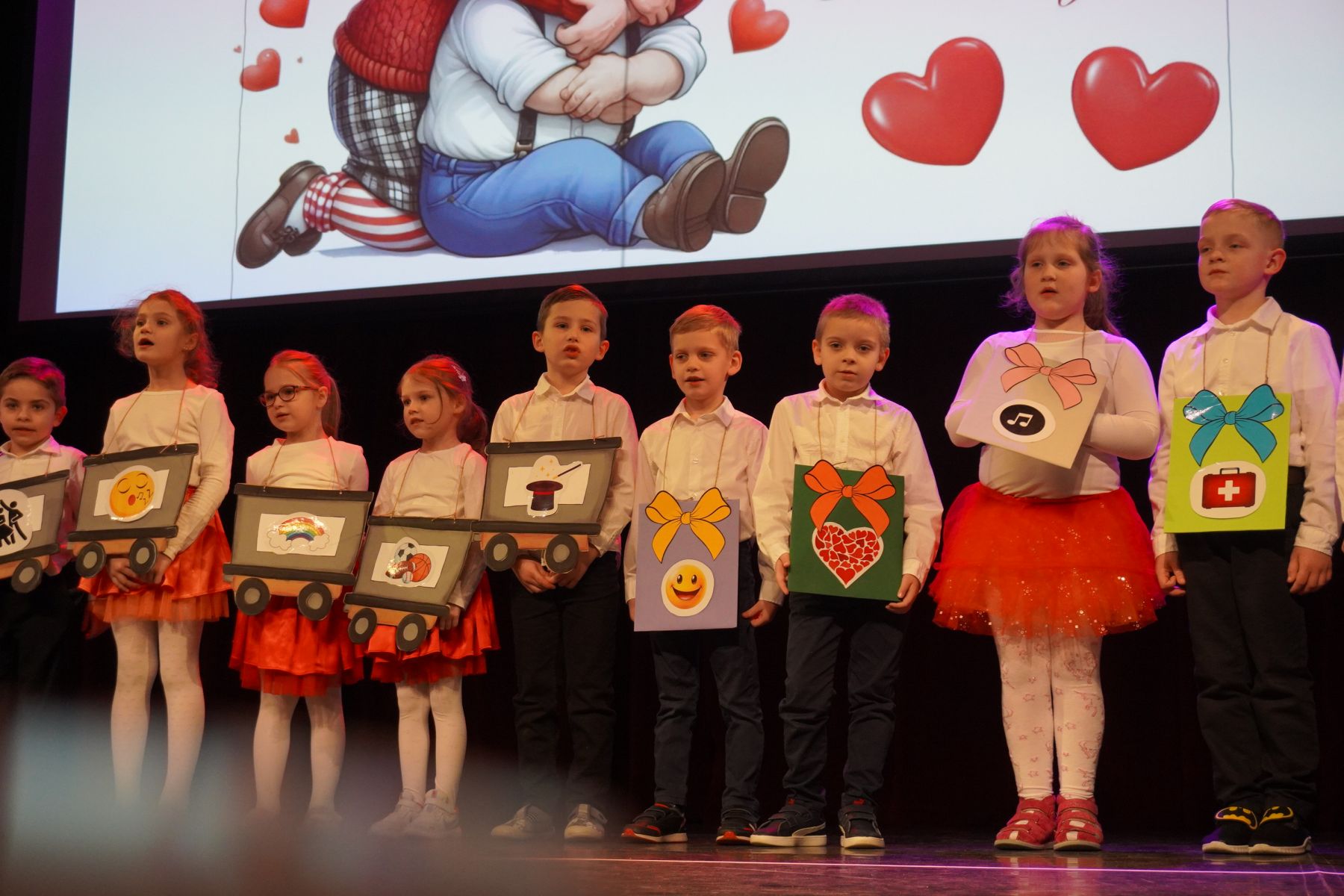Na scenie zaprezentowały się dzieci z różnych grup wiekowych, przedstawiając bogaty program artystyczny. Występy obejmowały wiersze, piosenki, tańce oraz krótkie inscenizacje, które wprowadziły publiczność w radosny i wzruszający nastrój.