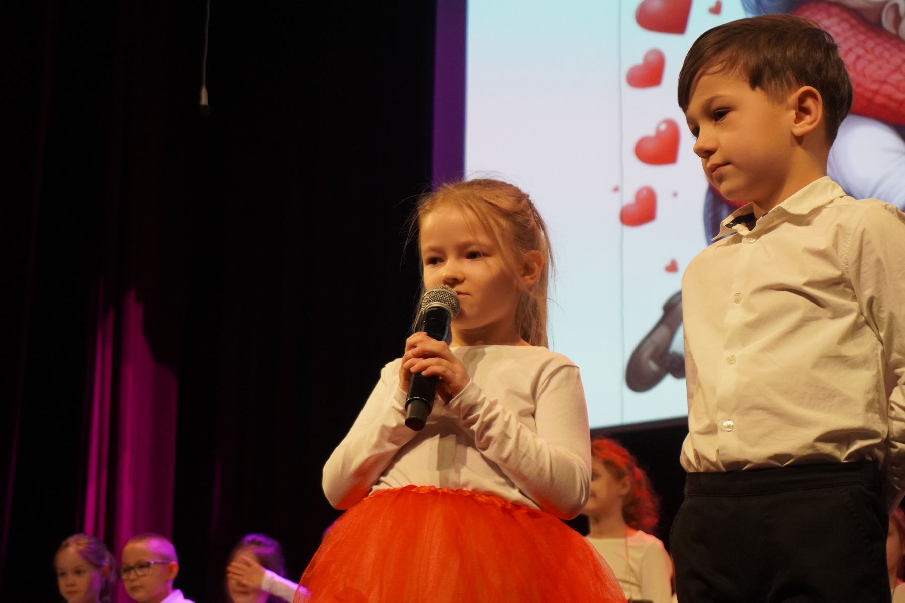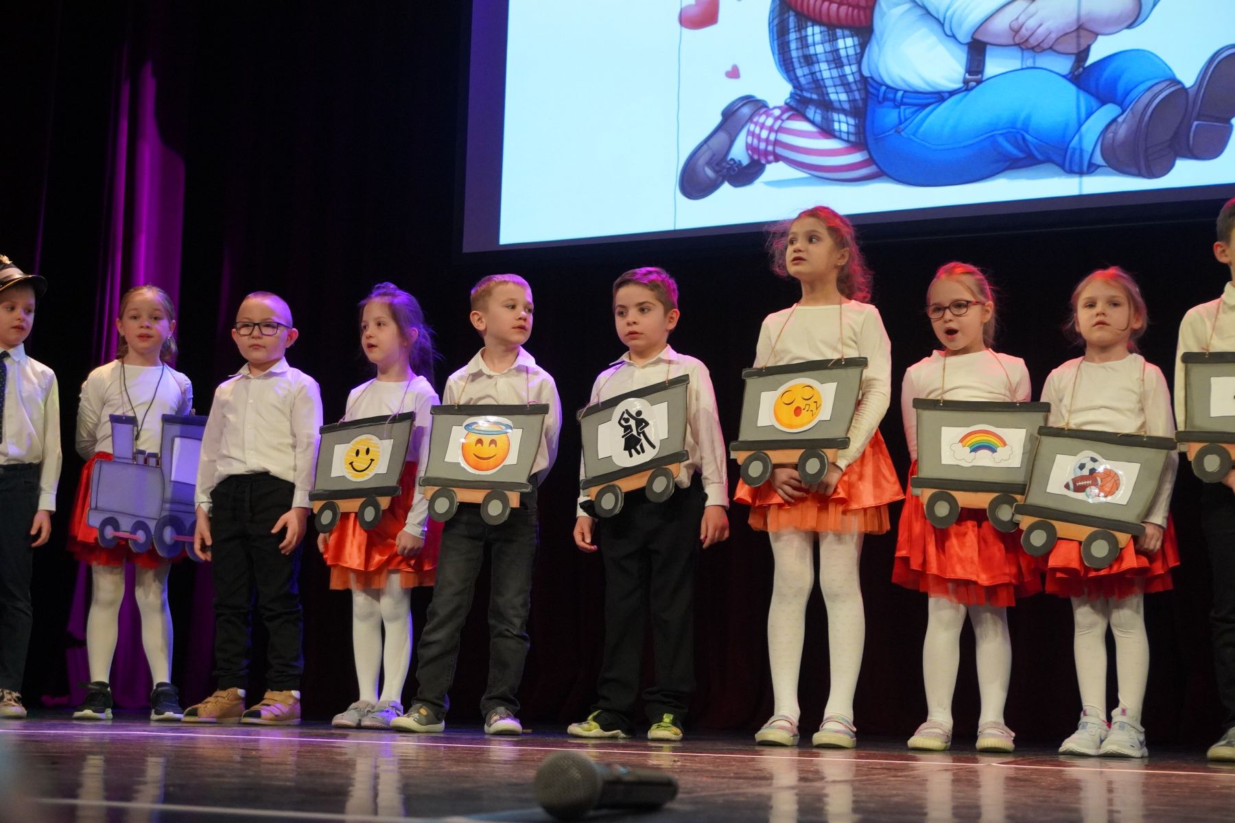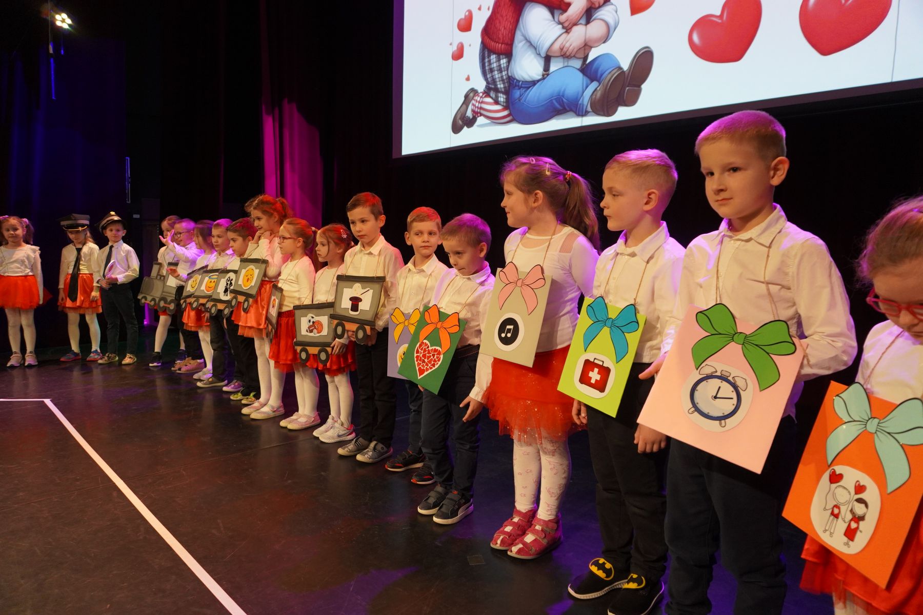Na scenie zaprezentowały się dzieci z różnych grup wiekowych, przedstawiając bogaty program artystyczny. Występy obejmowały wiersze, piosenki, tańce oraz krótkie inscenizacje, które wprowadziły publiczność w radosny i wzruszający nastrój.