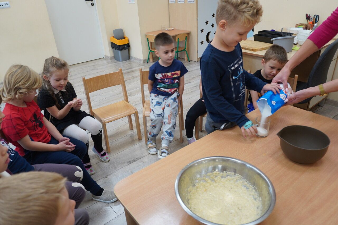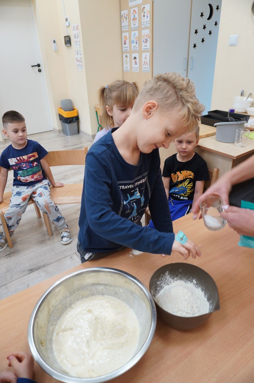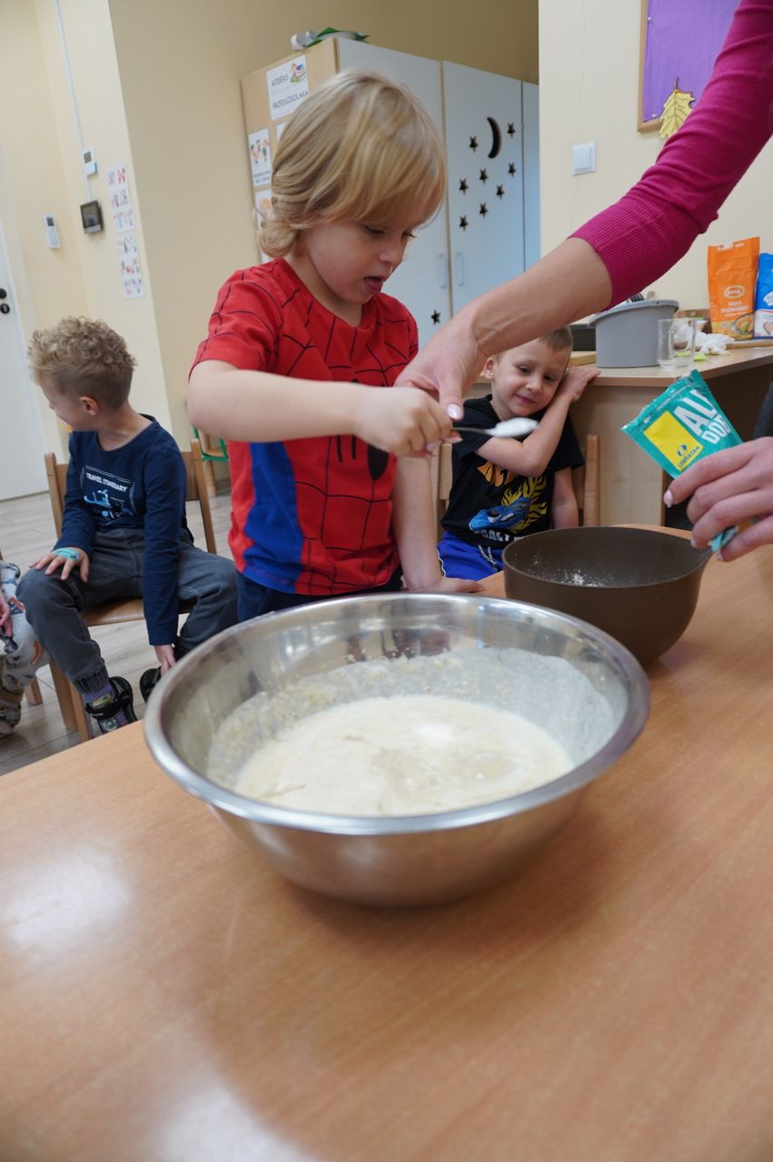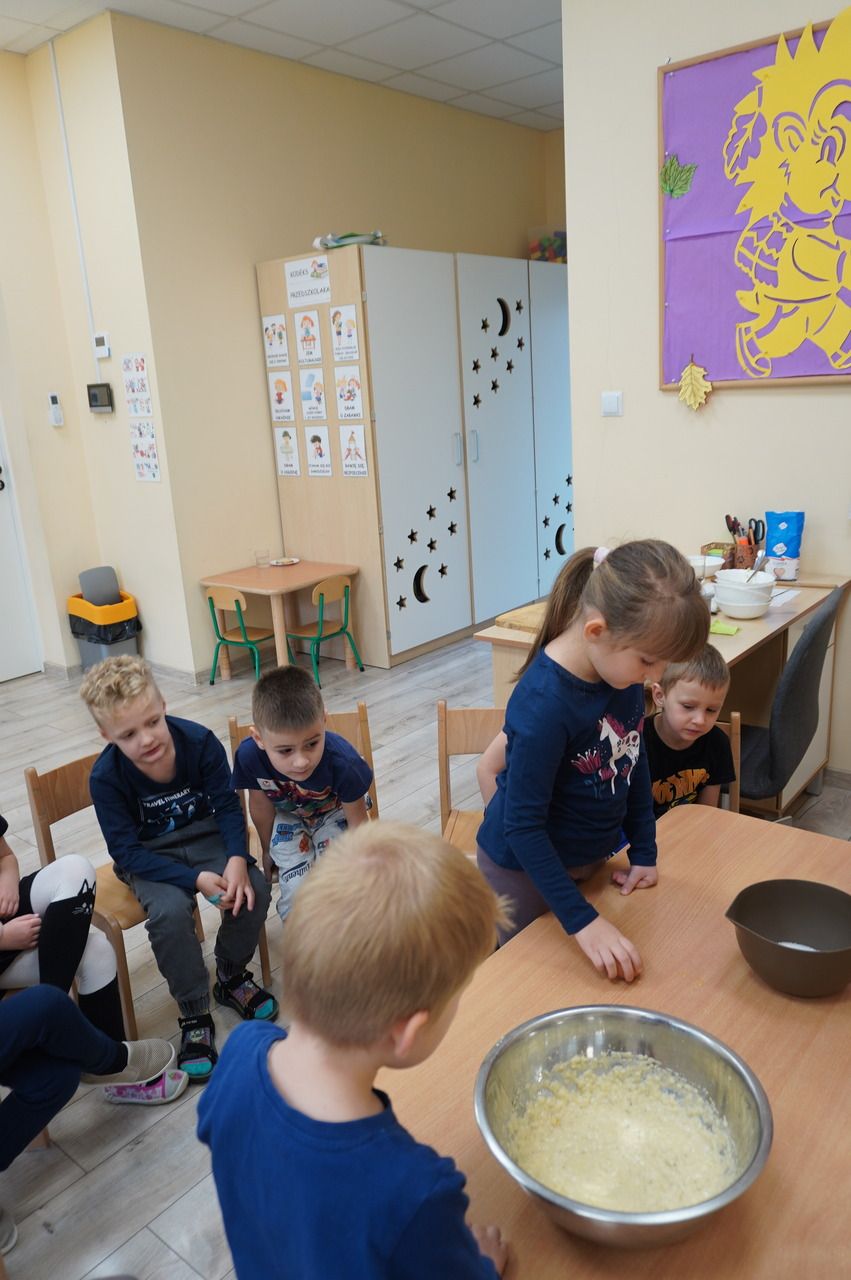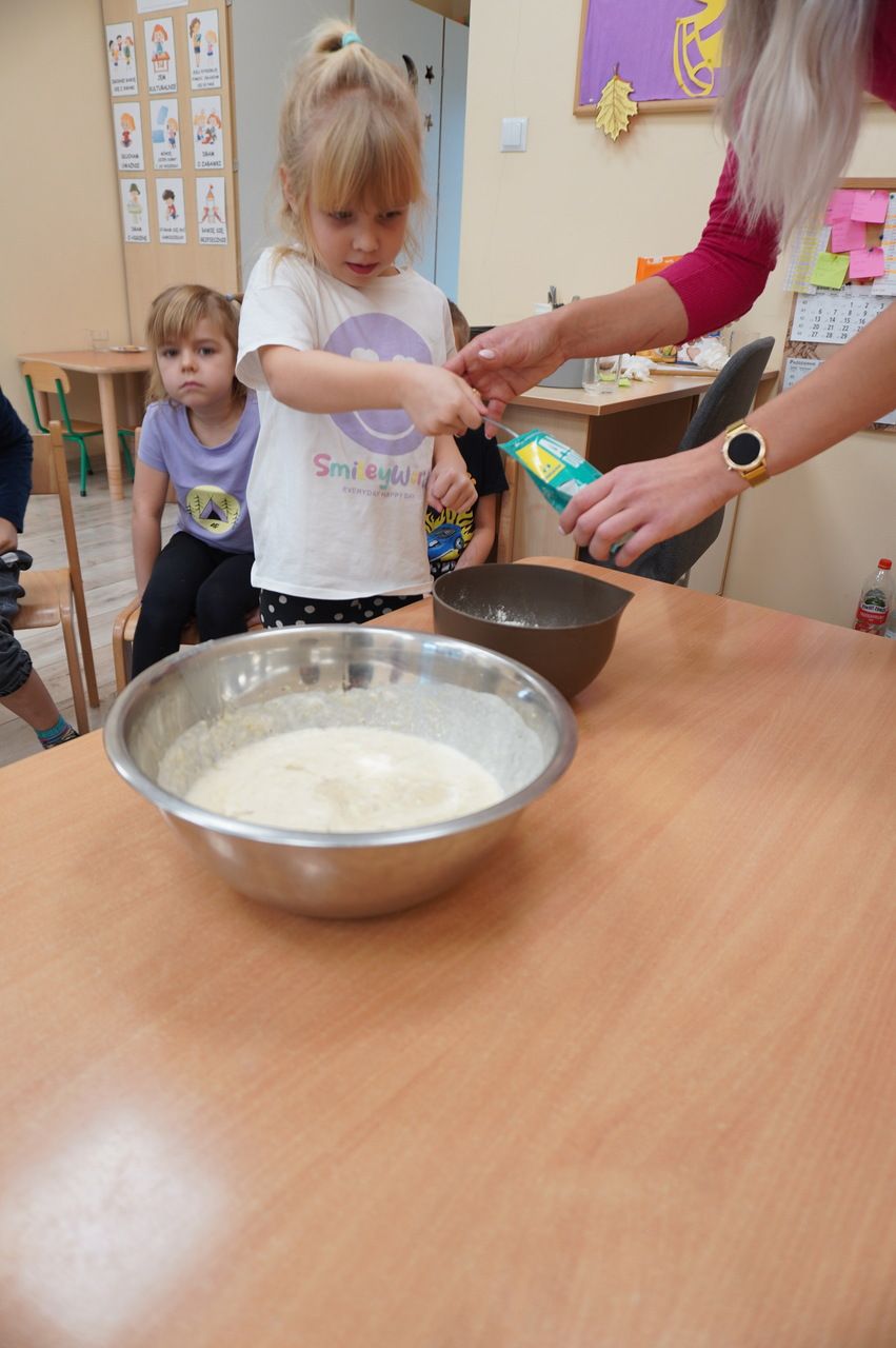 Smerfy pieką chlebek, gdy ranek dnieje.