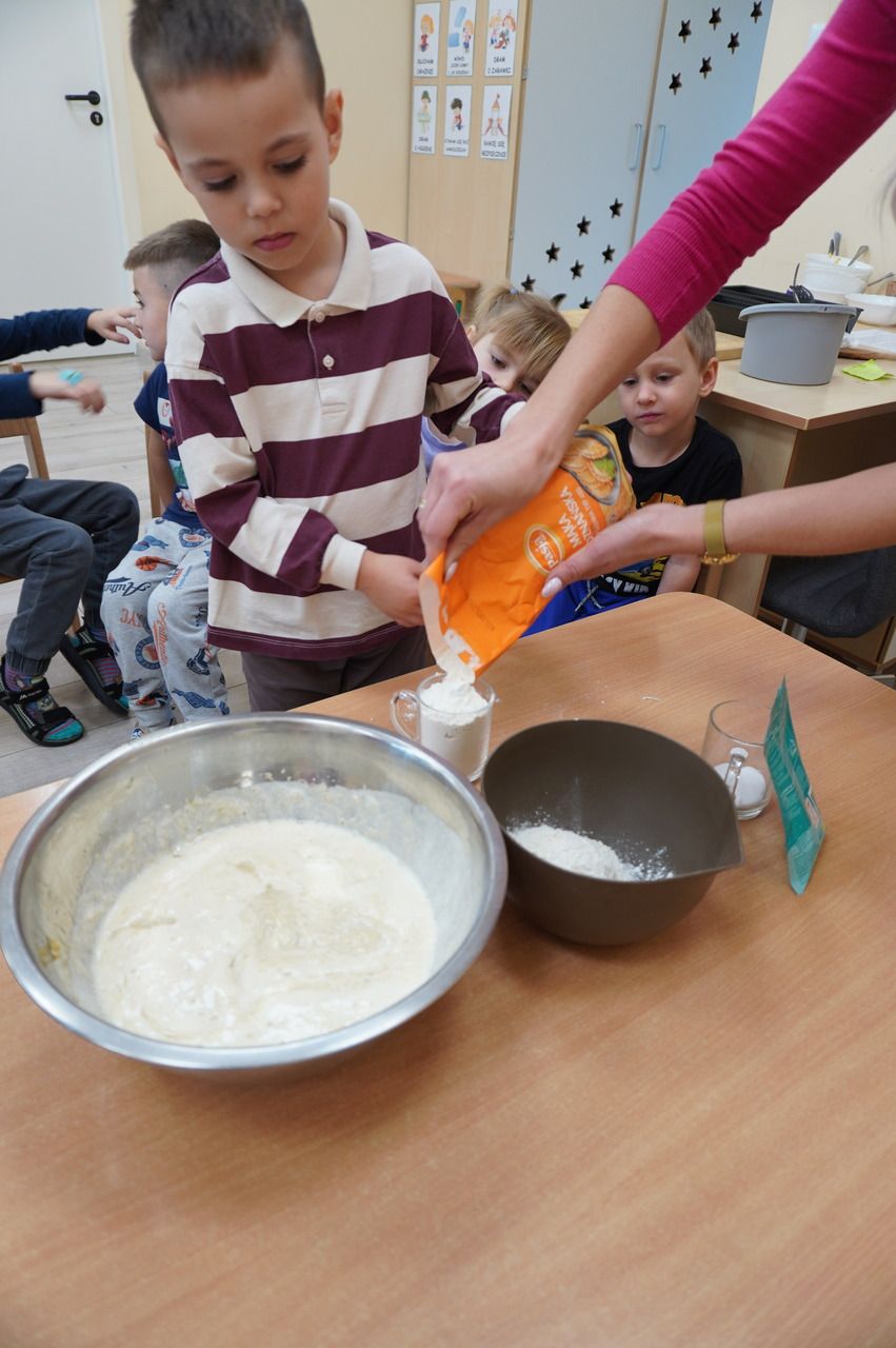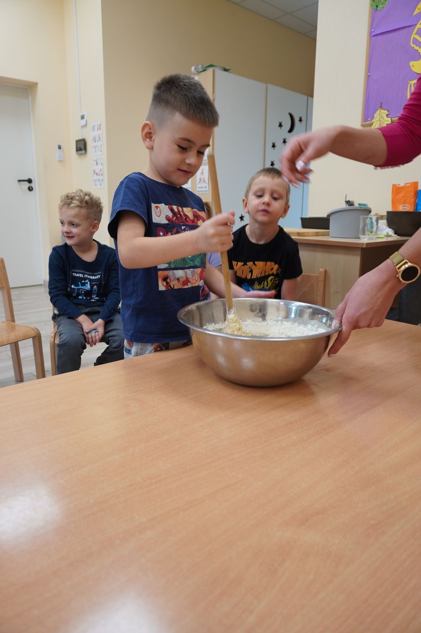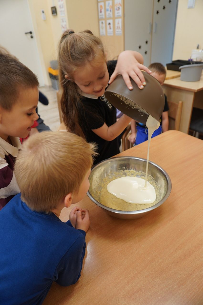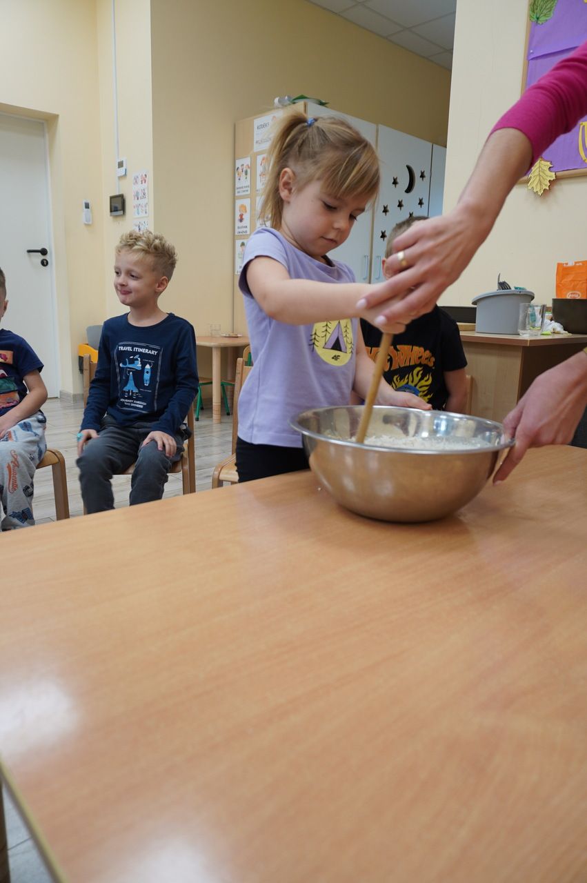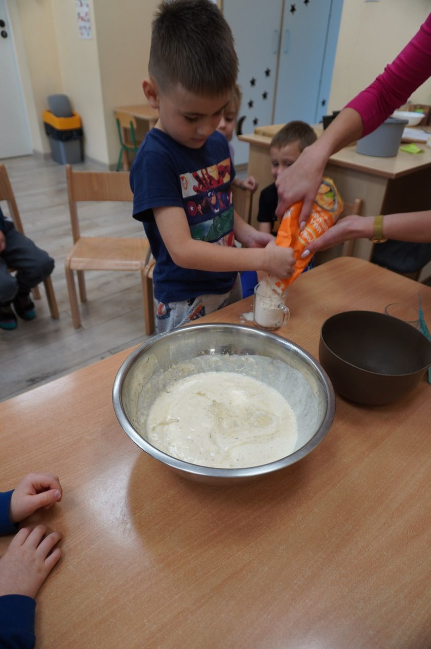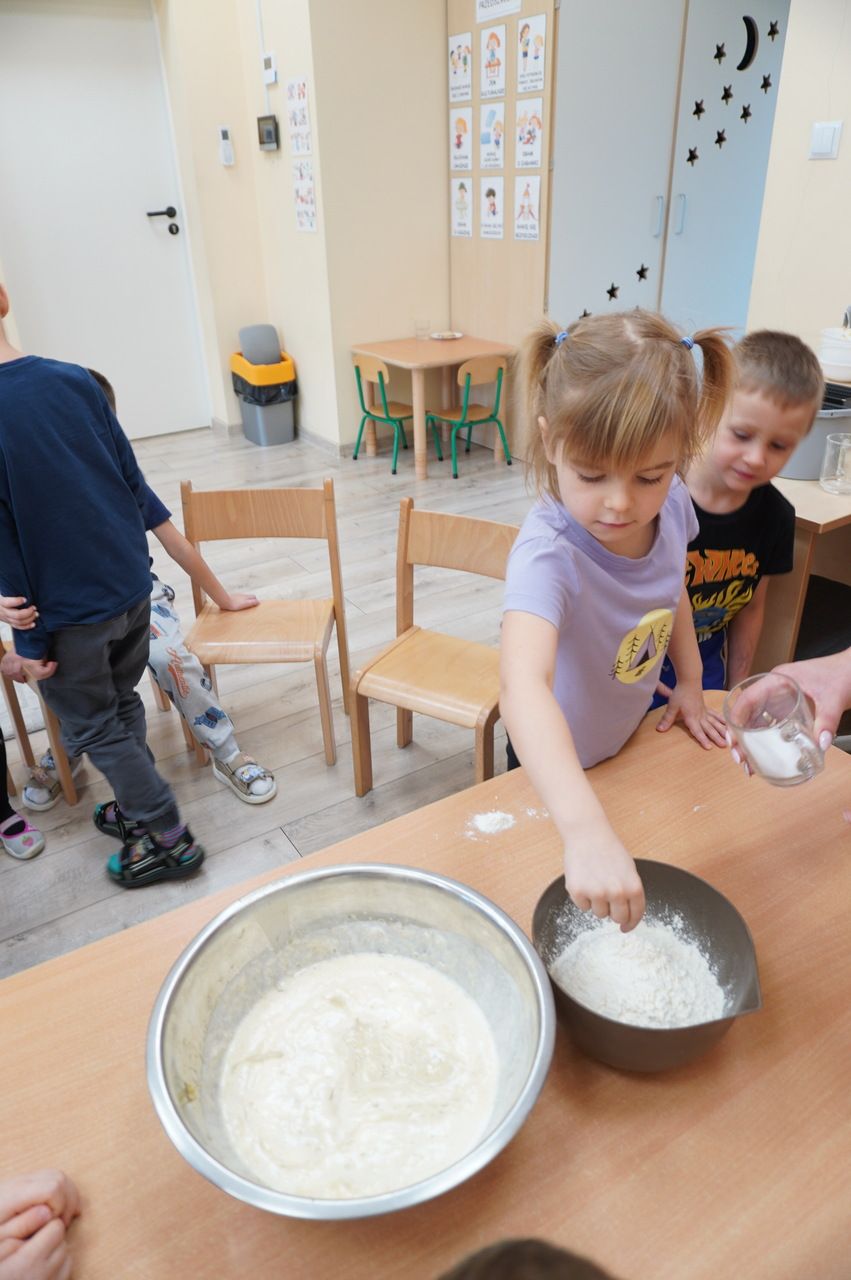 Smerfy pieką chlebek, gdy ranek dnieje.