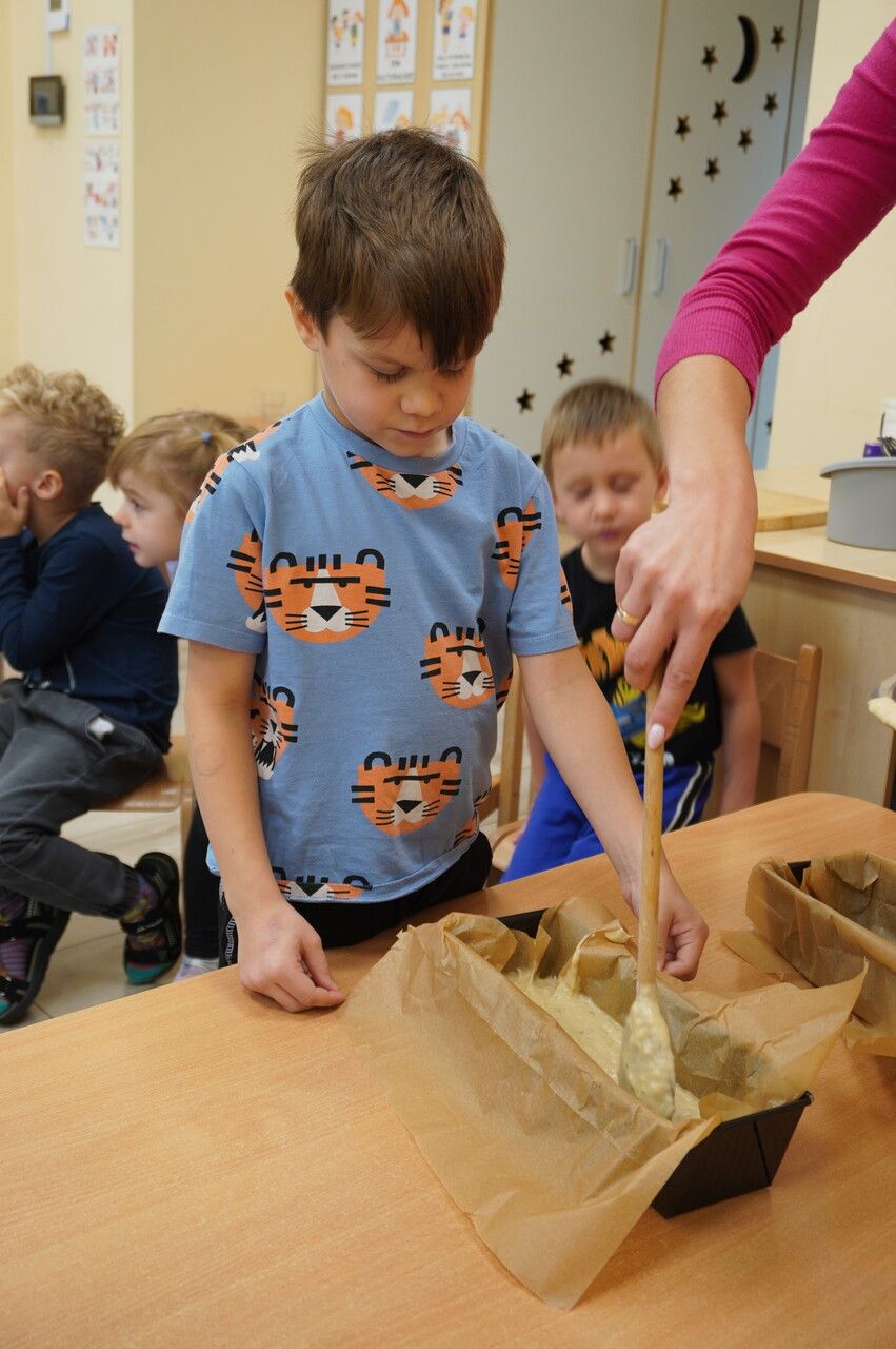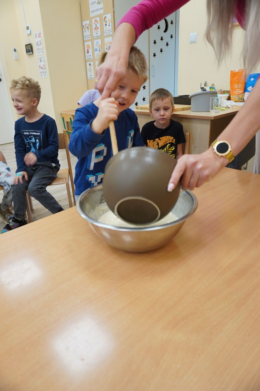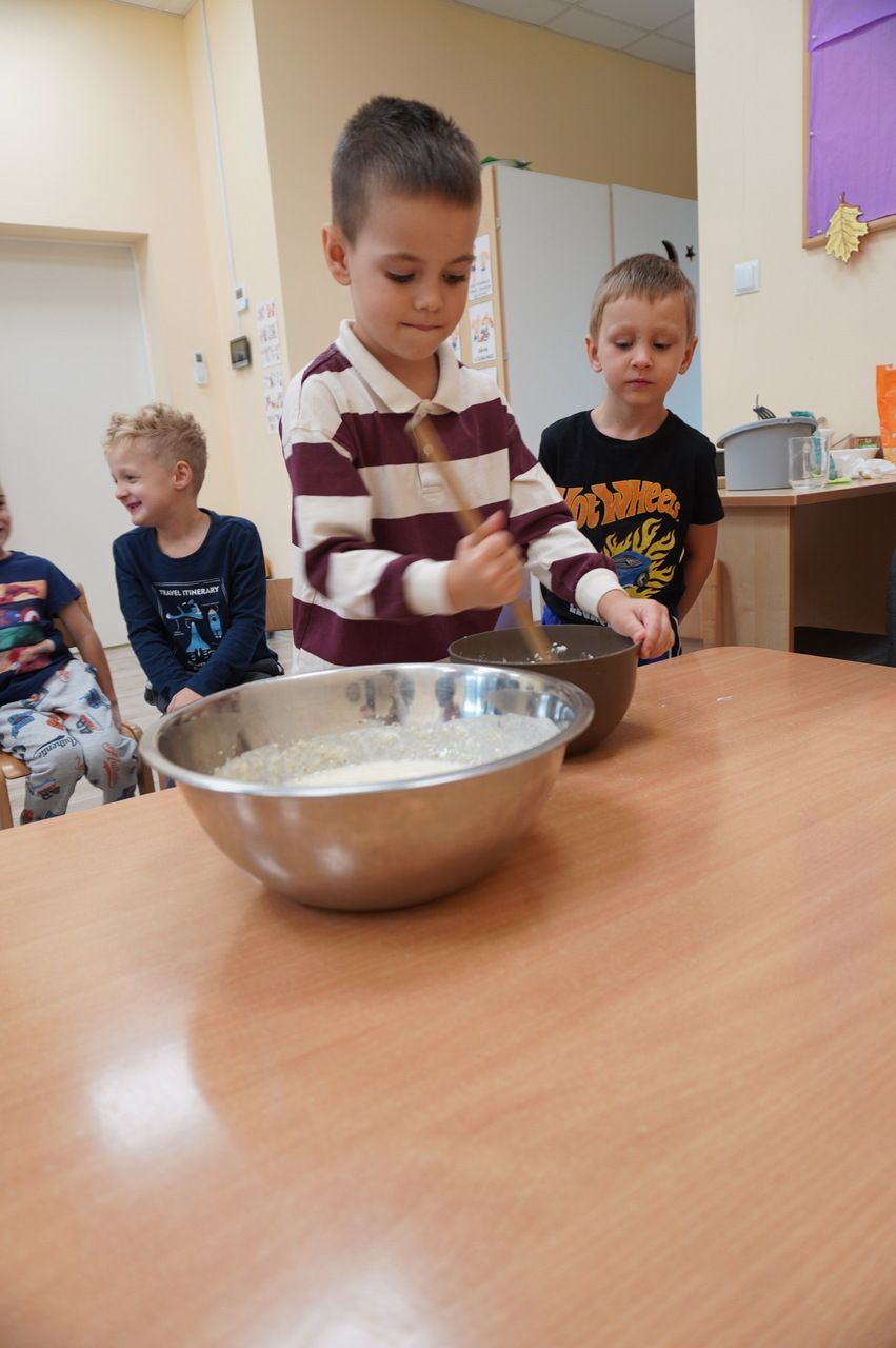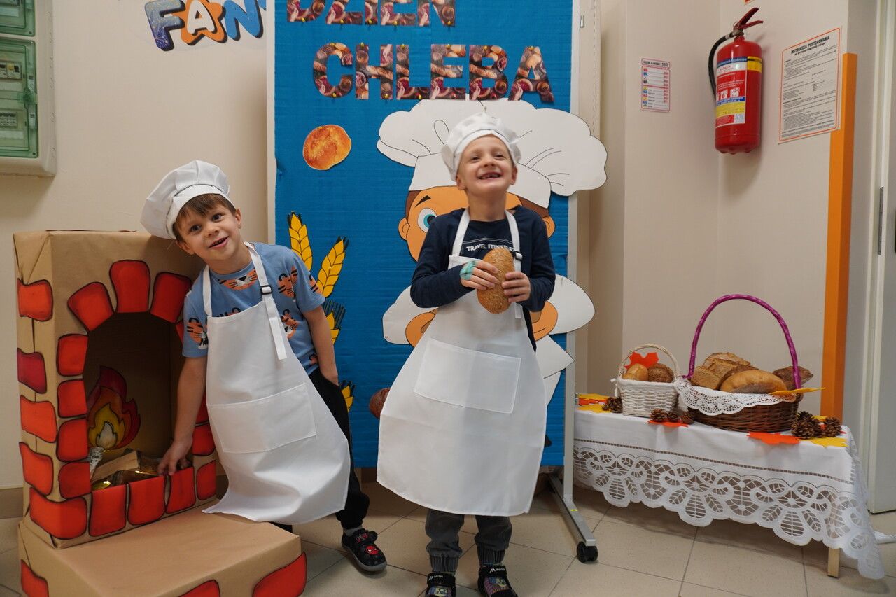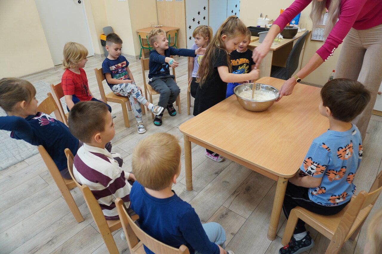 Smerfy pieką chlebek, gdy ranek dnieje.