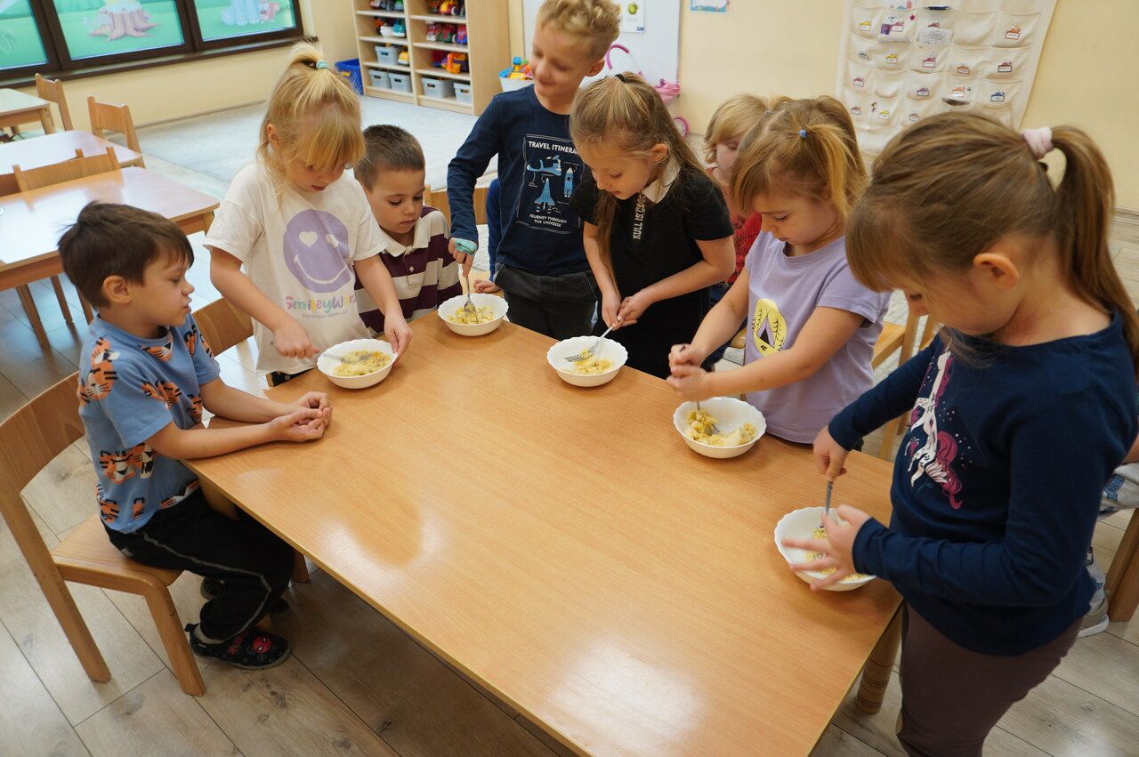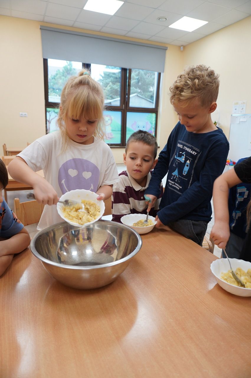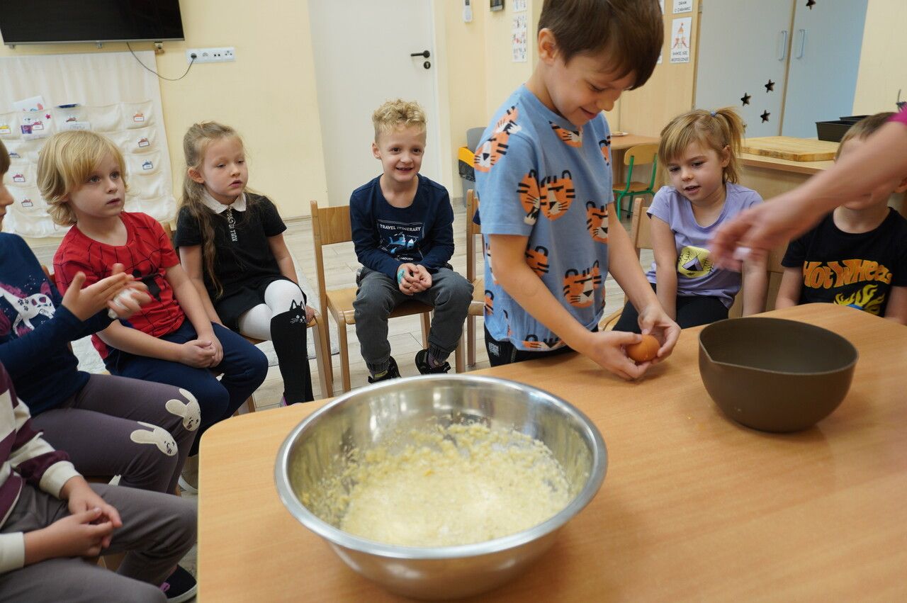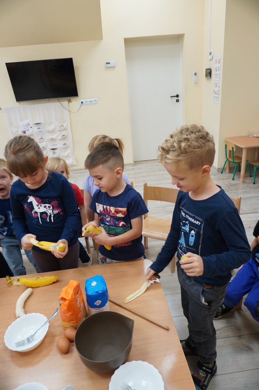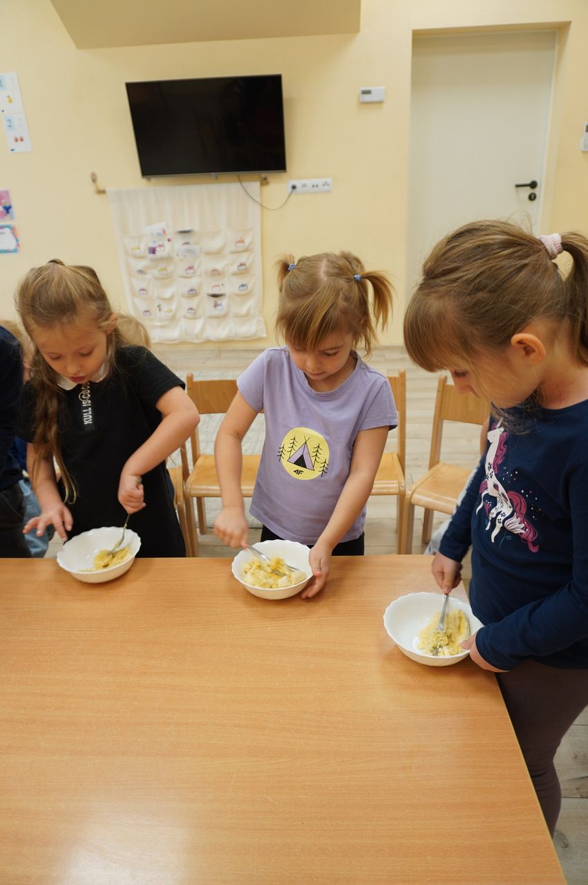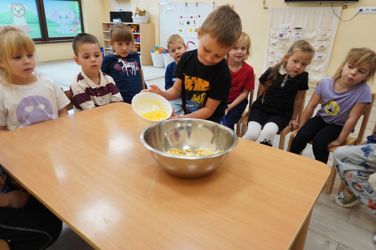 Smerfy pieką chlebek, gdy ranek dnieje.