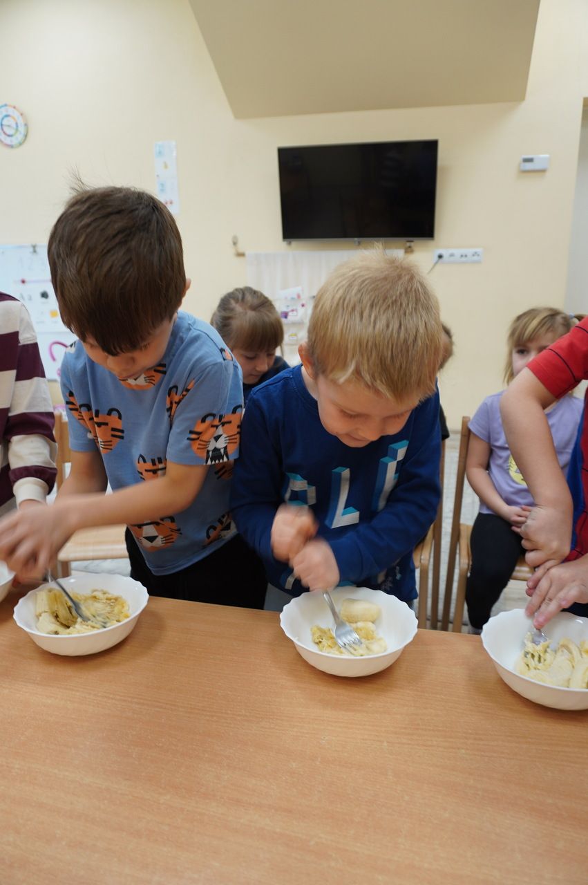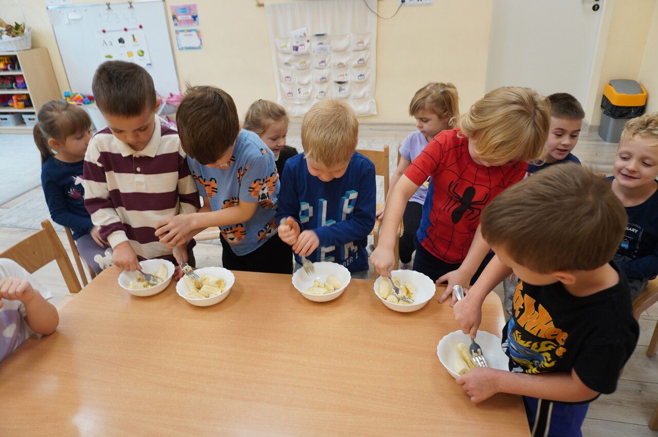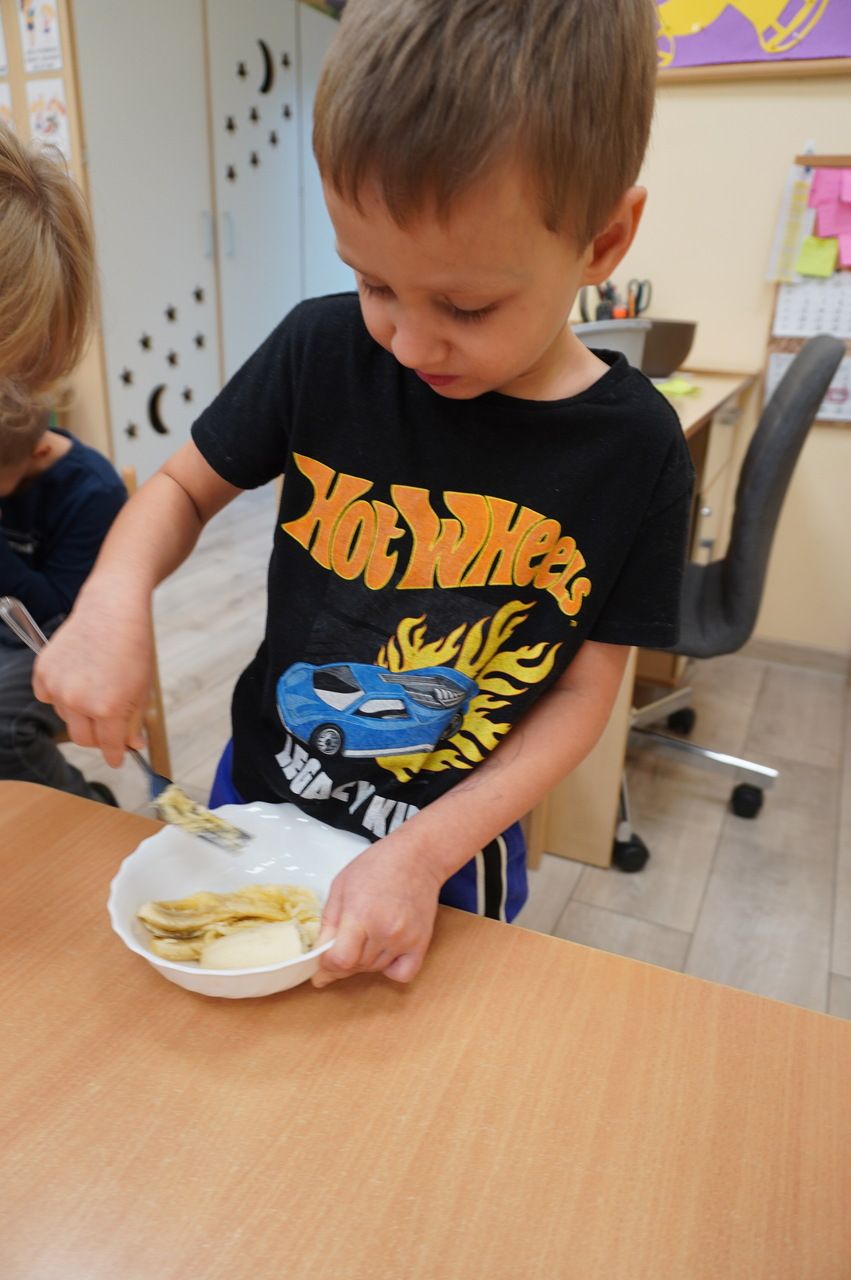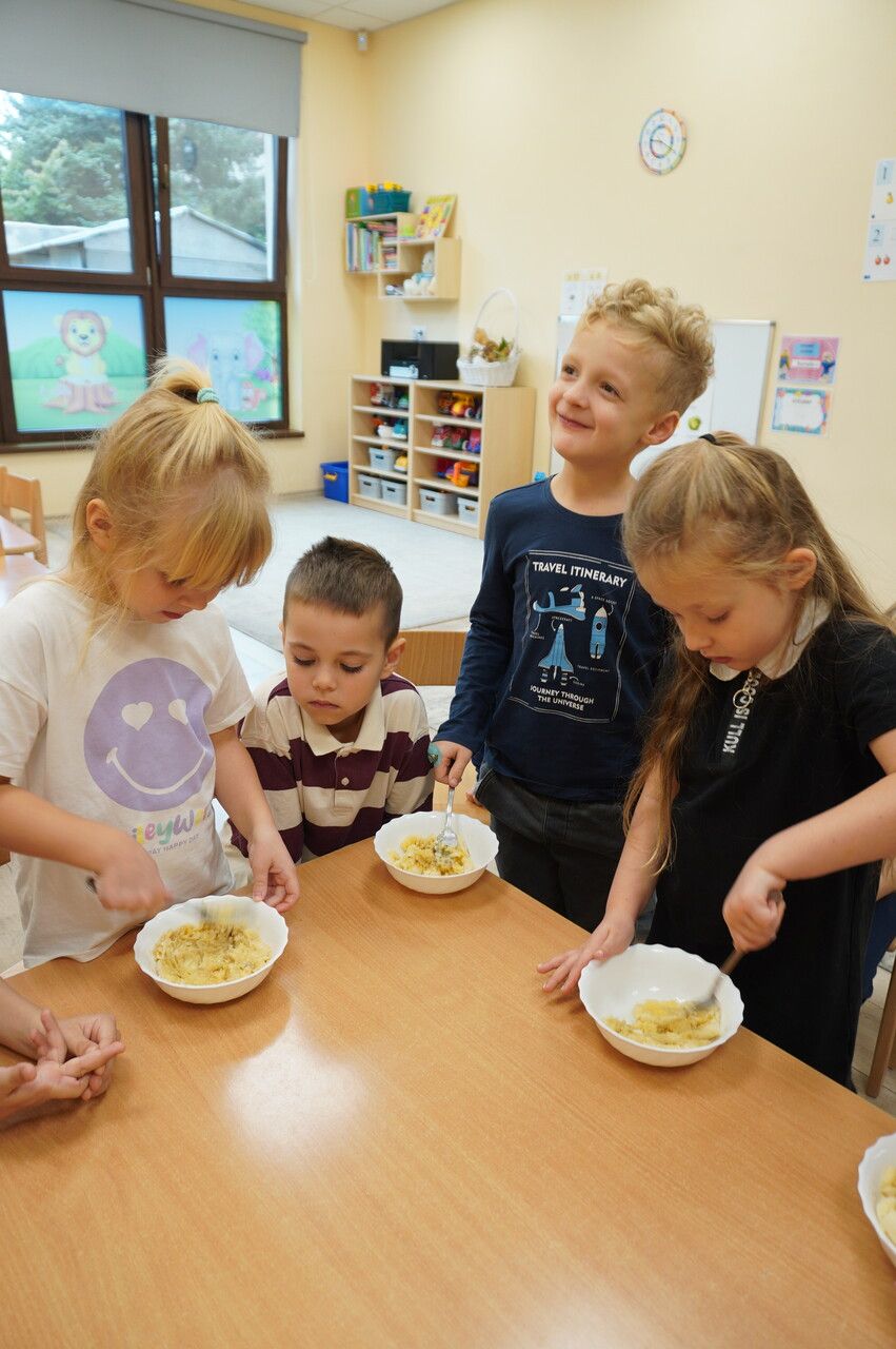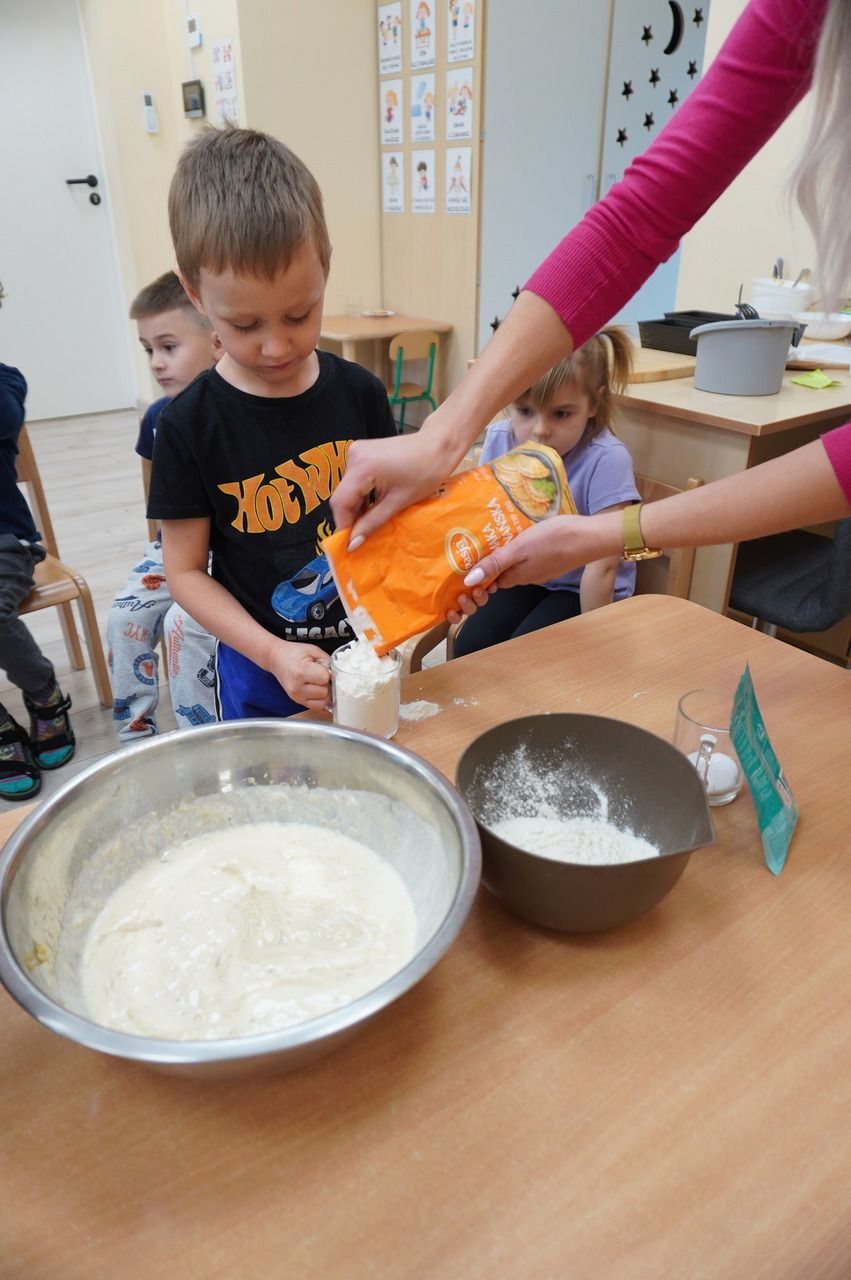 Smerfy pieką chlebek, gdy ranek dnieje.