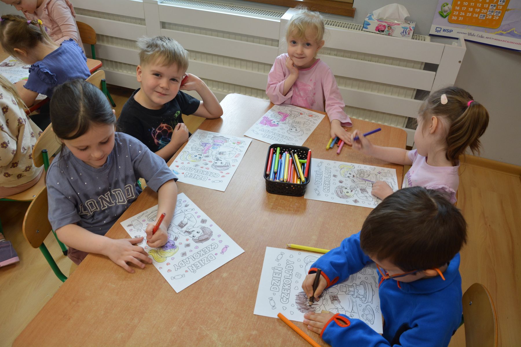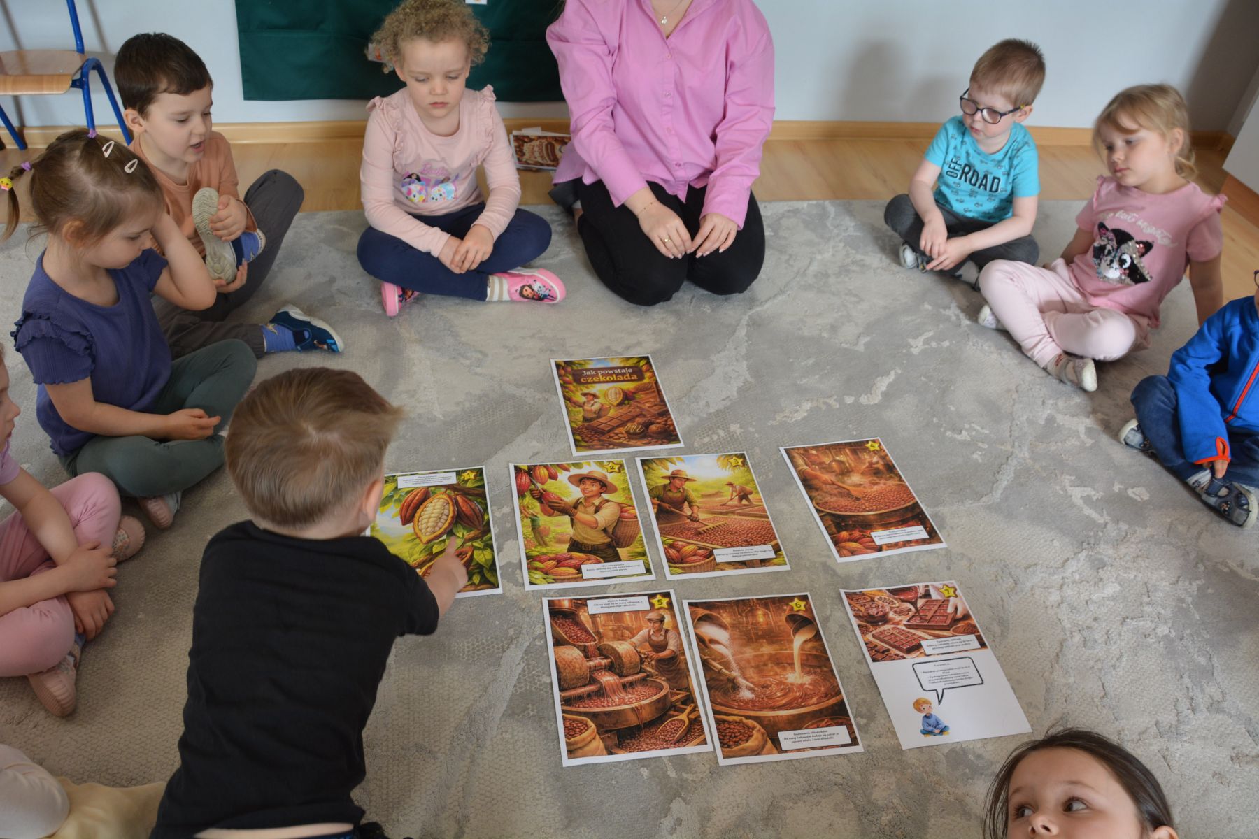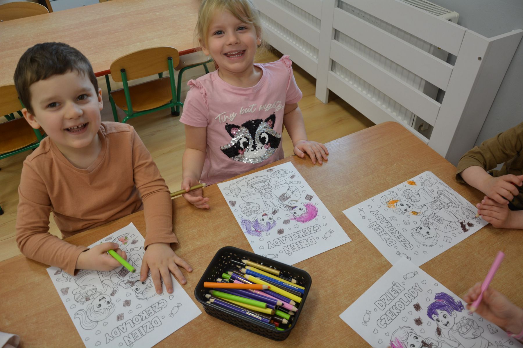 Dzień Czekolady w naszym przedszkolu to wyjątkowo radosne święto, pełne uśmiechów, zabaw i słodkich niespodzianek. Tego dnia dzieci poznajły czekoladę wszystkimi zmysłami: oglądały, wąchały, próbowały i odkrywały, skąd się bierze kakao oraz jak powstaje czekolada.