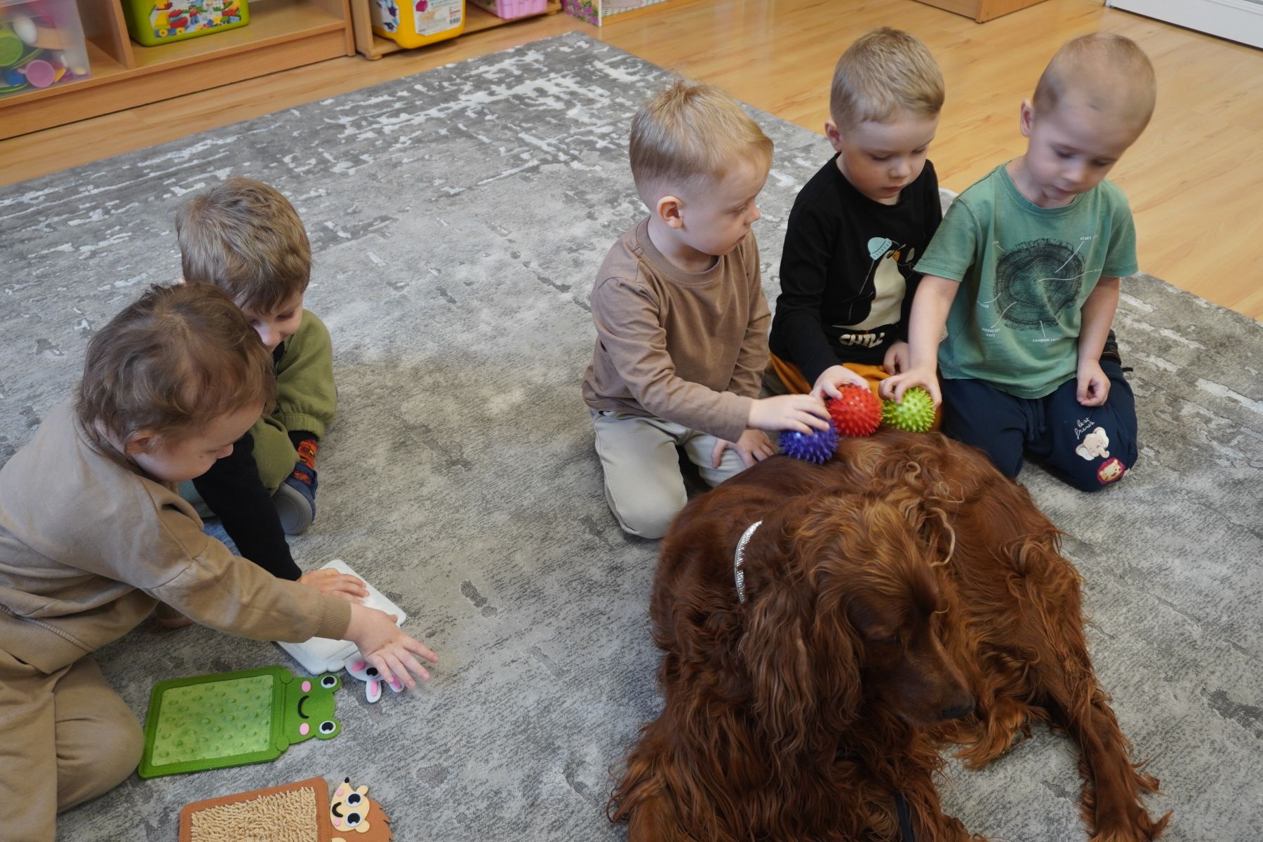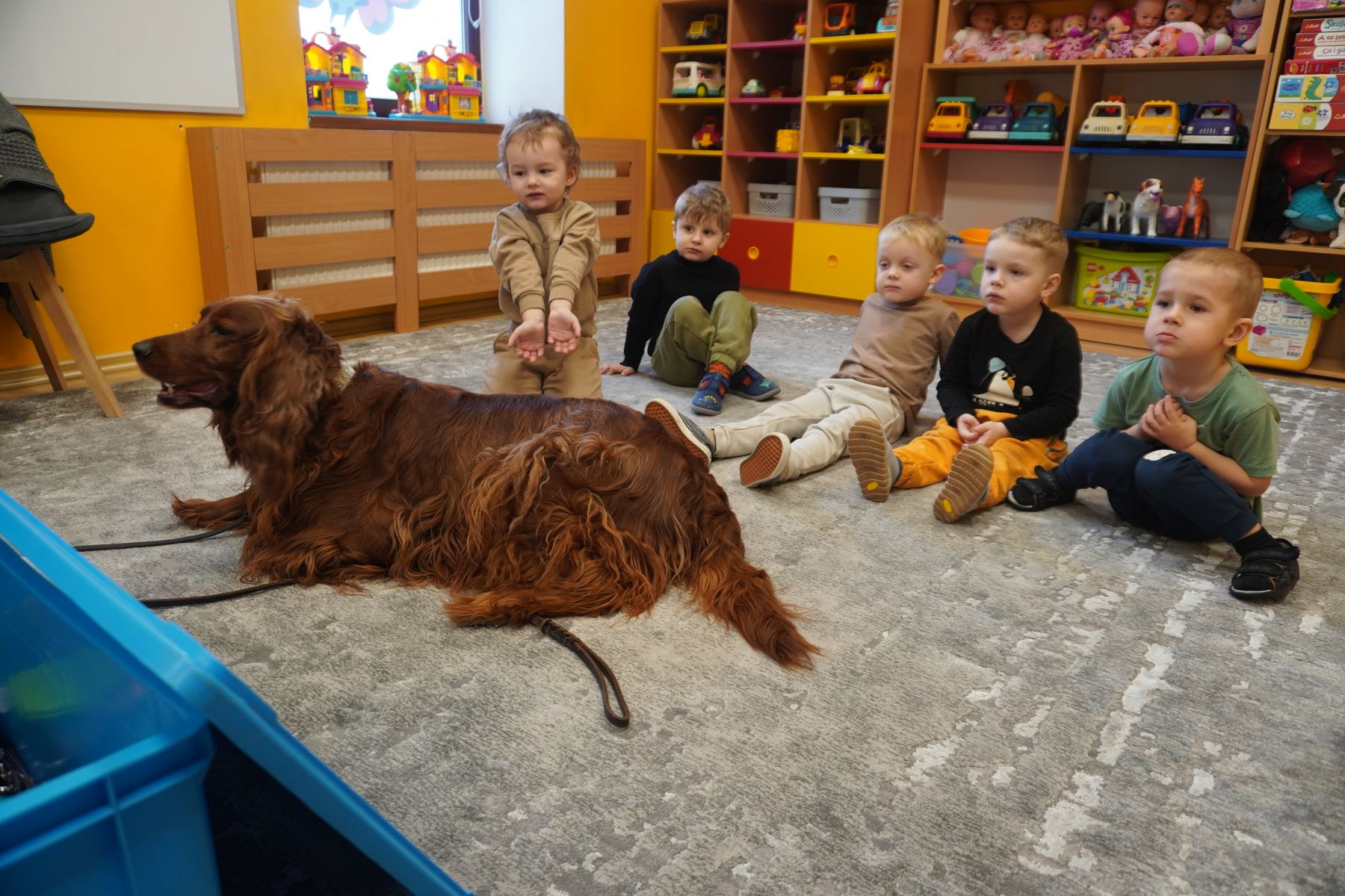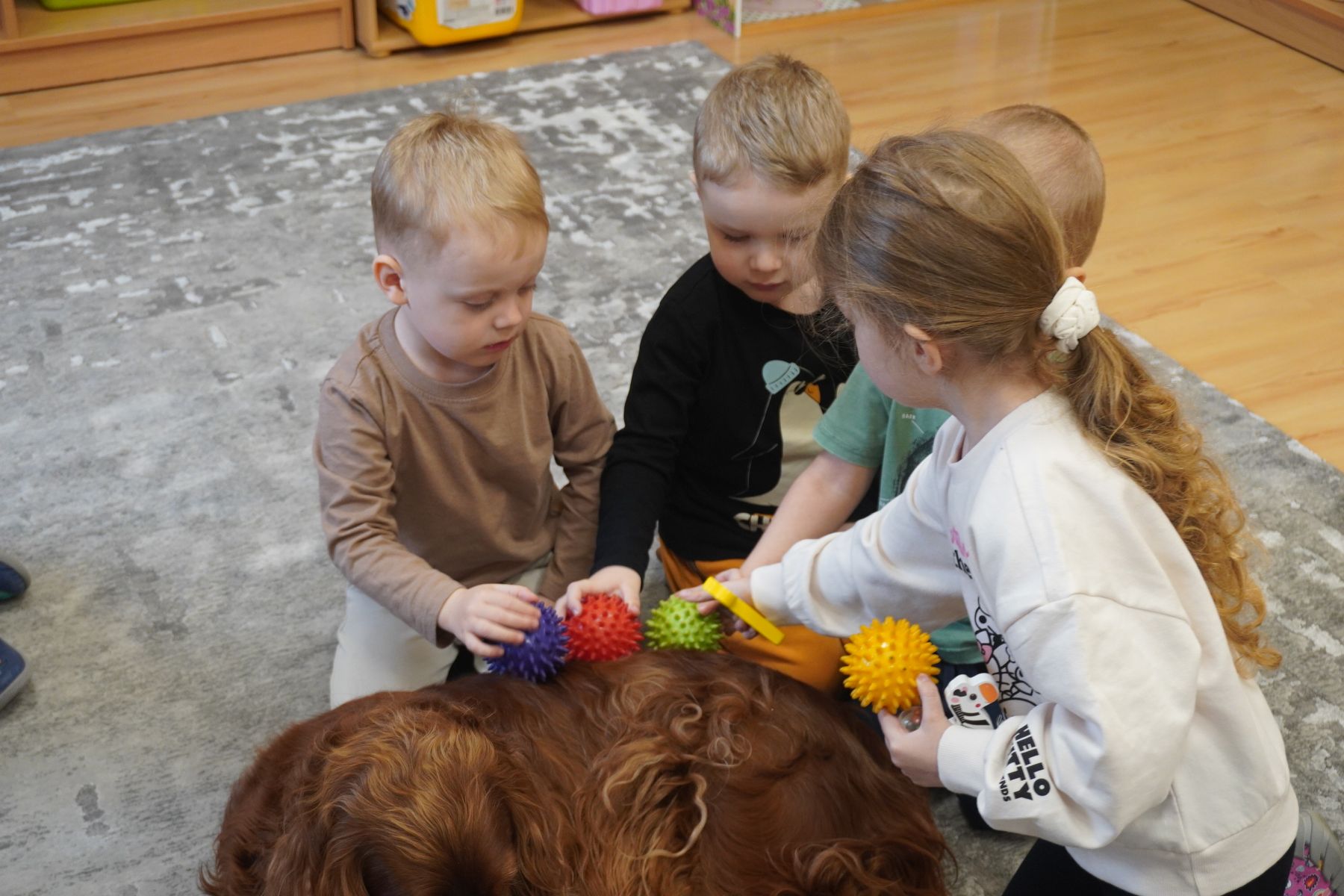 Dodatkowo : dziasiejszy słodki dzień Krasnoludki spędziły z Leti - naszym psem terapeutą :-)