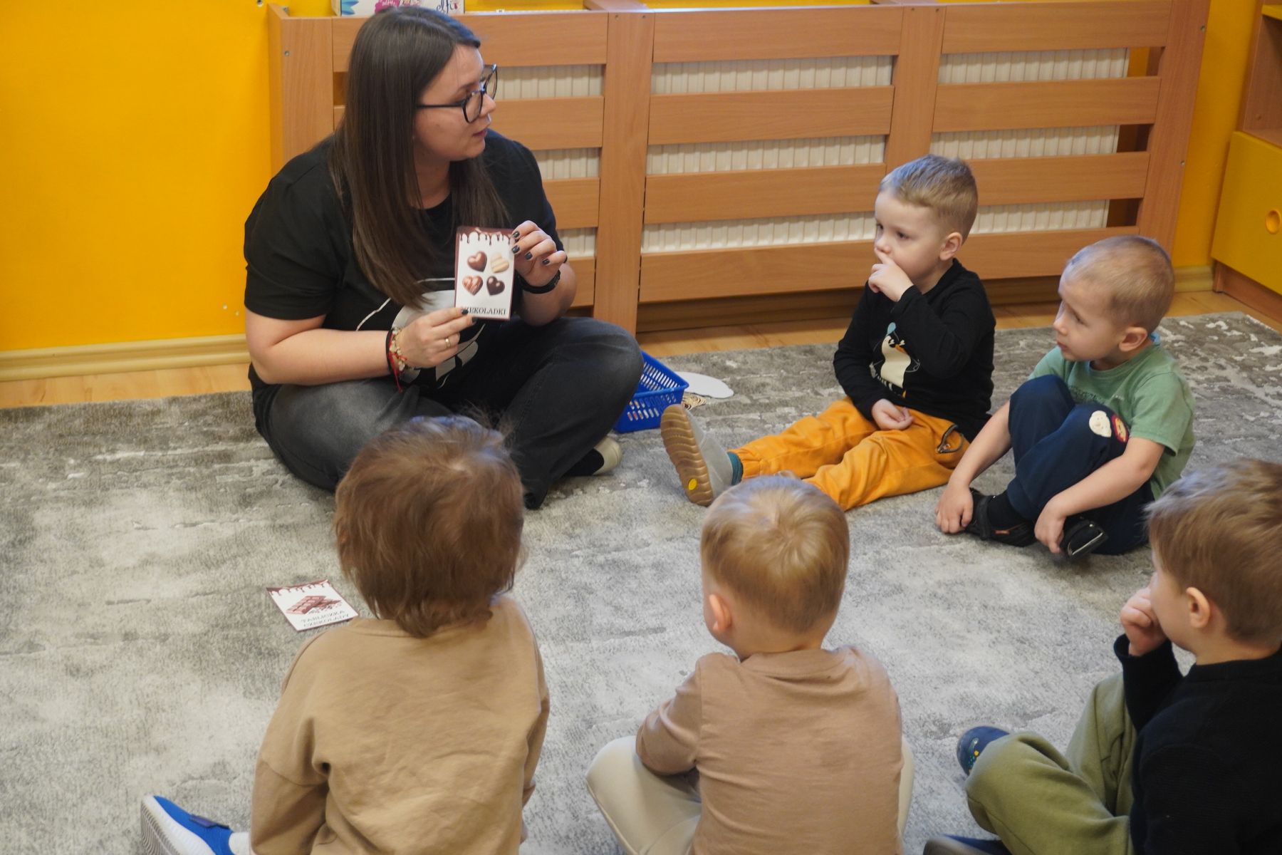 Dzień Czekolady w naszym przedszkolu to wyjątkowo radosne święto, pełne uśmiechów, zabaw i słodkich niespodzianek. Tego dnia dzieci poznajły czekoladę wszystkimi zmysłami: oglądały, wąchały, próbowały i odkrywały, skąd się bierze kakao oraz jak powstaje czekolada.
