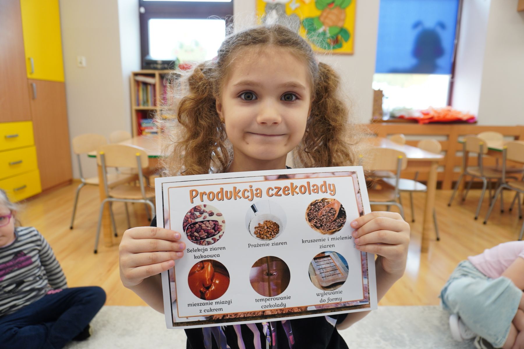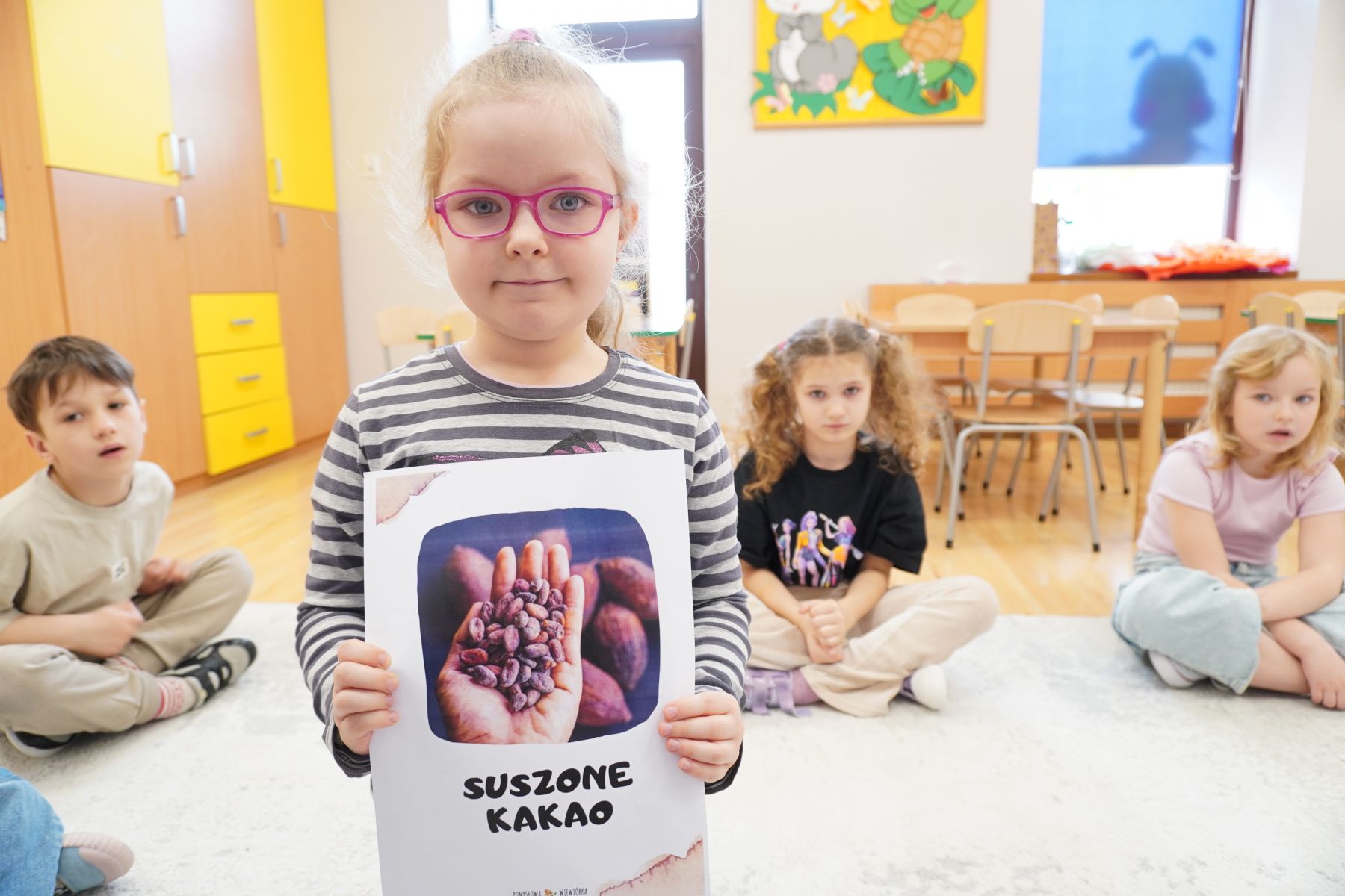 Dzień Czekolady w naszym przedszkolu to wyjątkowo radosne święto, pełne uśmiechów, zabaw i słodkich niespodzianek. Tego dnia dzieci poznajły czekoladę wszystkimi zmysłami: oglądały, wąchały, próbowały i odkrywały, skąd się bierze kakao oraz jak powstaje czekolada.