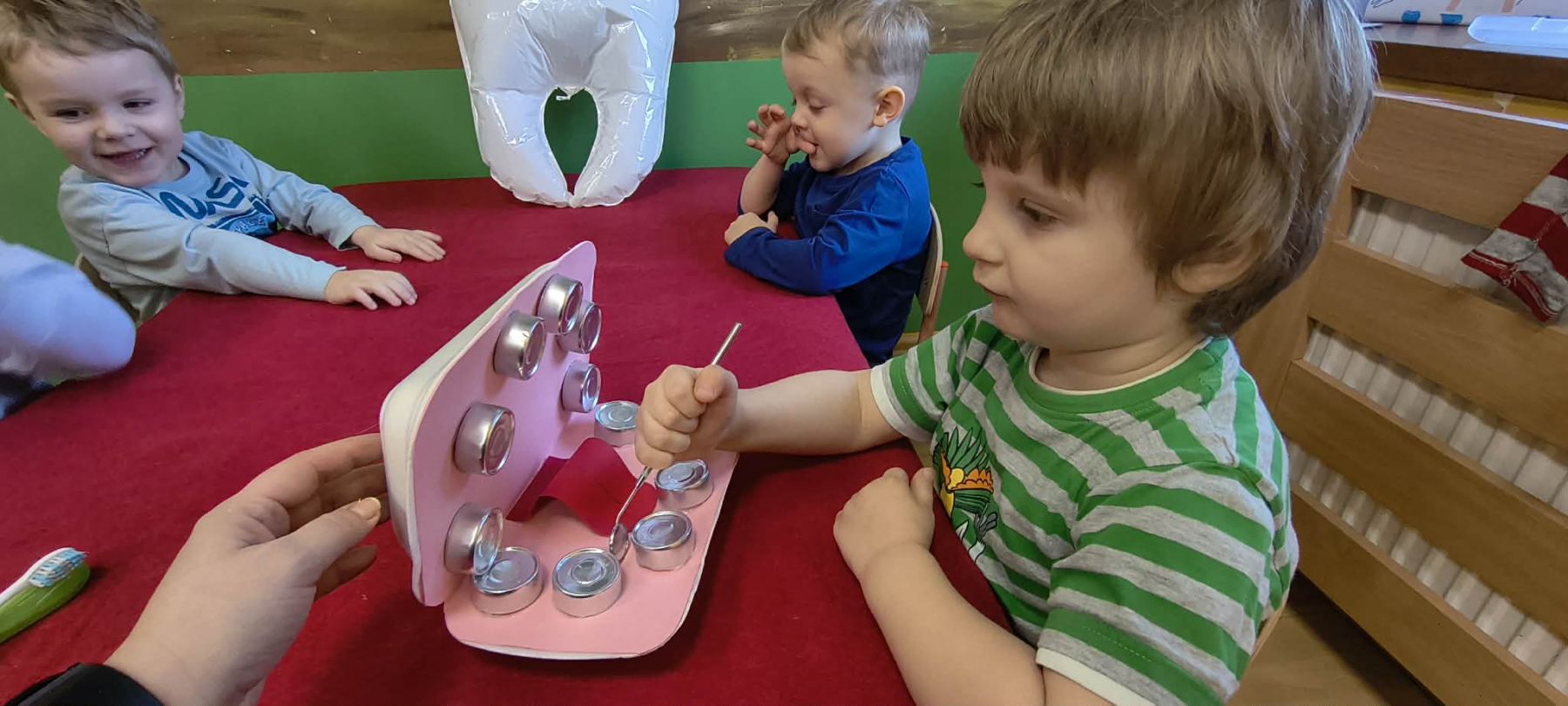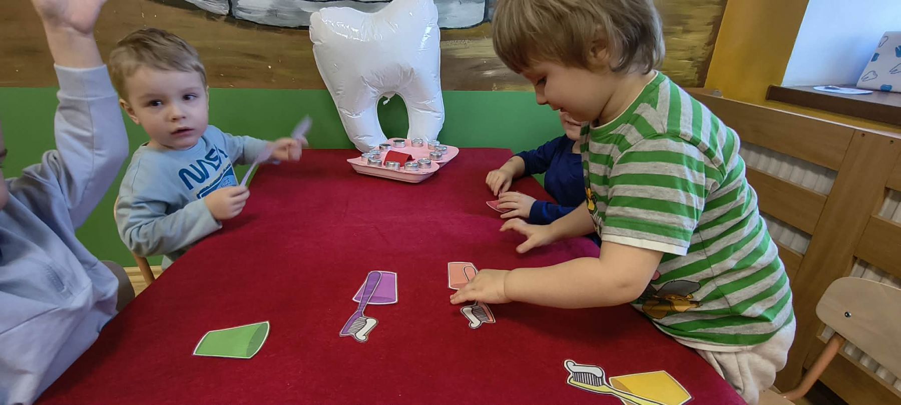 W pnaszym przedszkolu dzieci uczestniczyły w wesołych zabawach tematycznych – układały puzzle, brały udział w quizach o zdrowych nawykach i uczyły się, jak prawidłowo myć zęby.
