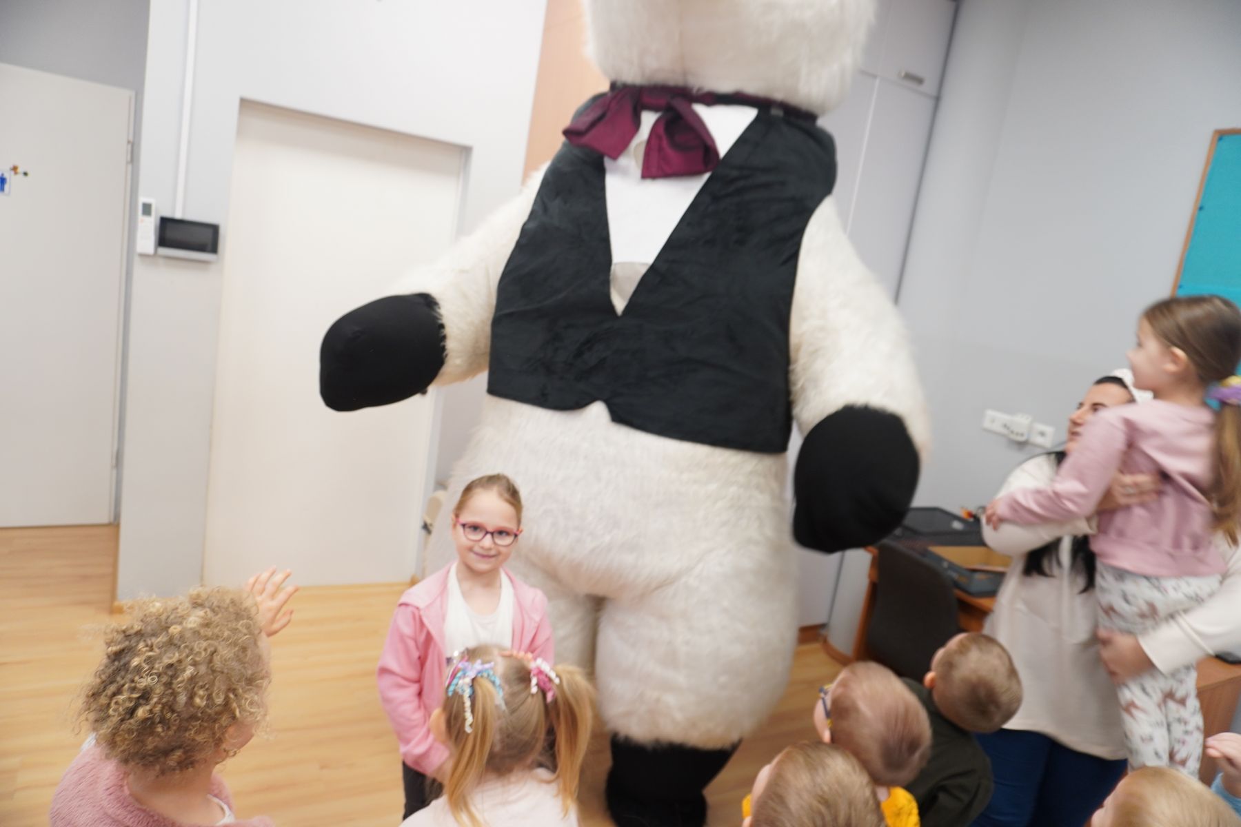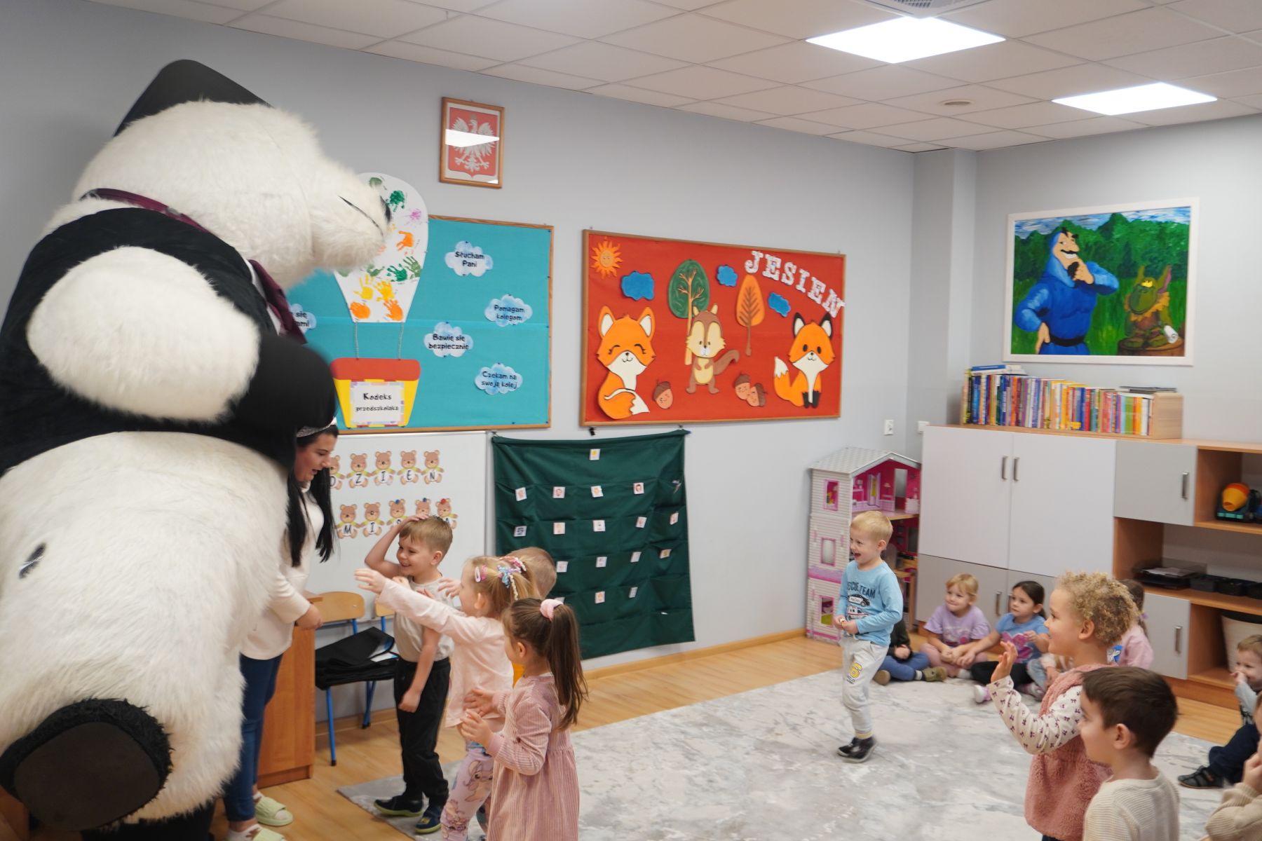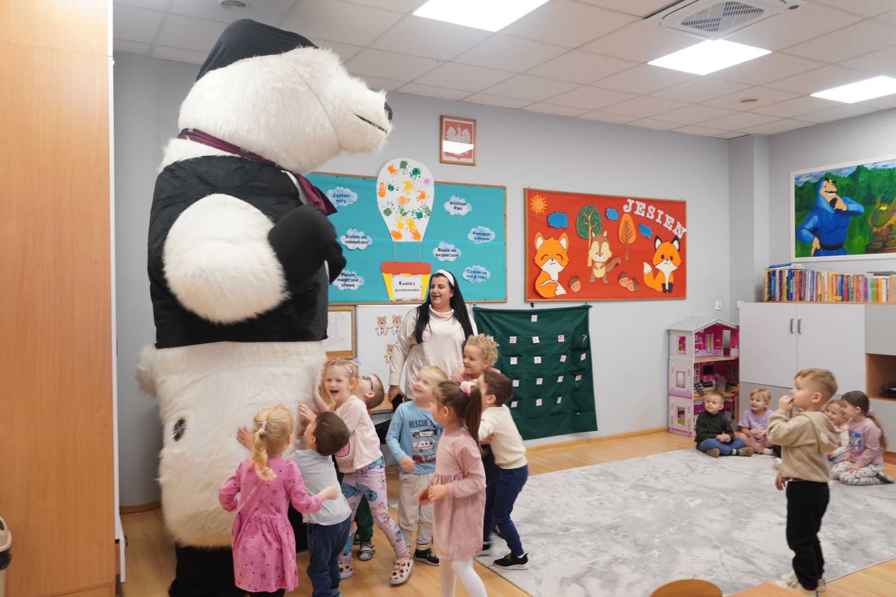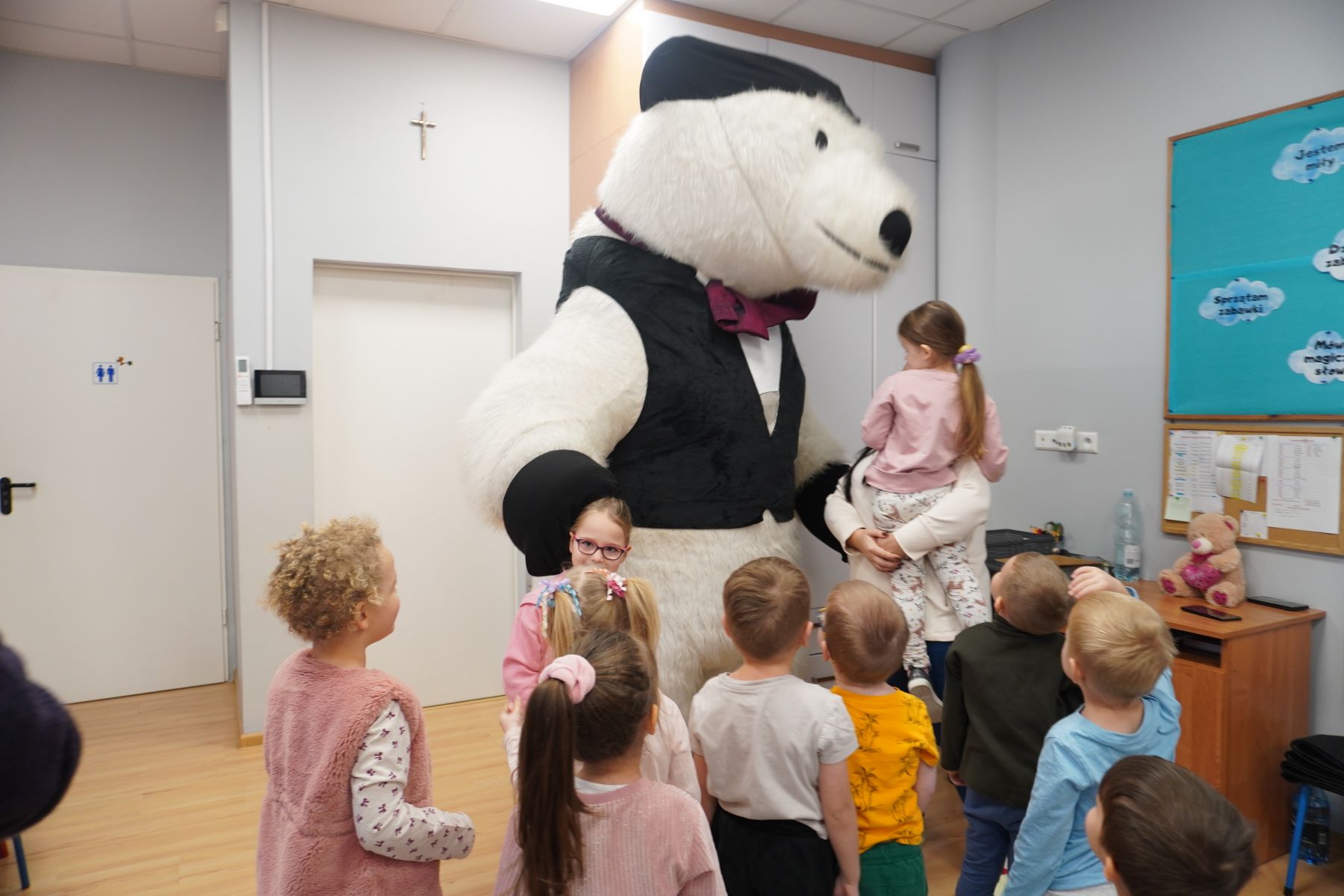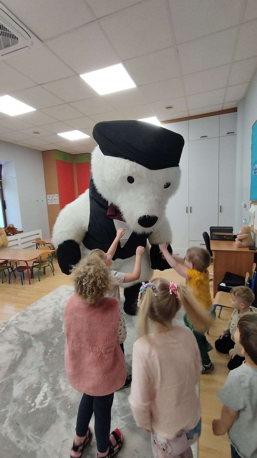 Największą atrakcją dnia były odwiedziny Pana Misia, który pojawił się niespodziewanie, wzbudzając ogromną radość wśród dzieci. Pan Miś żartował, robił zabawne sztuczki i tańczył razem z przedszkolakami. Dzieci śmiały się do łez, a ich entuzjazm udzielił się wszystkim obecnym.