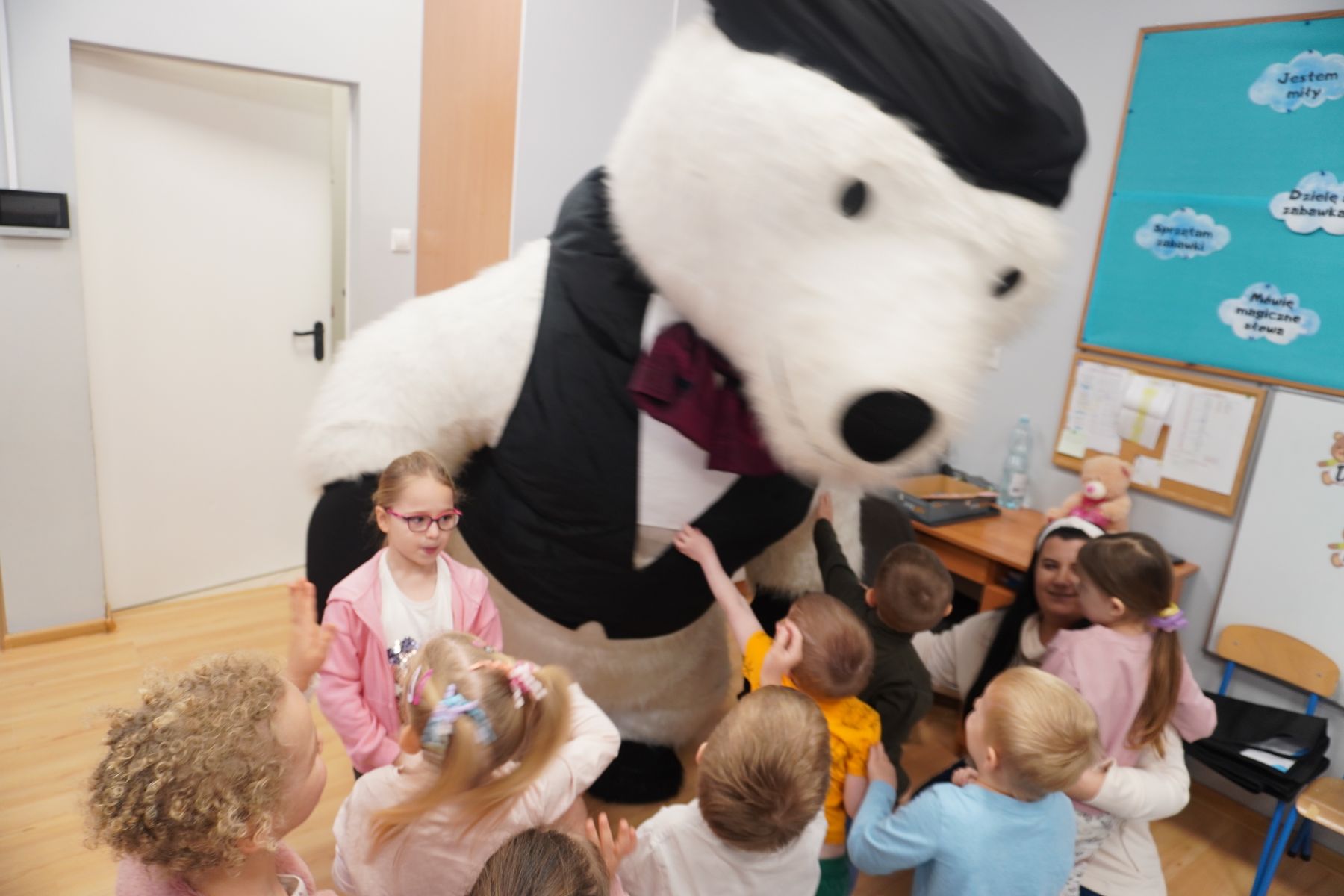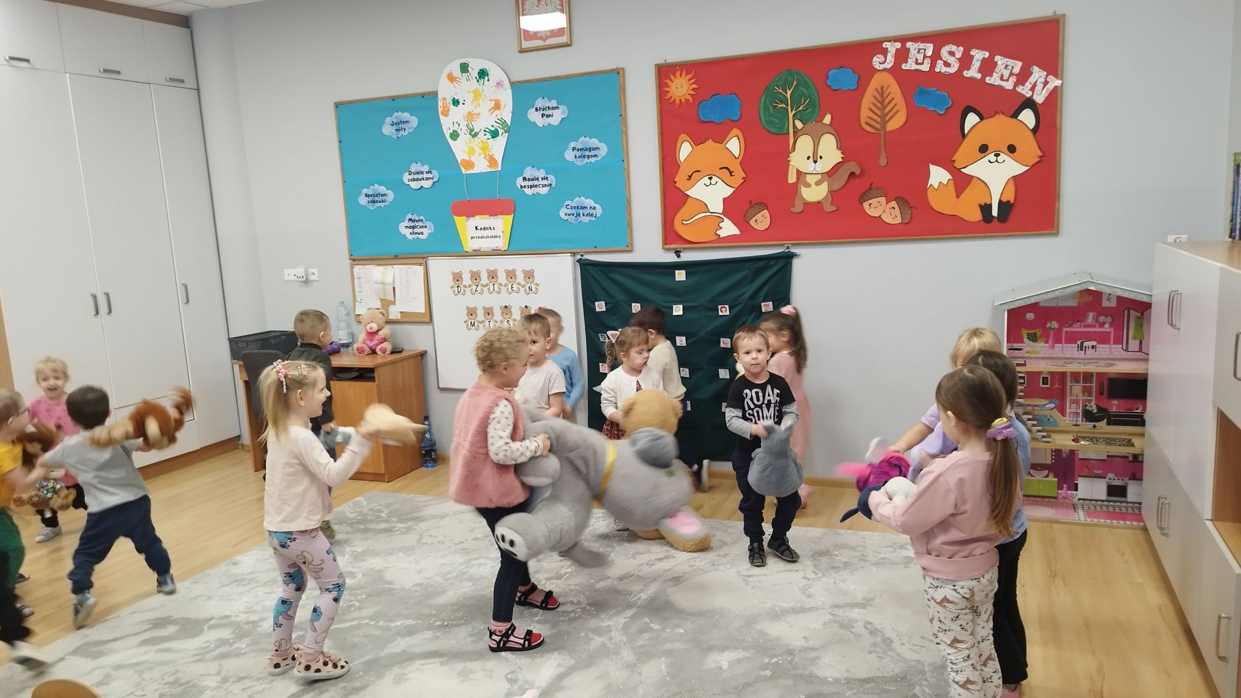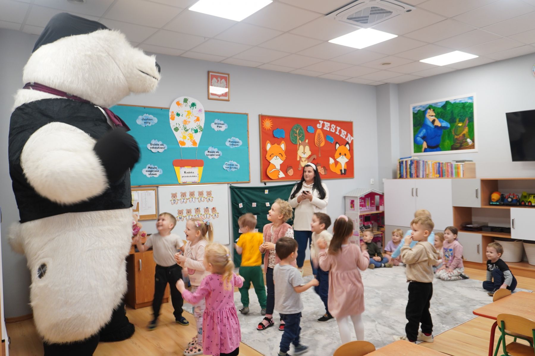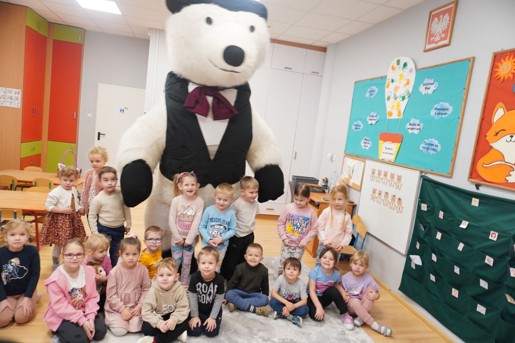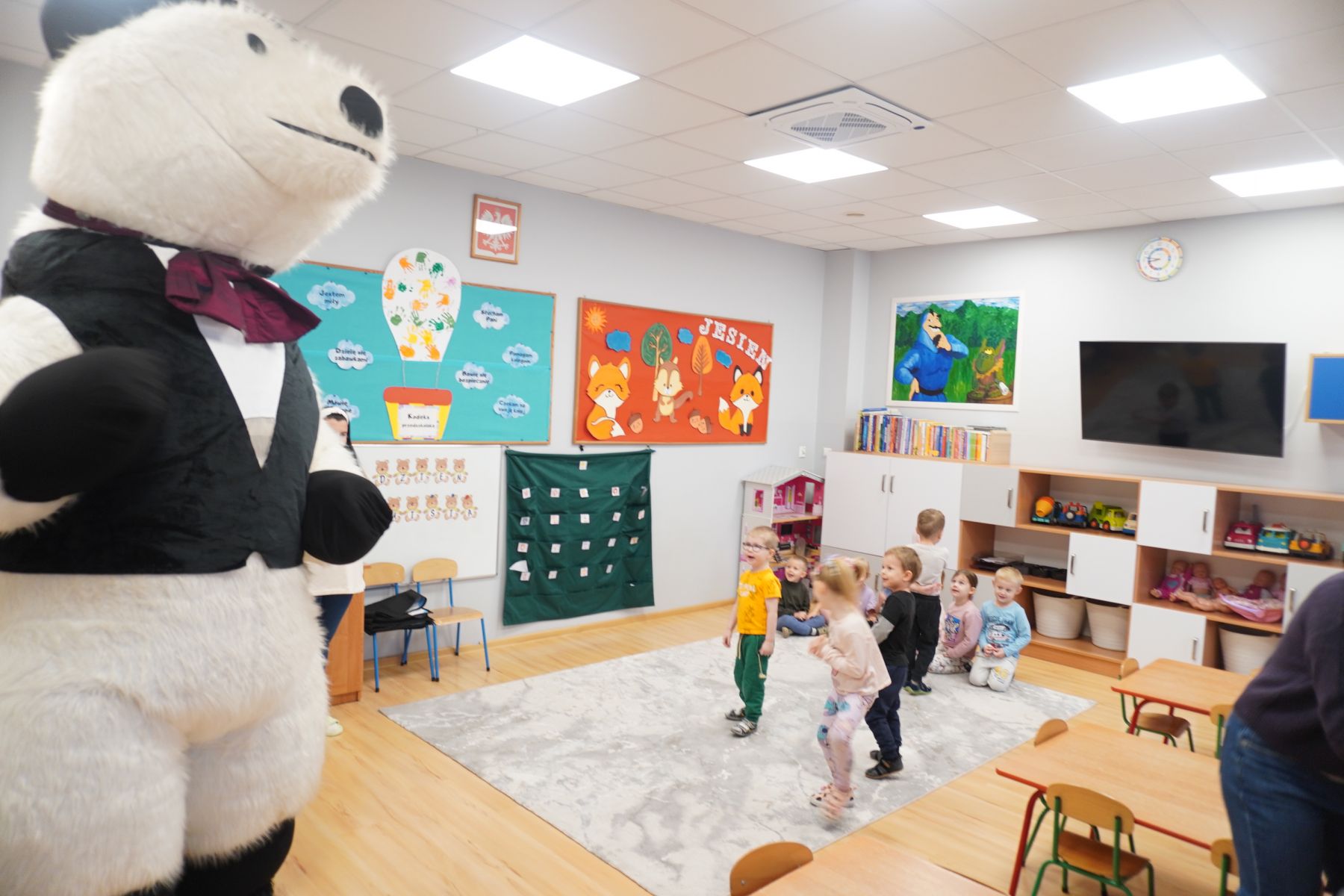 Największą atrakcją dnia były odwiedziny Pana Misia, który pojawił się niespodziewanie, wzbudzając ogromną radość wśród dzieci. Pan Miś żartował, robił zabawne sztuczki i tańczył razem z przedszkolakami. Dzieci śmiały się do łez, a ich entuzjazm udzielił się wszystkim obecnym.