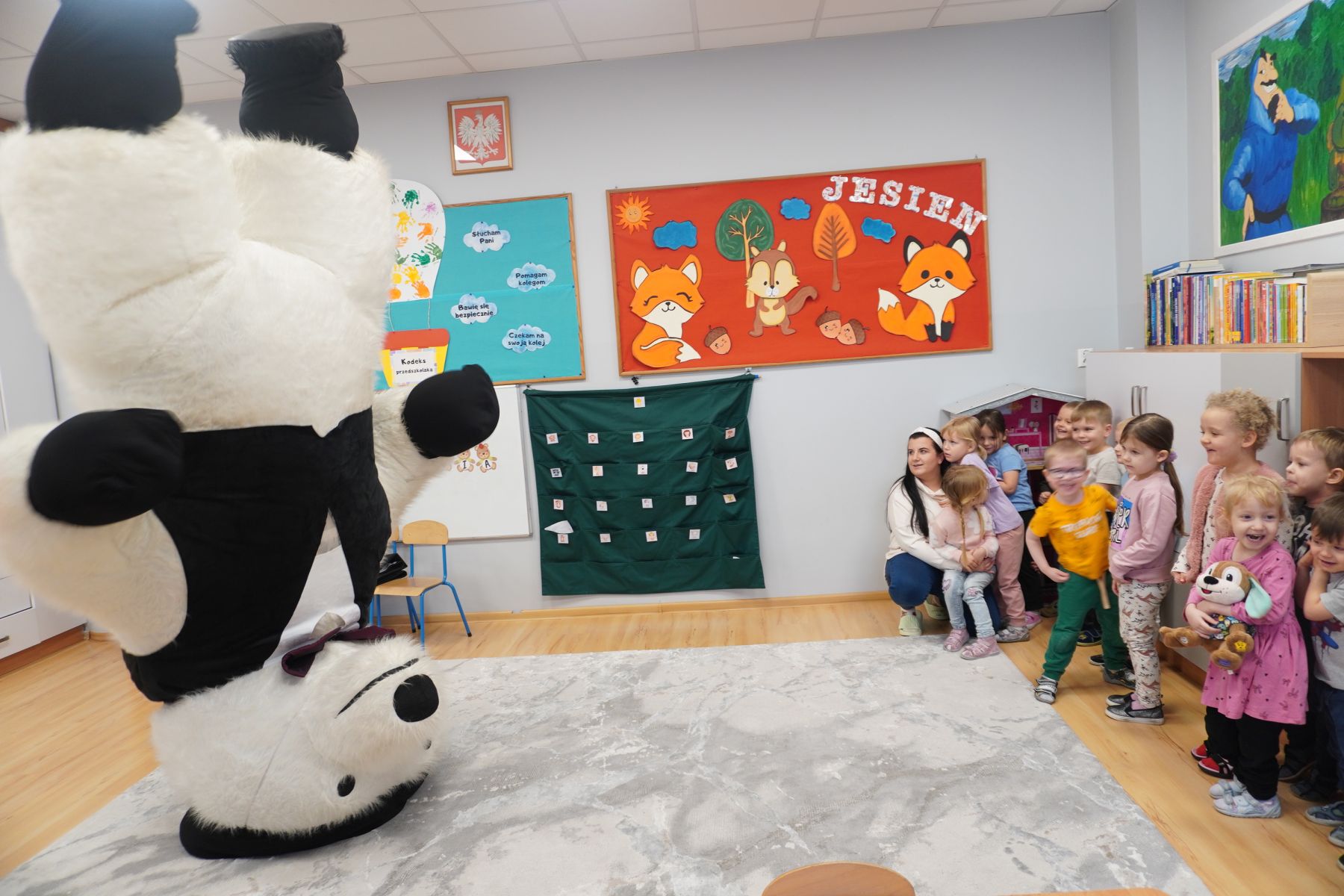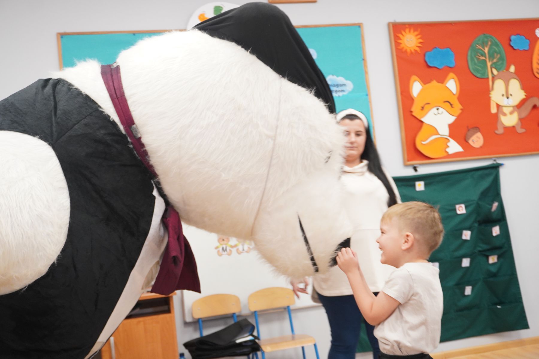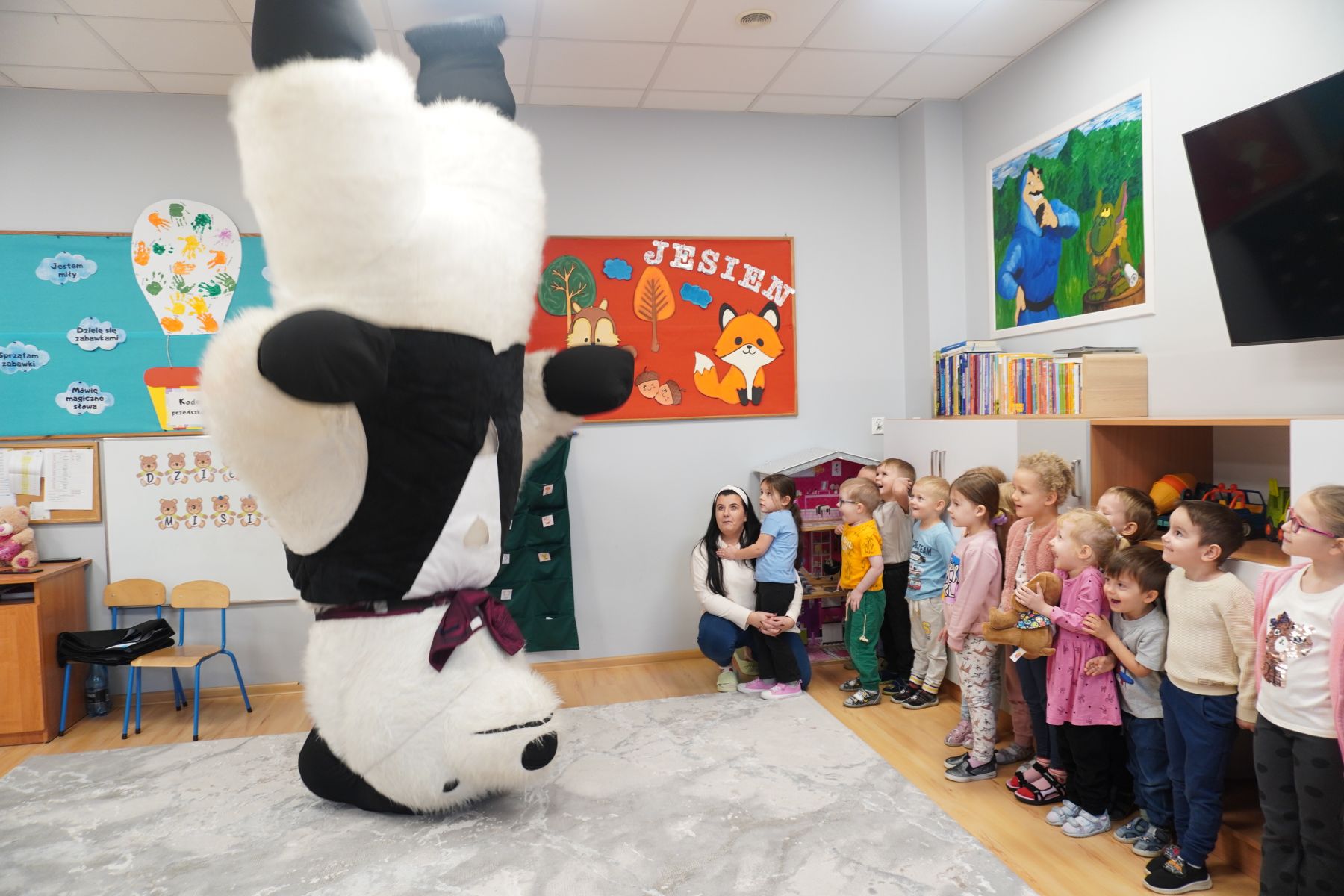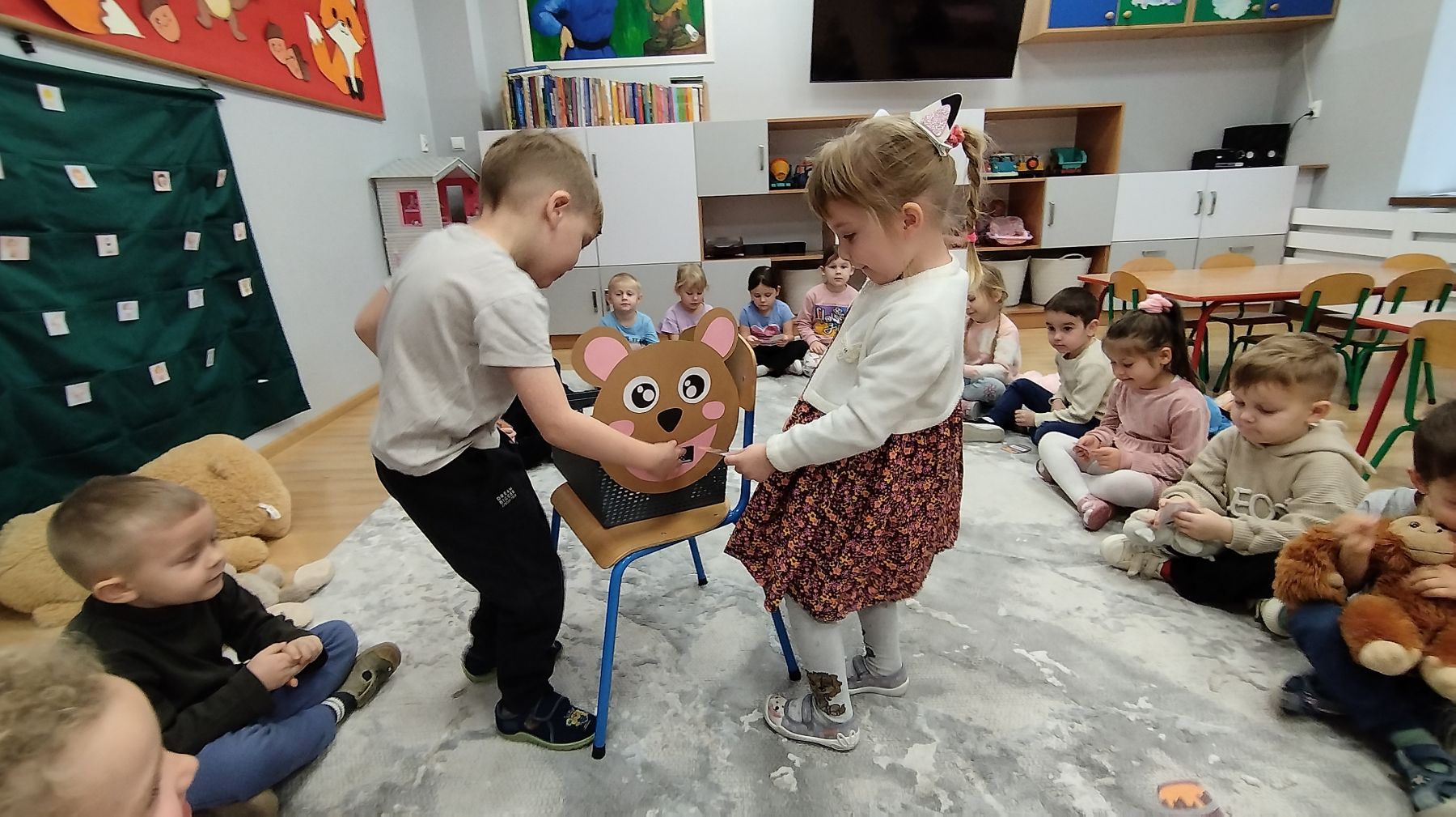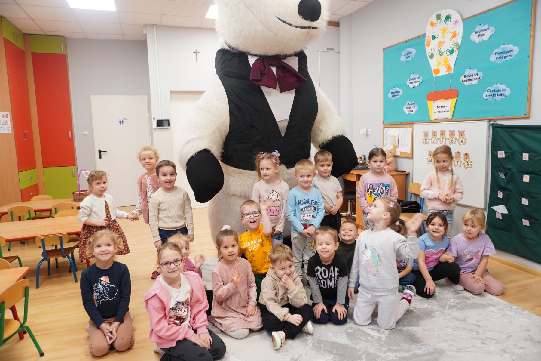 Największą atrakcją dnia były odwiedziny Pana Misia, który pojawił się niespodziewanie, wzbudzając ogromną radość wśród dzieci. Pan Miś żartował, robił zabawne sztuczki i tańczył razem z przedszkolakami. Dzieci śmiały się do łez, a ich entuzjazm udzielił się wszystkim obecnym.