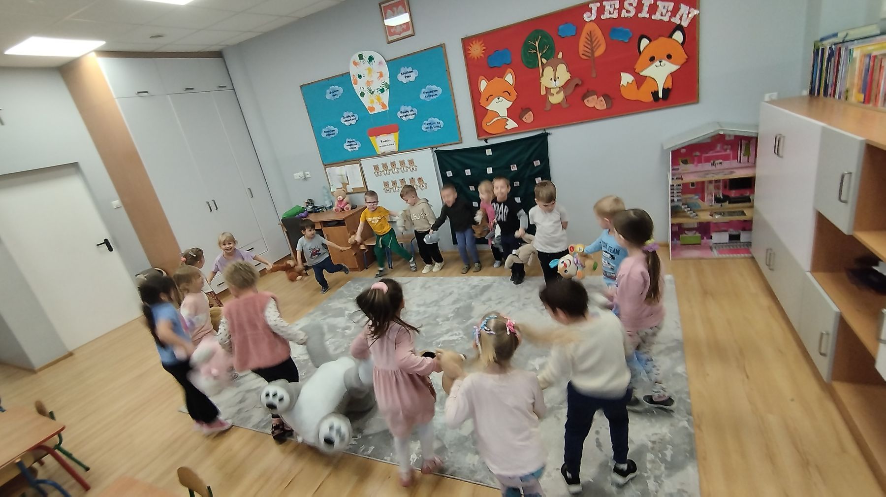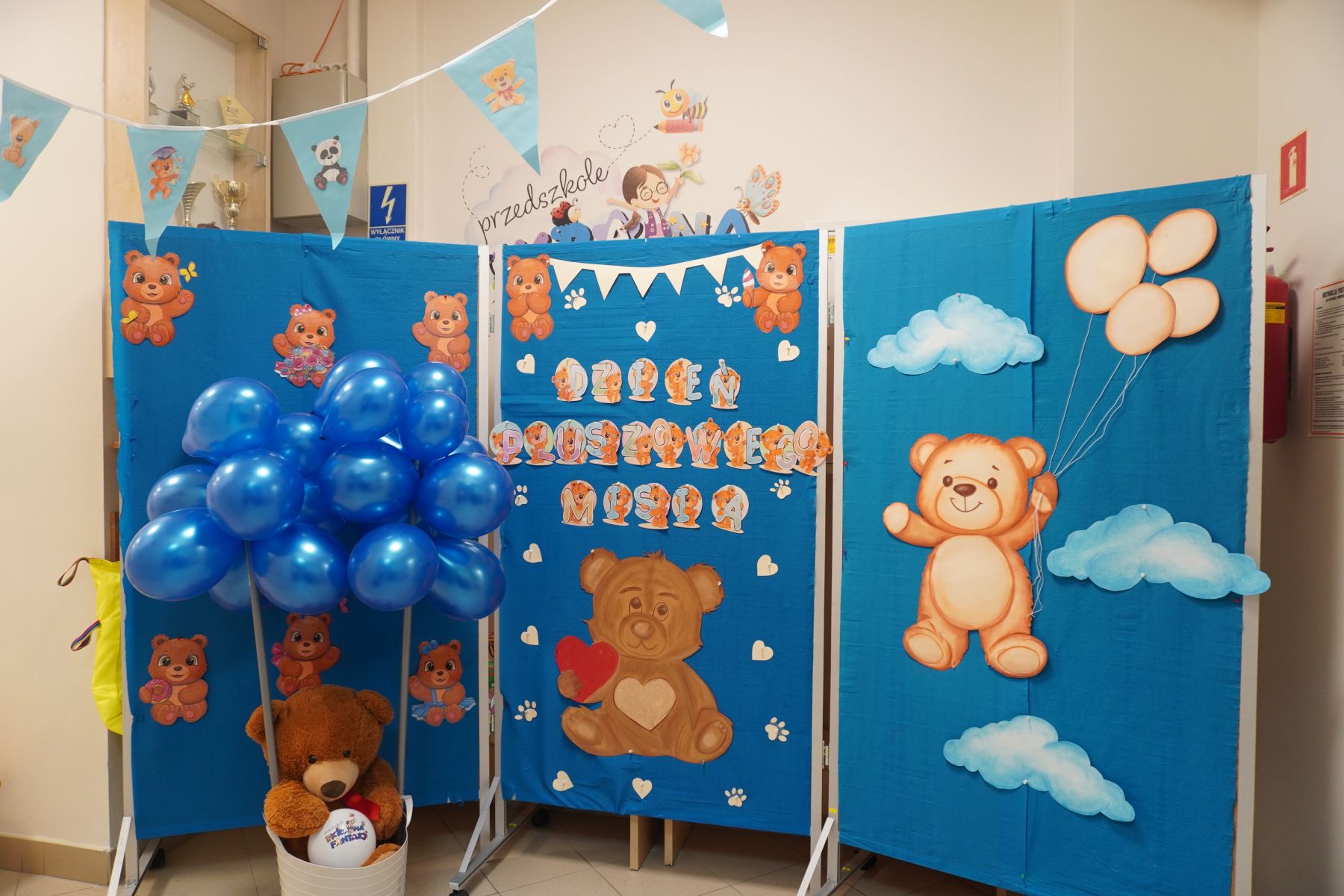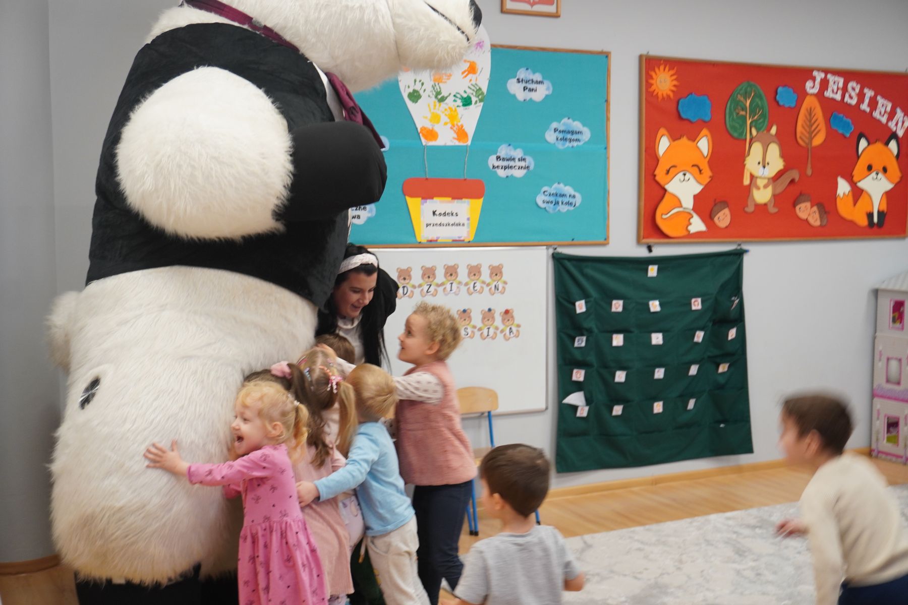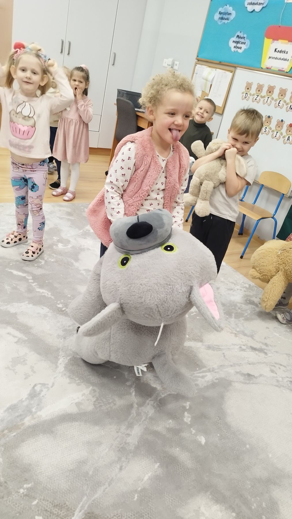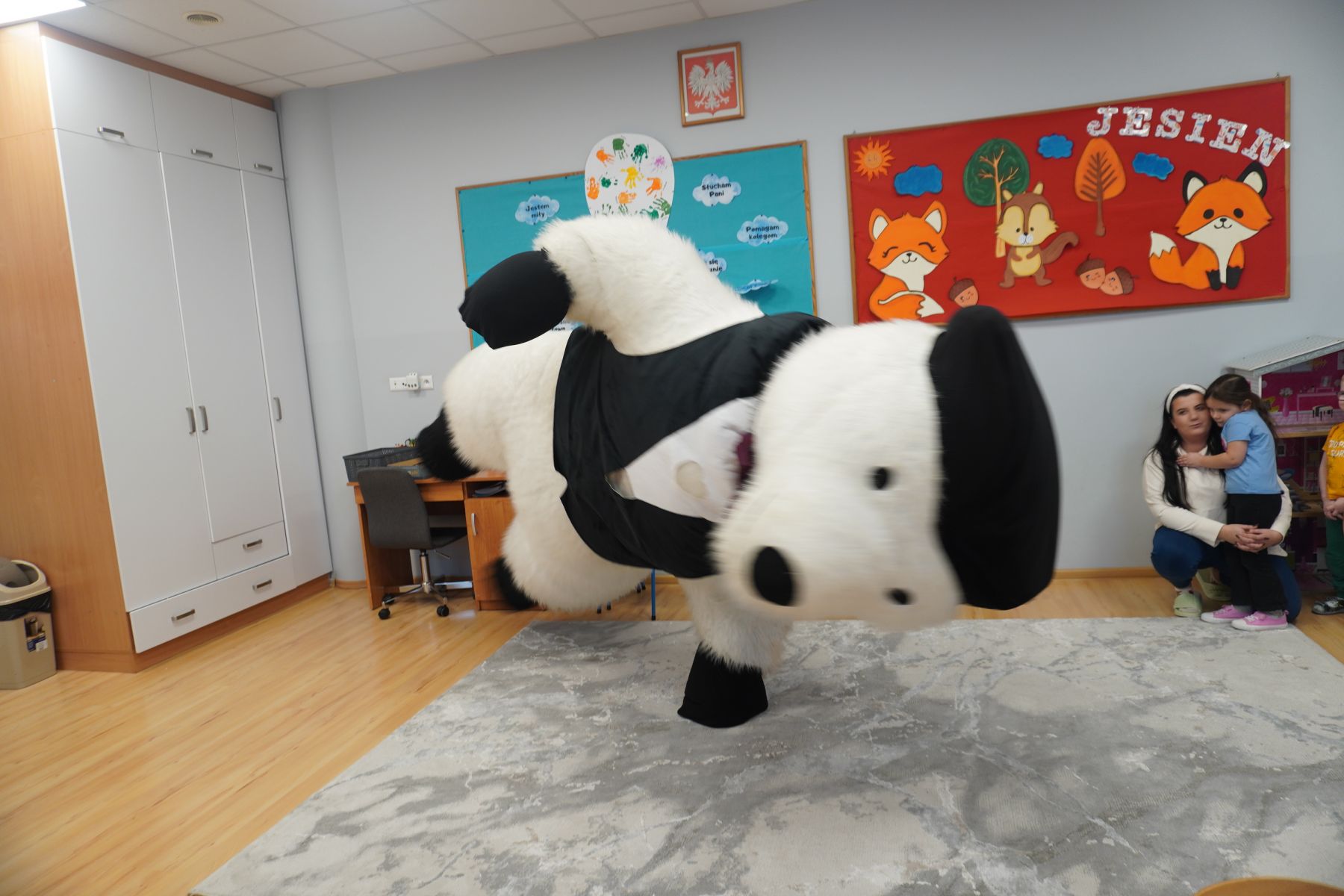 Największą atrakcją dnia były odwiedziny Pana Misia, który pojawił się niespodziewanie, wzbudzając ogromną radość wśród dzieci. Pan Miś żartował, robił zabawne sztuczki i tańczył razem z przedszkolakami. Dzieci śmiały się do łez, a ich entuzjazm udzielił się wszystkim obecnym.
