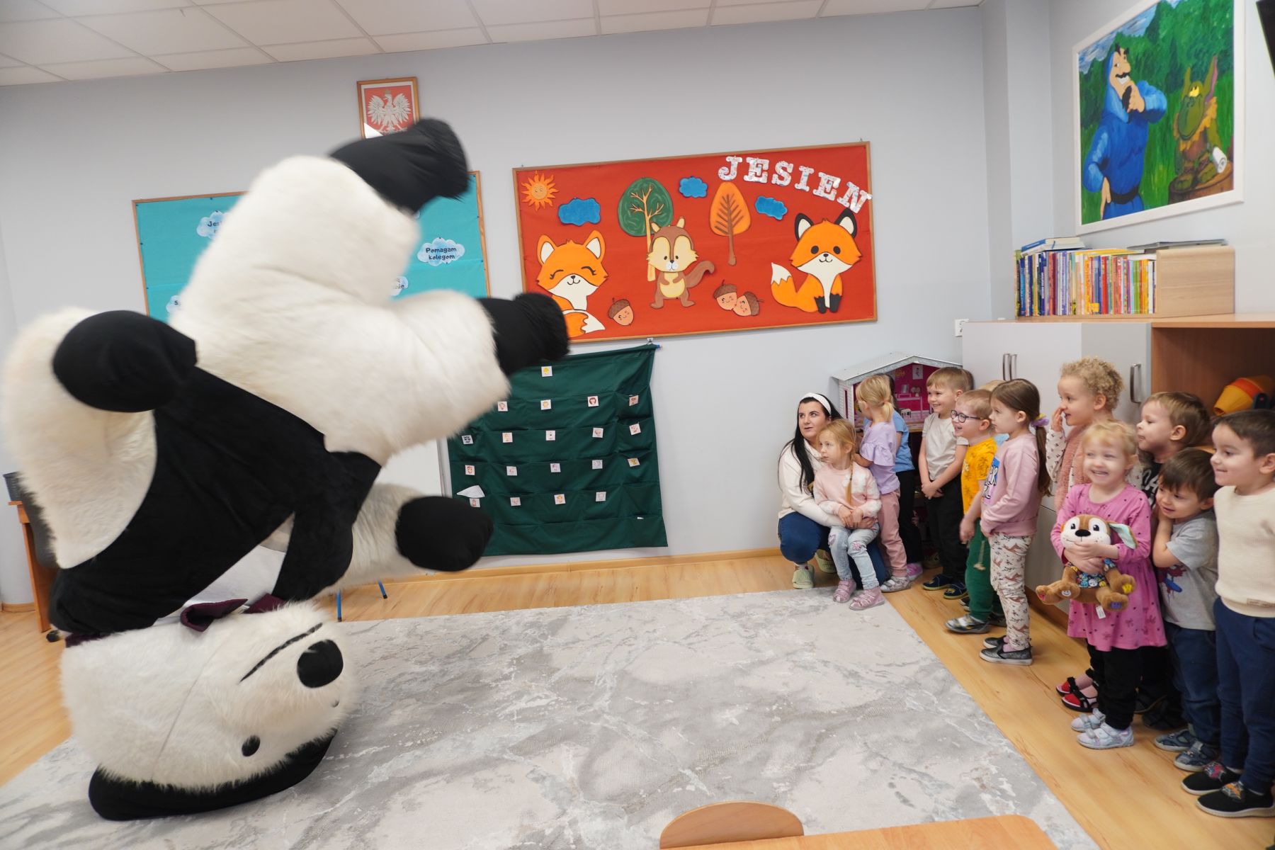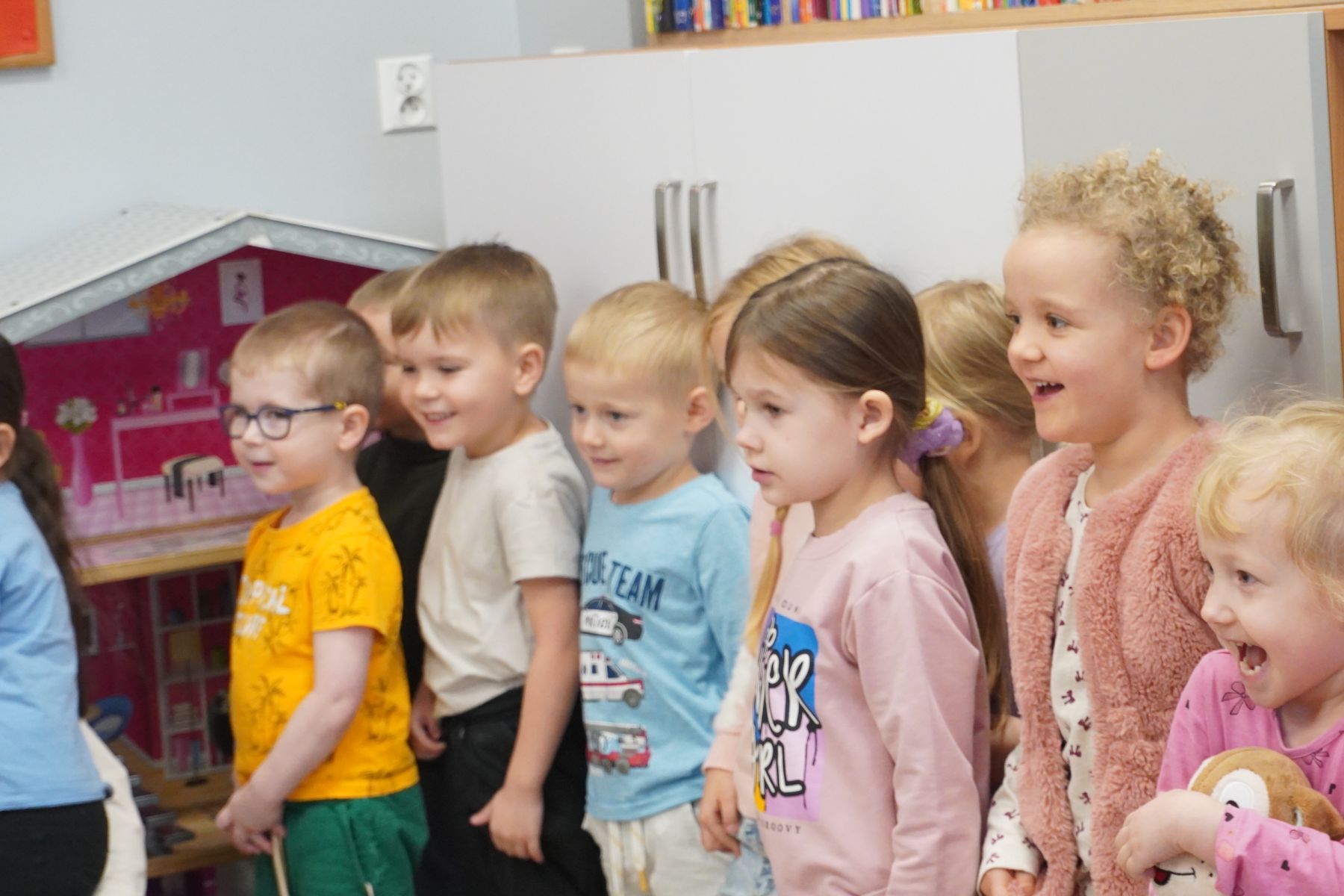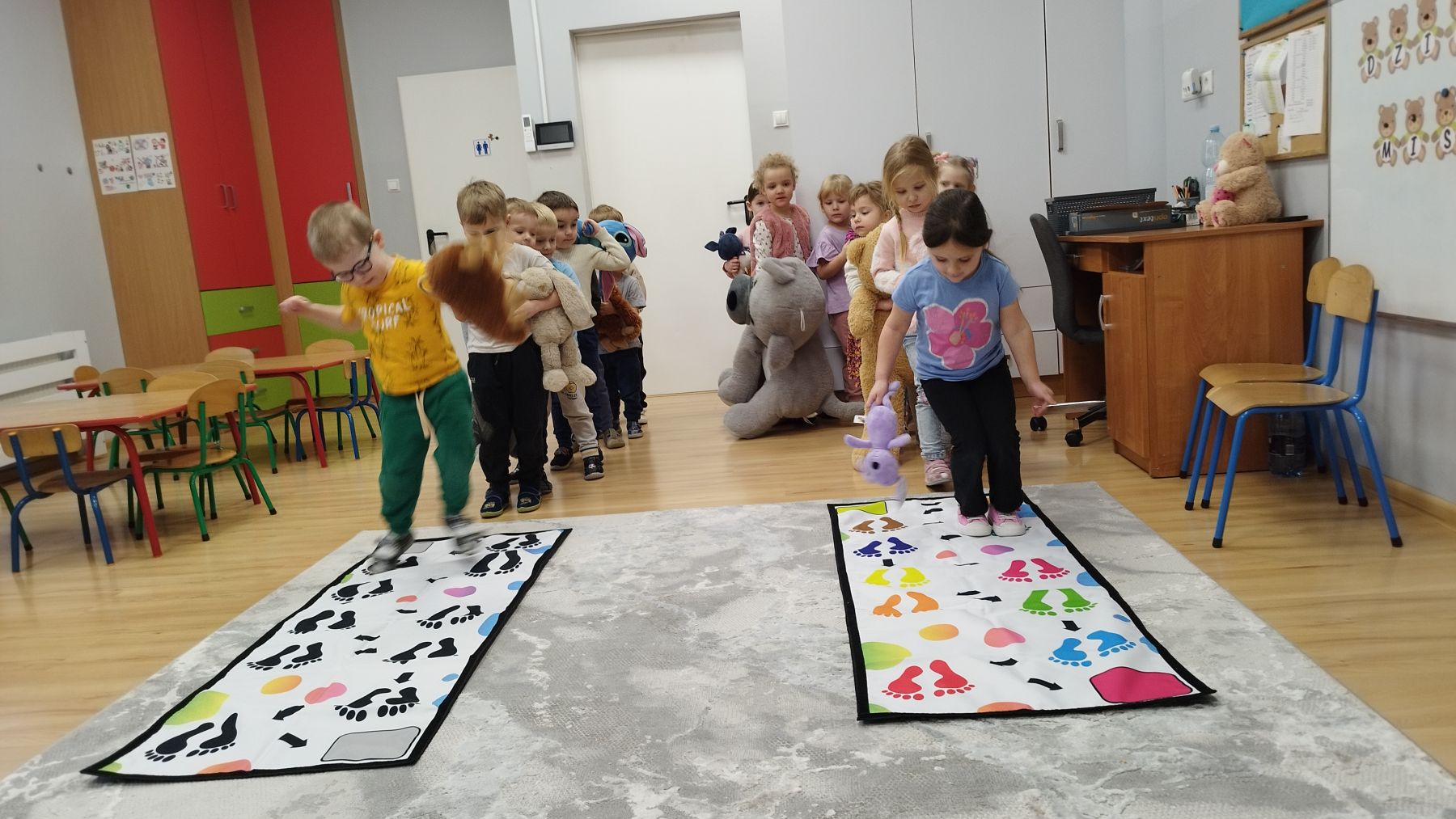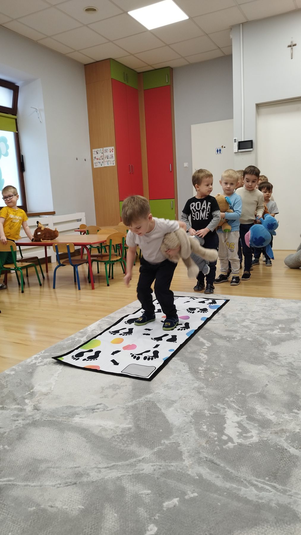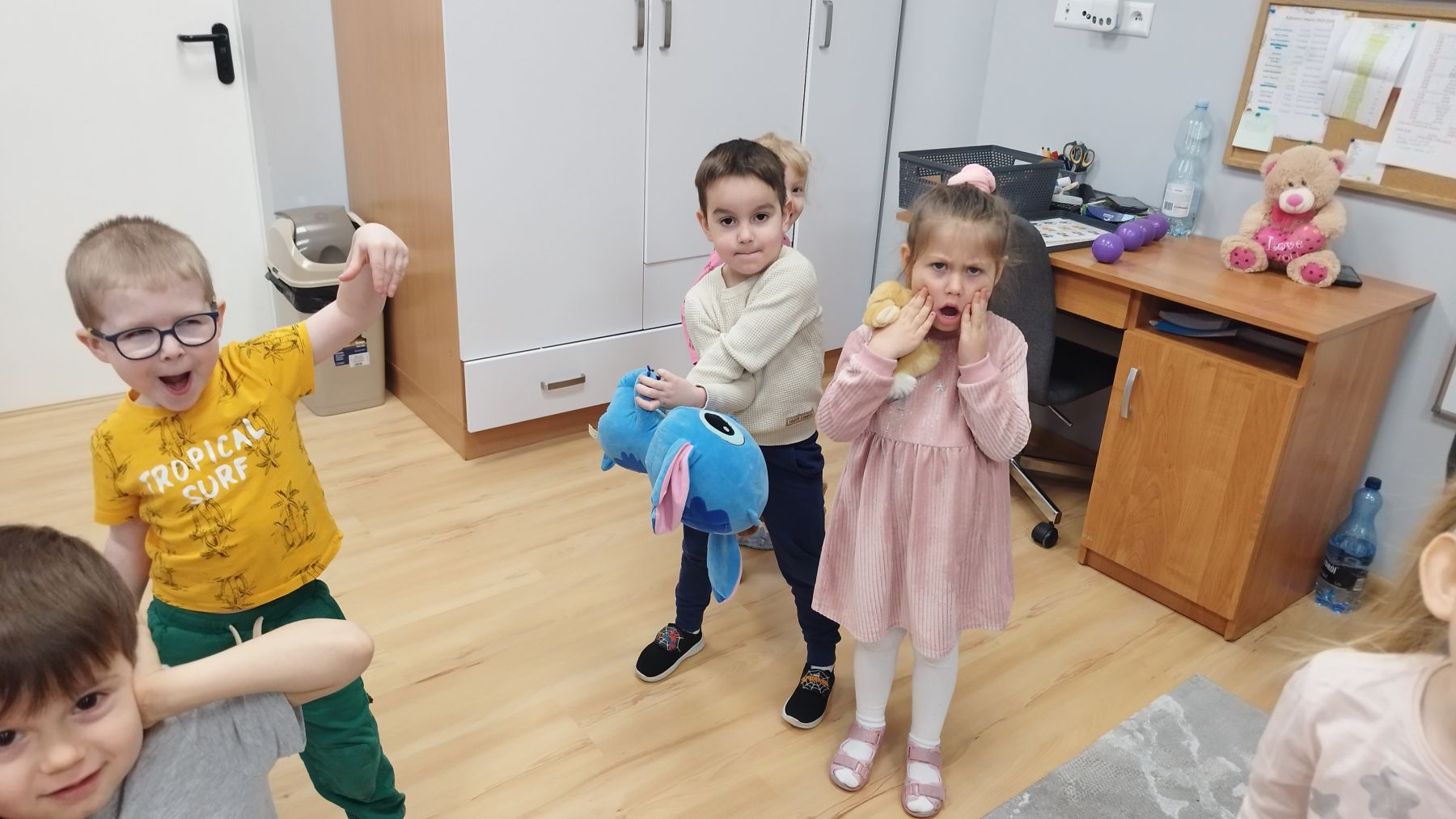 Największą atrakcją dnia były odwiedziny Pana Misia, który pojawił się niespodziewanie, wzbudzając ogromną radość wśród dzieci. Pan Miś żartował, robił zabawne sztuczki i tańczył razem z przedszkolakami. Dzieci śmiały się do łez, a ich entuzjazm udzielił się wszystkim obecnym.