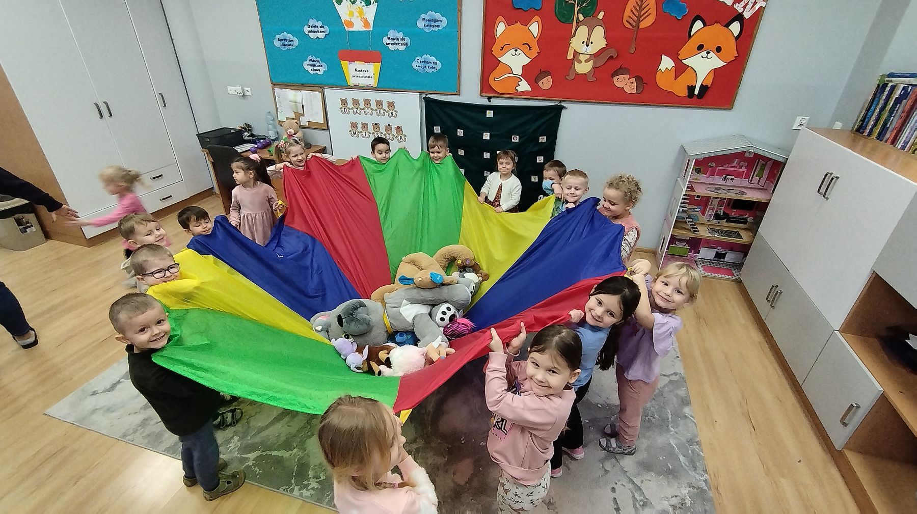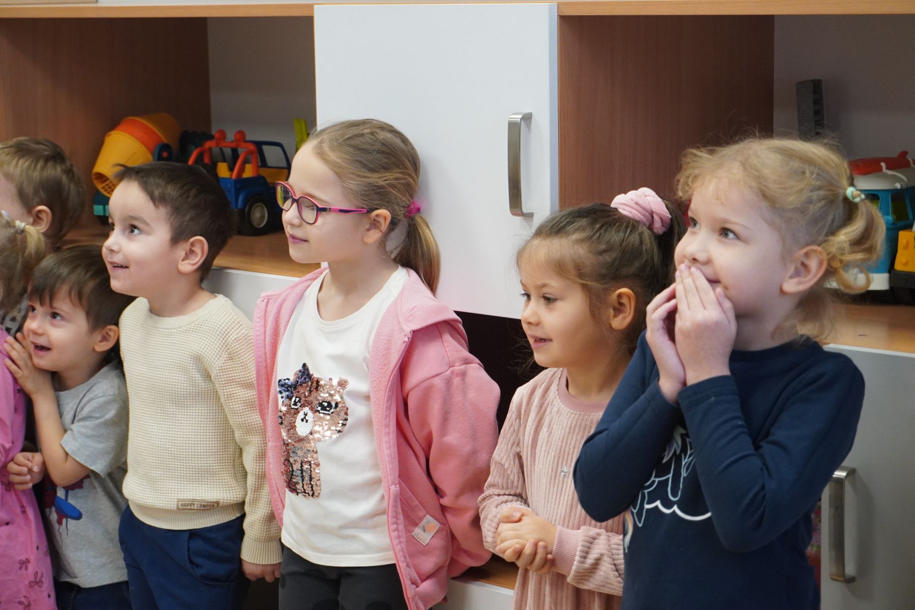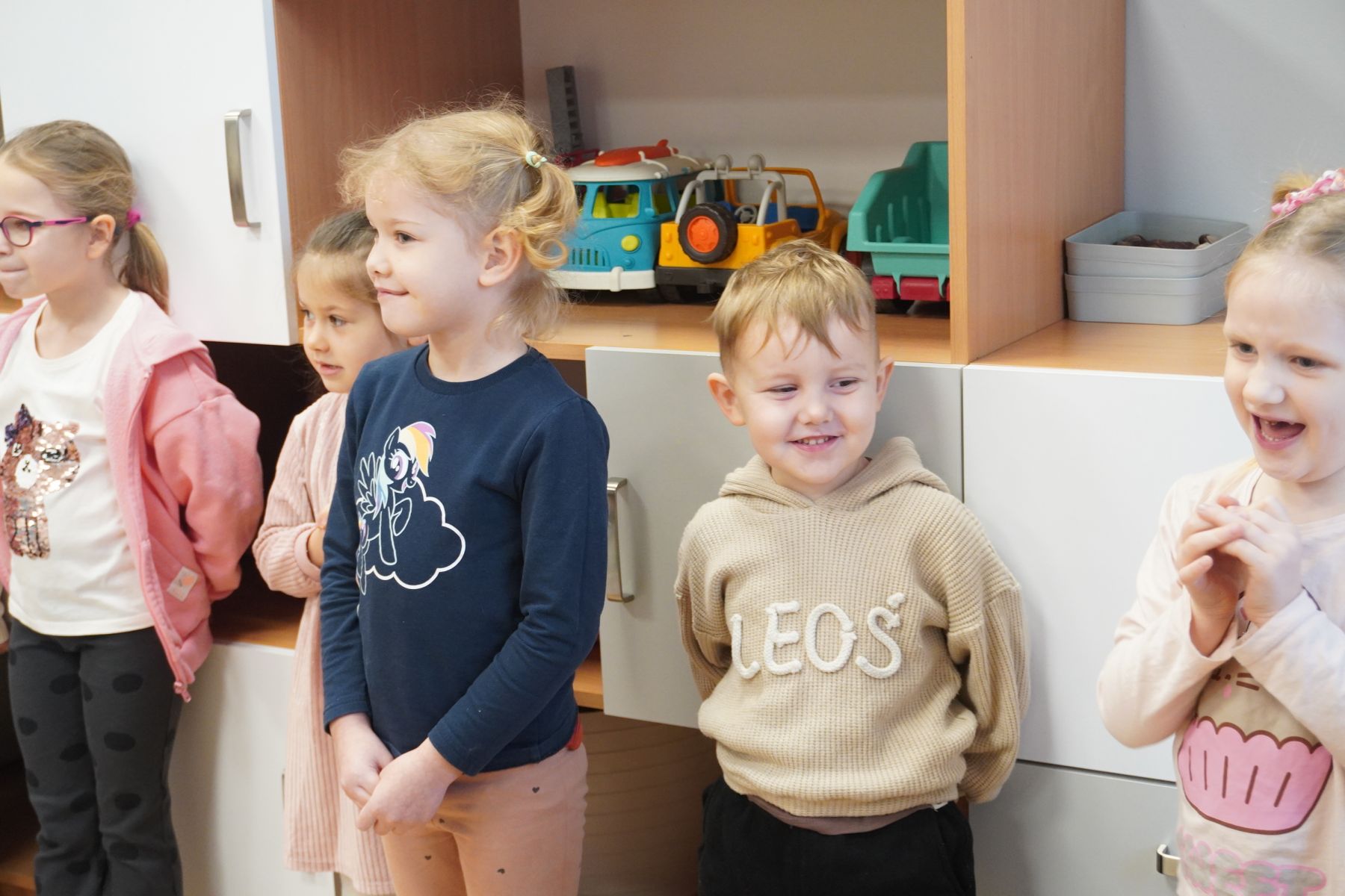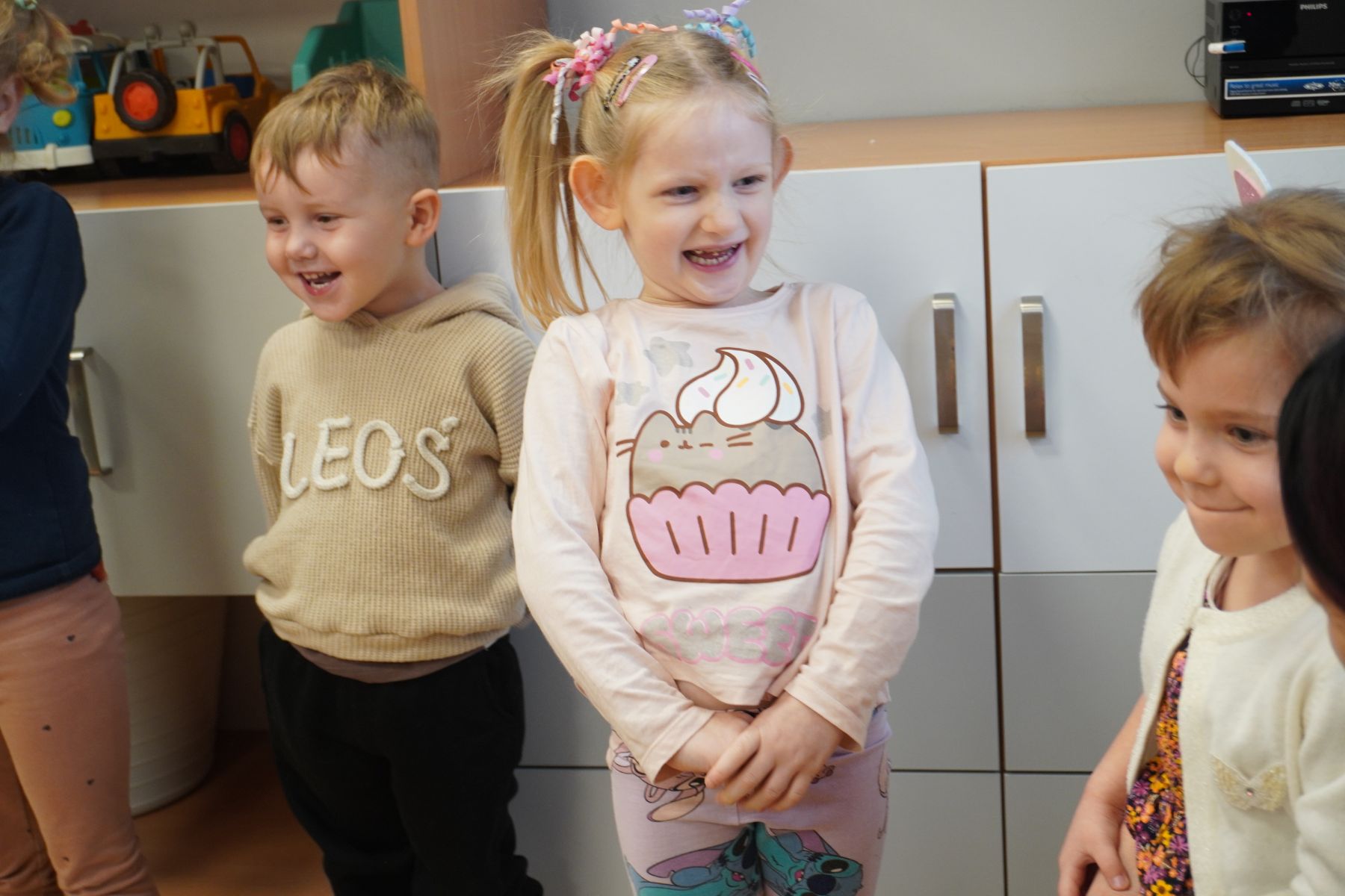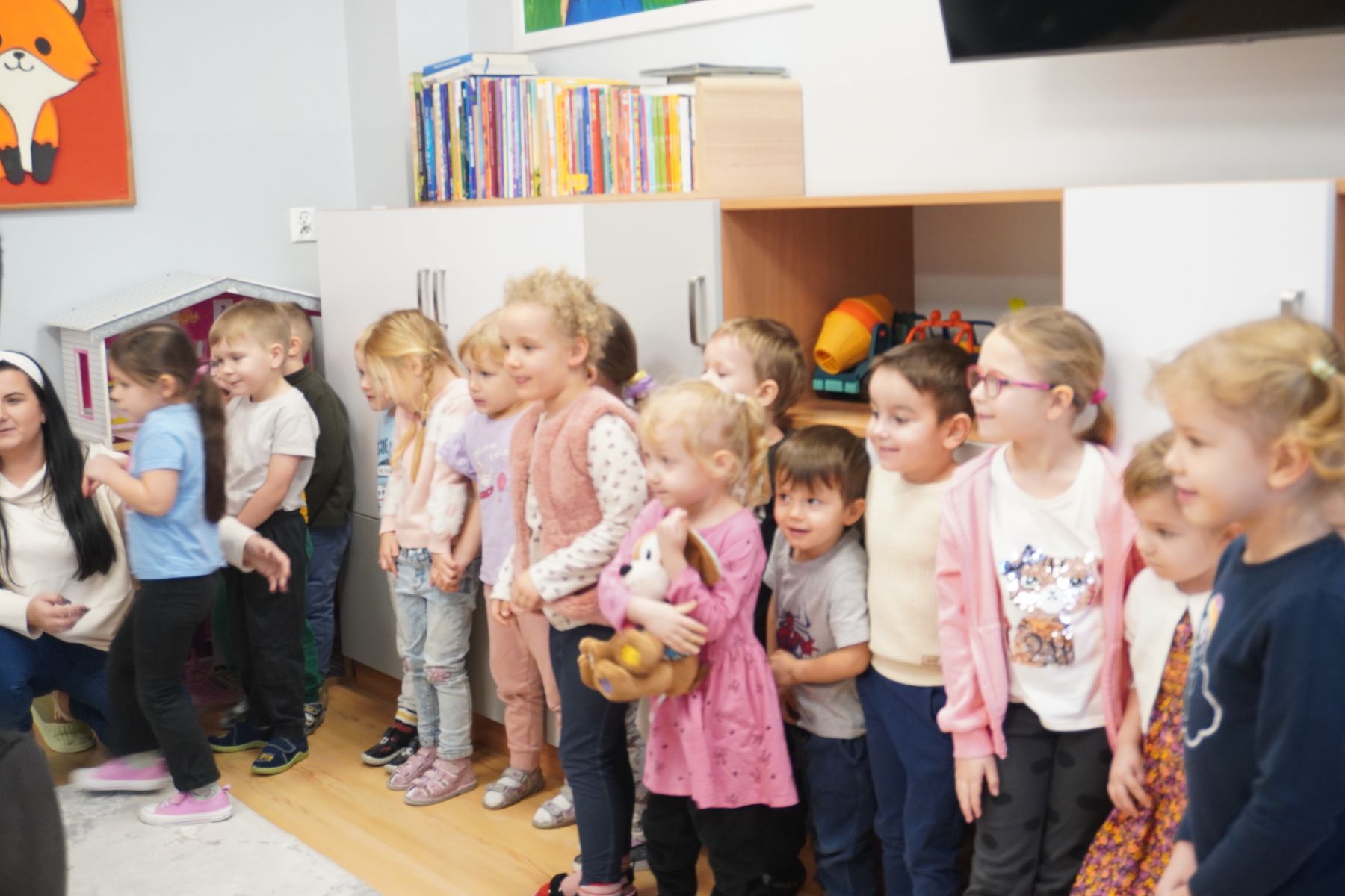 Największą atrakcją dnia były odwiedziny Pana Misia, który pojawił się niespodziewanie, wzbudzając ogromną radość wśród dzieci. Pan Miś żartował, robił zabawne sztuczki i tańczył razem z przedszkolakami. Dzieci śmiały się do łez, a ich entuzjazm udzielił się wszystkim obecnym.