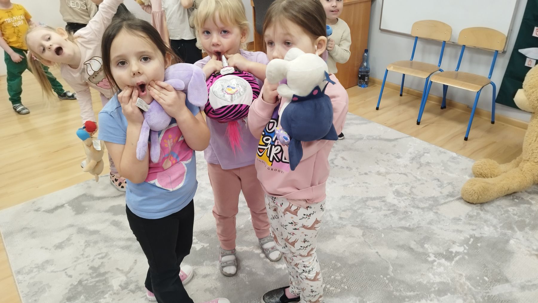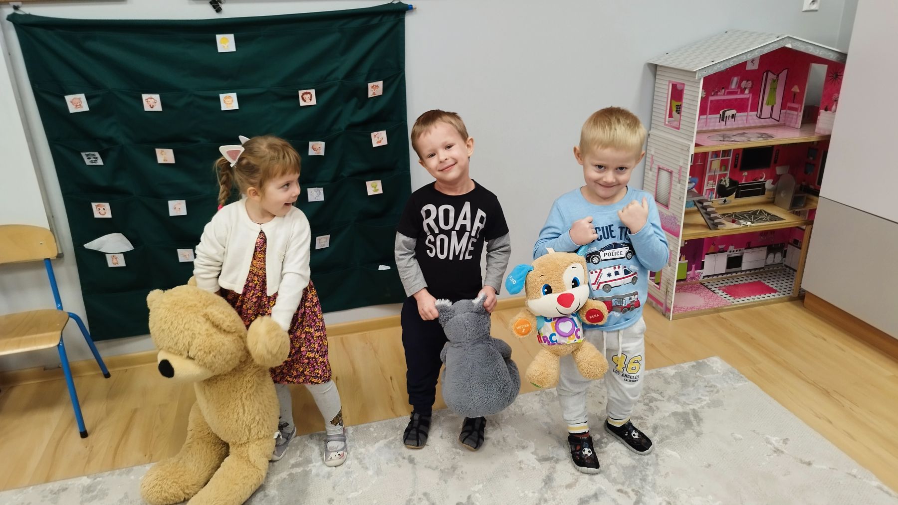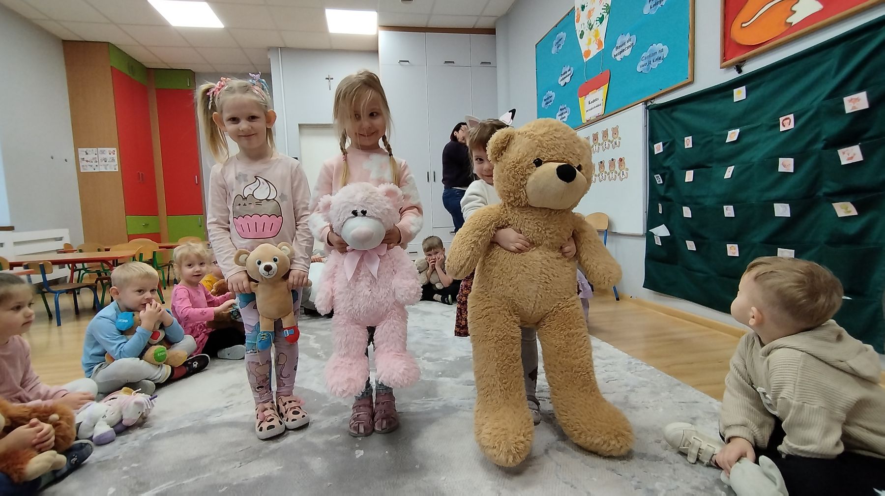 Dzień Pluszowego Misia zakończył się wspólnym zdjęciem z gościem honorowym oraz słodkim poczęstunkiem. To był dzień pełen uśmiechu, zabawy i ciepłych emocji, który na długo pozostanie w pamięci wszystkich przedszkolaków.