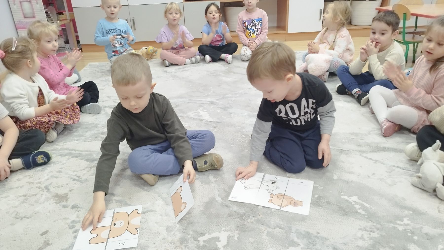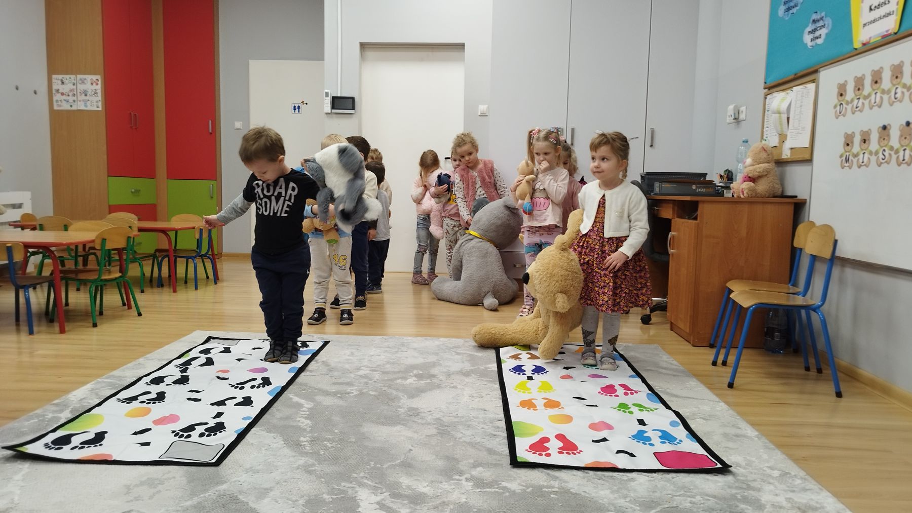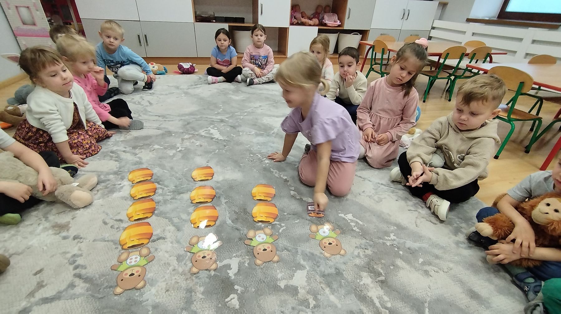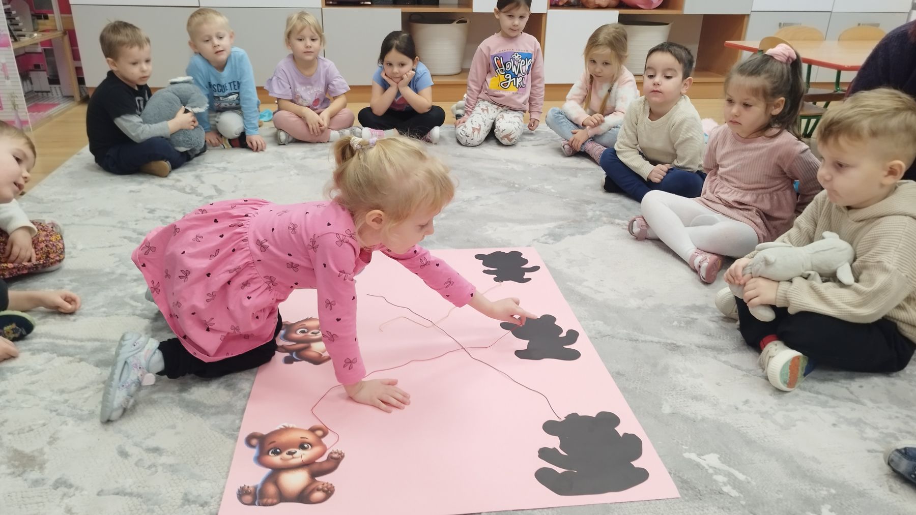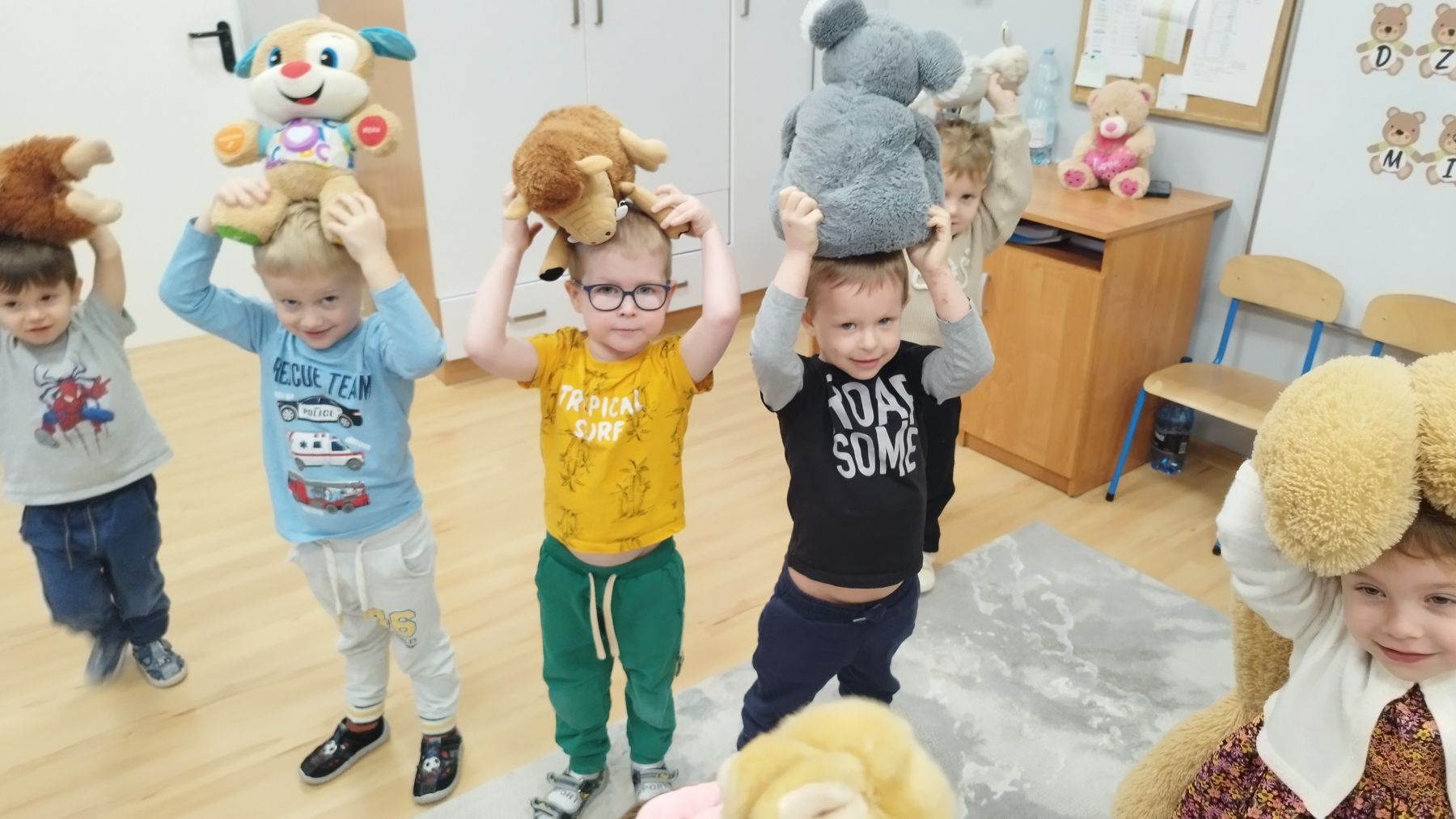 Przedszkolaki uczestniczyły w różnorodnych zajęciach plastycznych – malowały, wyklejały i tworzyły własne portrety misiów. Kolorowe prace ozdobiły przedszkolne korytarze, wprowadzając jeszcze więcej ciepła i uśmiechu. Nie zabrakło też wspólnych tańców, piosenek i zagadek o misiach.