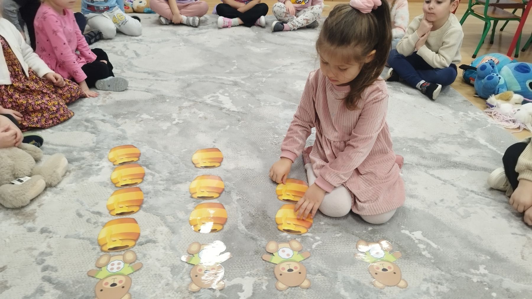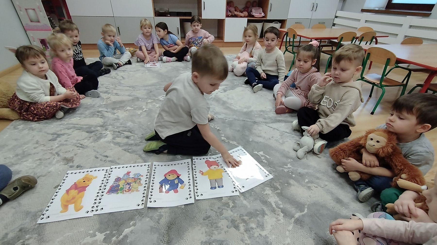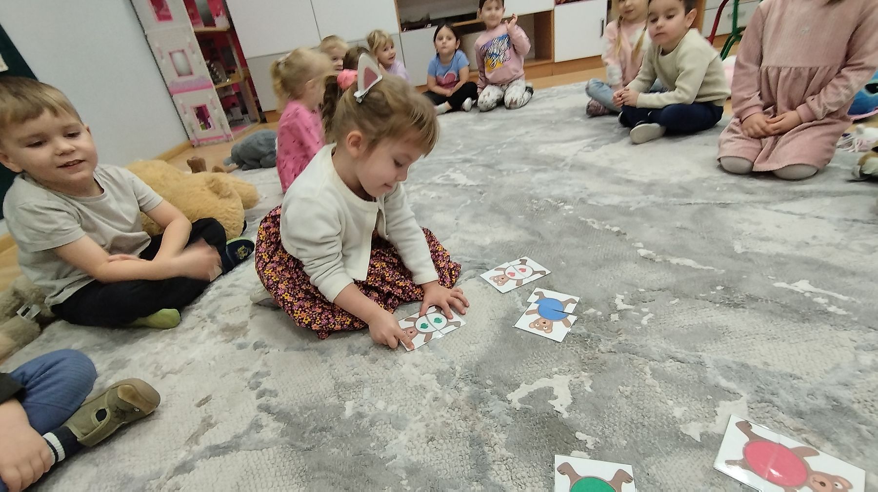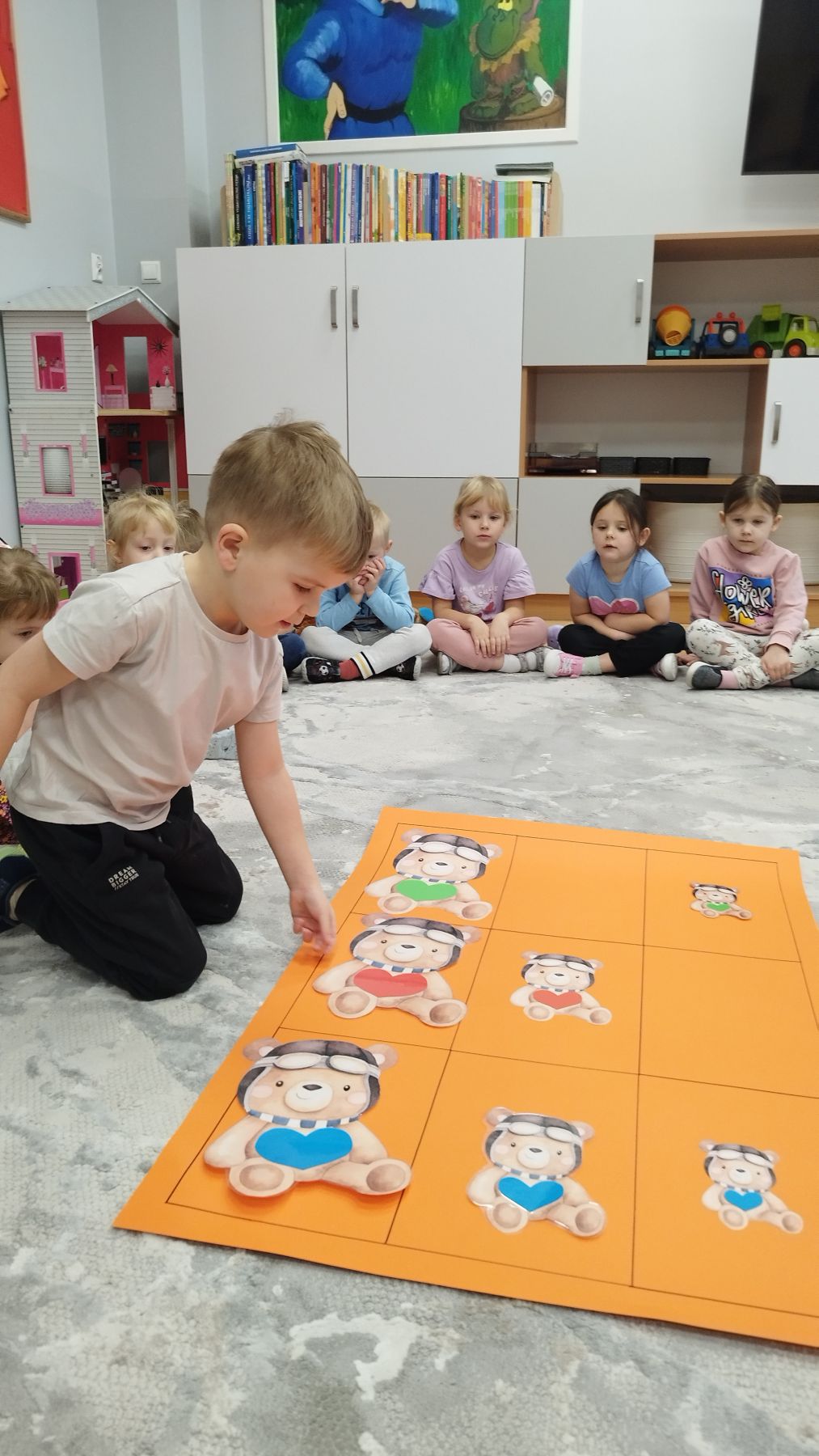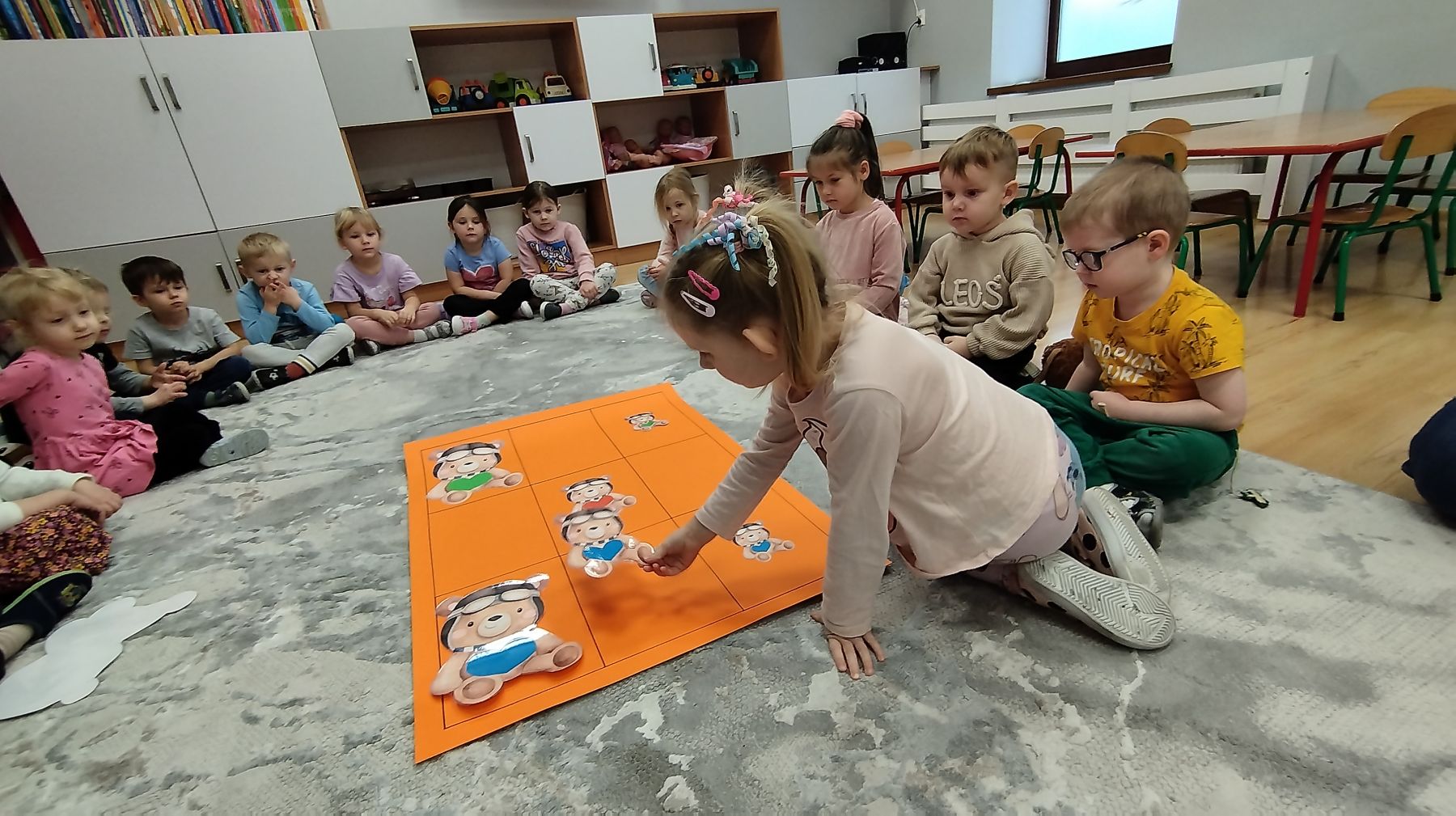 Przedszkolaki uczestniczyły w różnorodnych zajęciach plastycznych – malowały, wyklejały i tworzyły własne portrety misiów. Kolorowe prace ozdobiły przedszkolne korytarze, wprowadzając jeszcze więcej ciepła i uśmiechu. Nie zabrakło też wspólnych tańców, piosenek i zagadek o misiach.