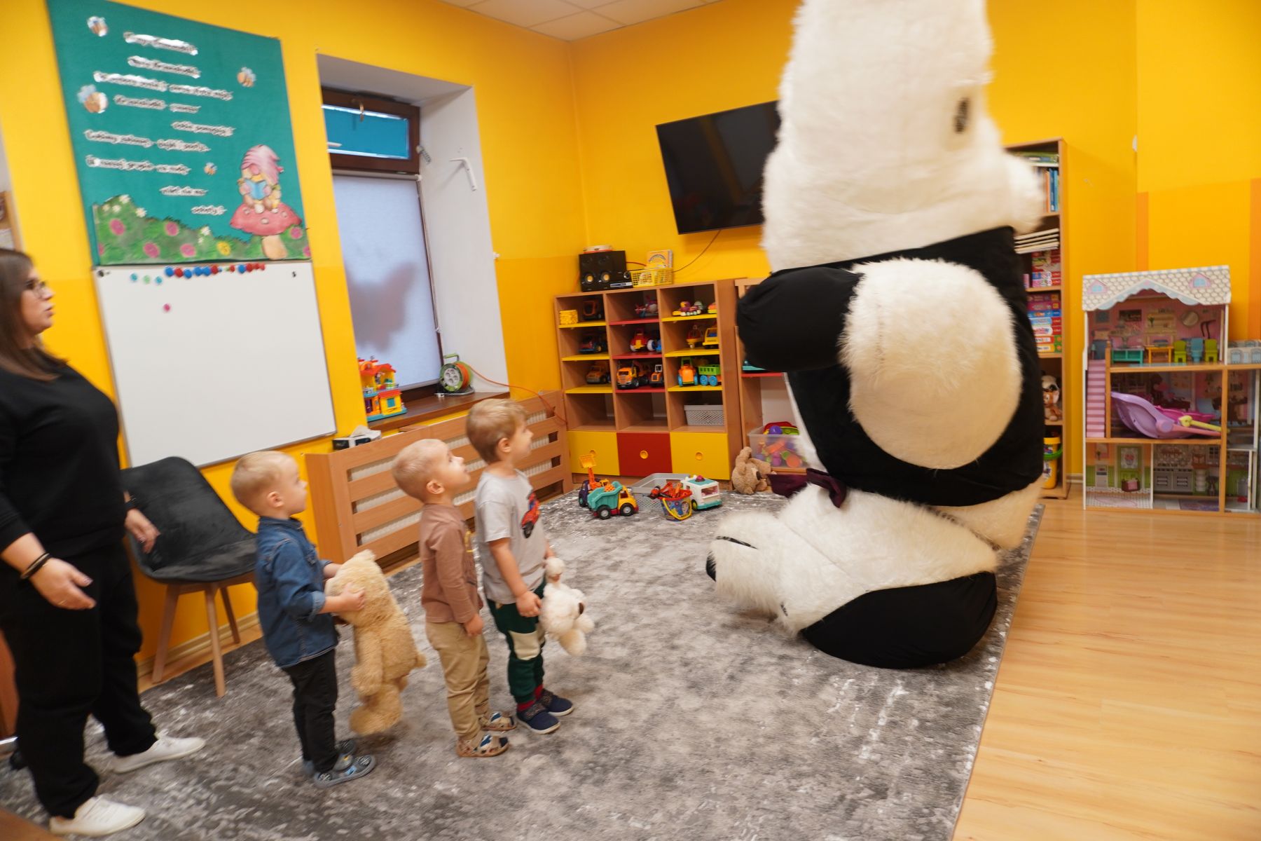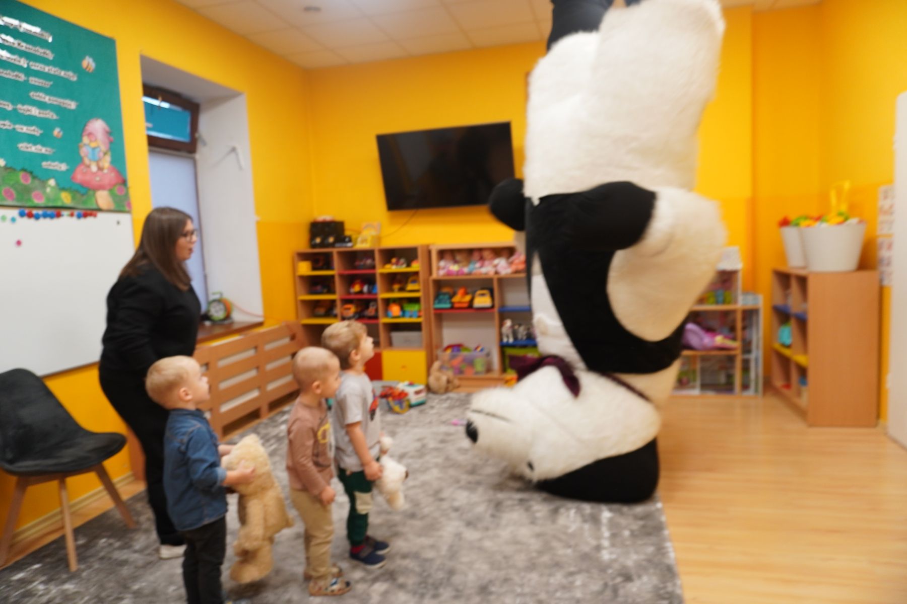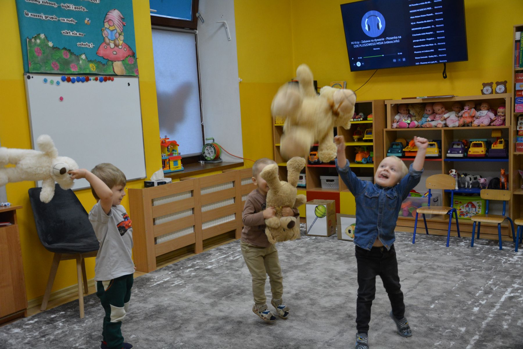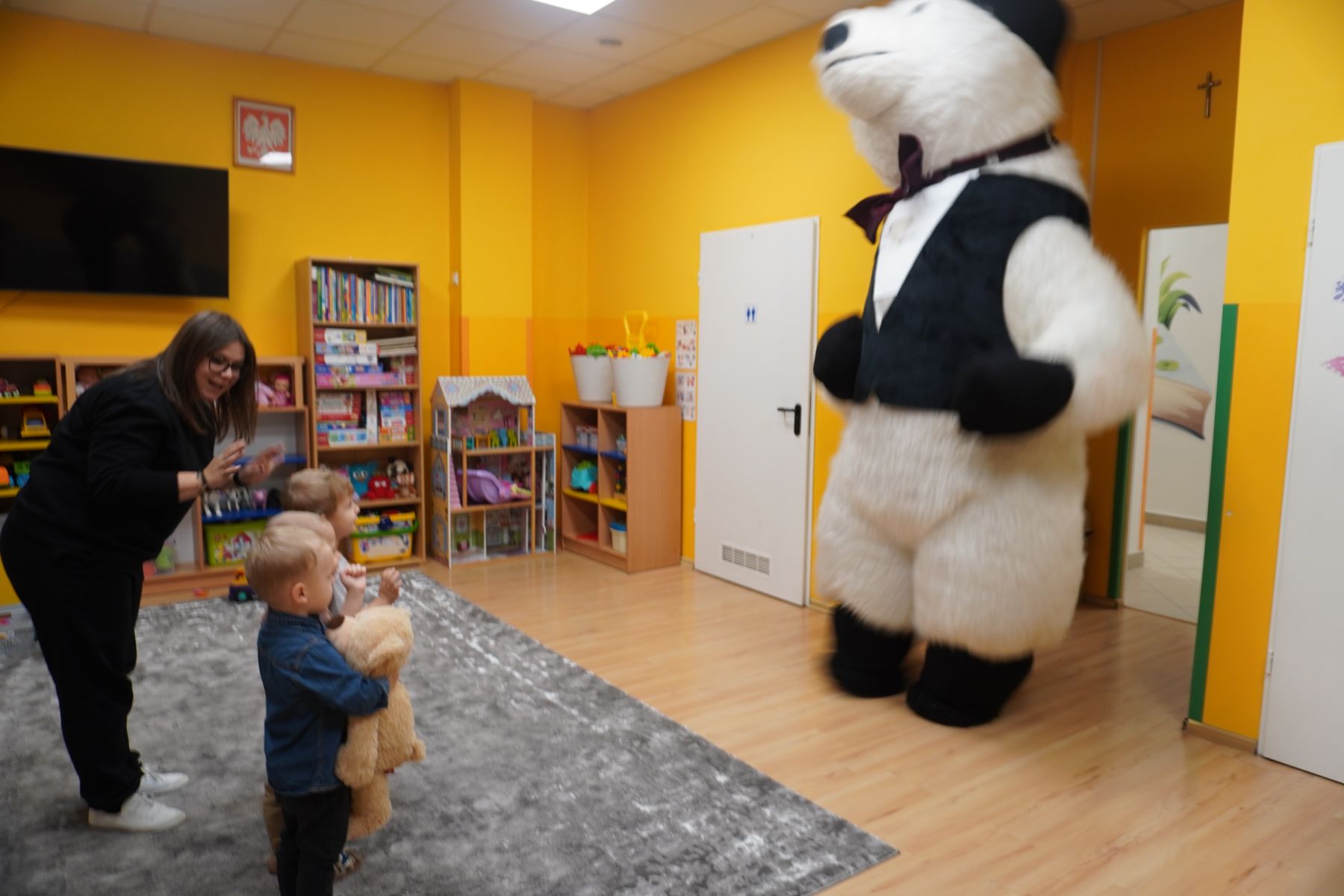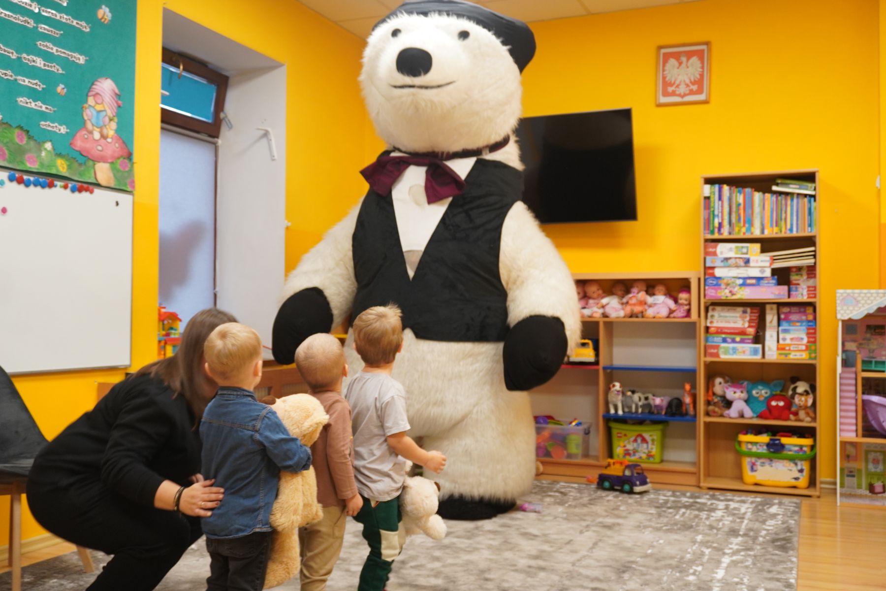 Największą atrakcją dnia były odwiedziny Pana Misia, który pojawił się niespodziewanie, wzbudzając ogromną radość wśród dzieci. Pan Miś żartował, robił zabawne sztuczki i tańczył razem z przedszkolakami. Dzieci śmiały się do łez, a ich entuzjazm udzielił się wszystkim obecnym.