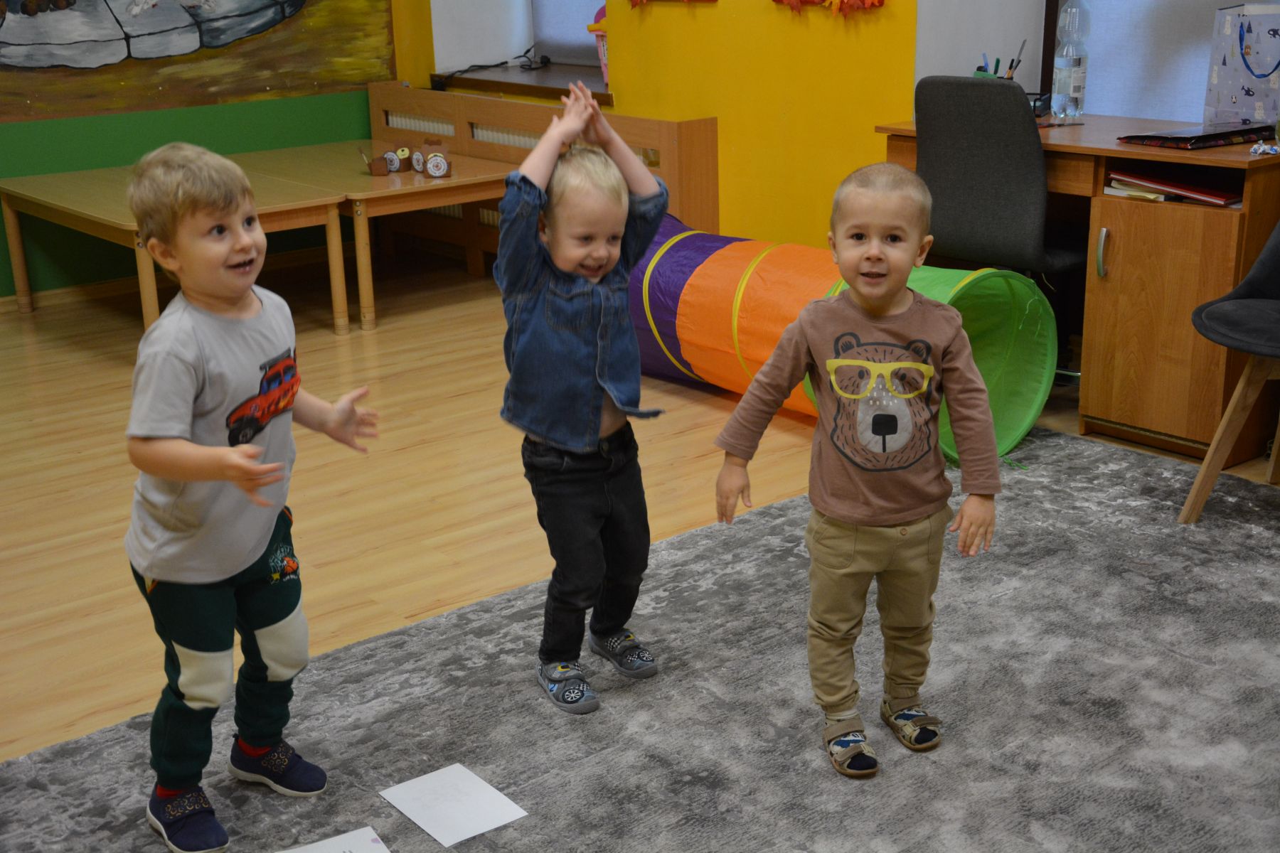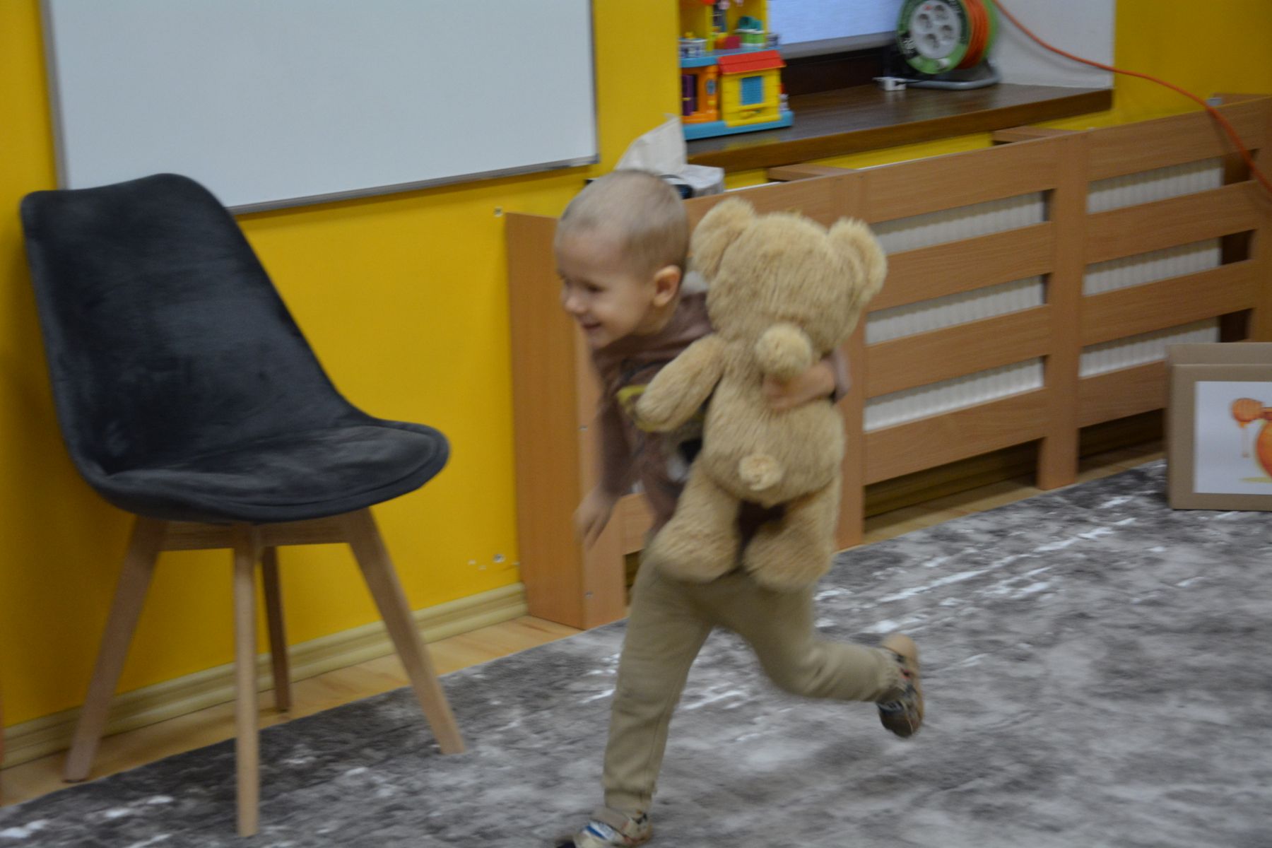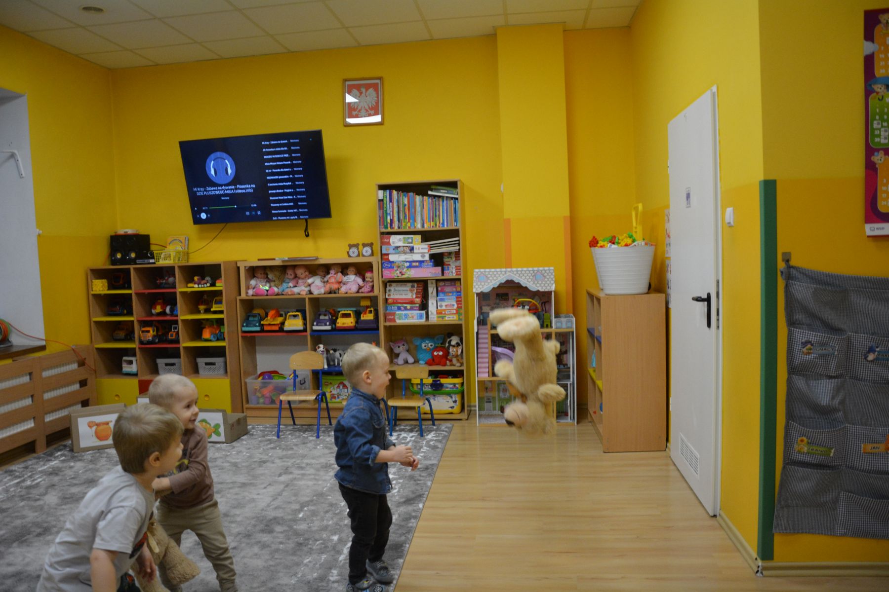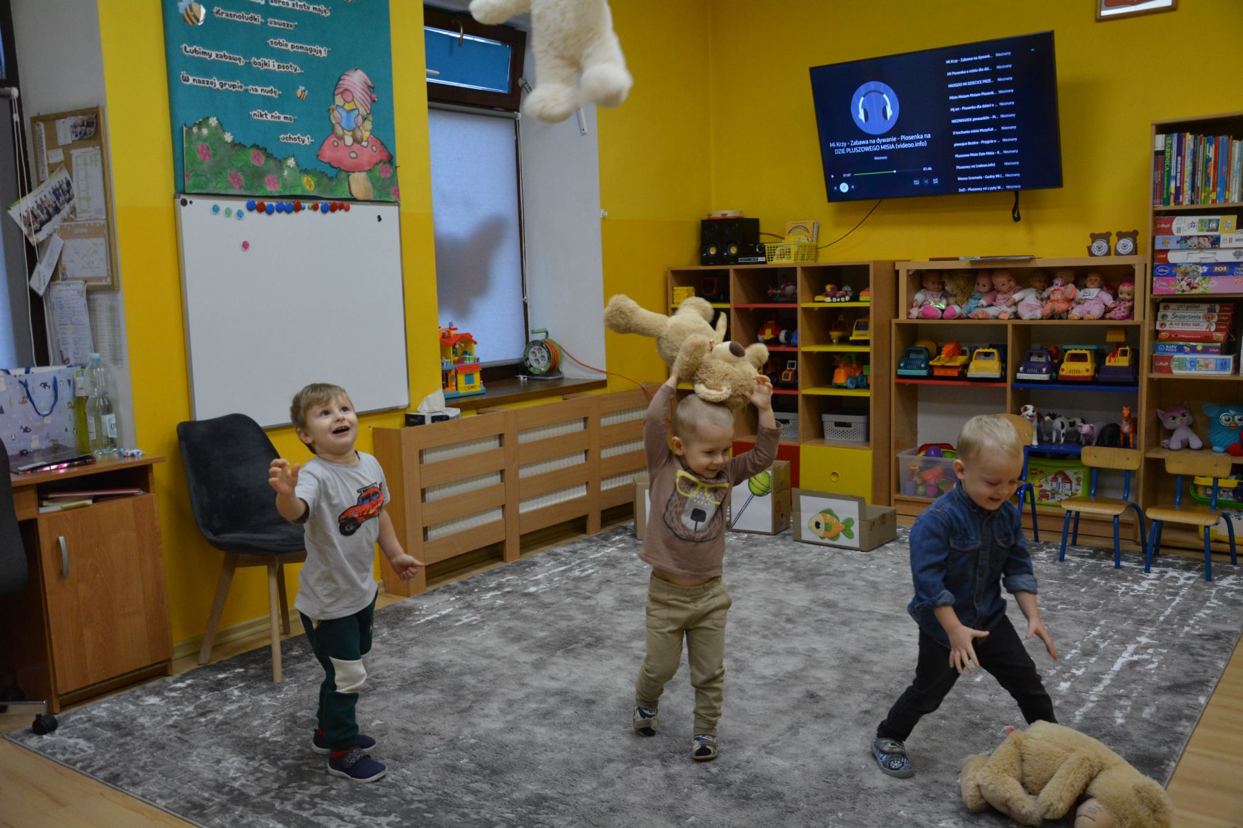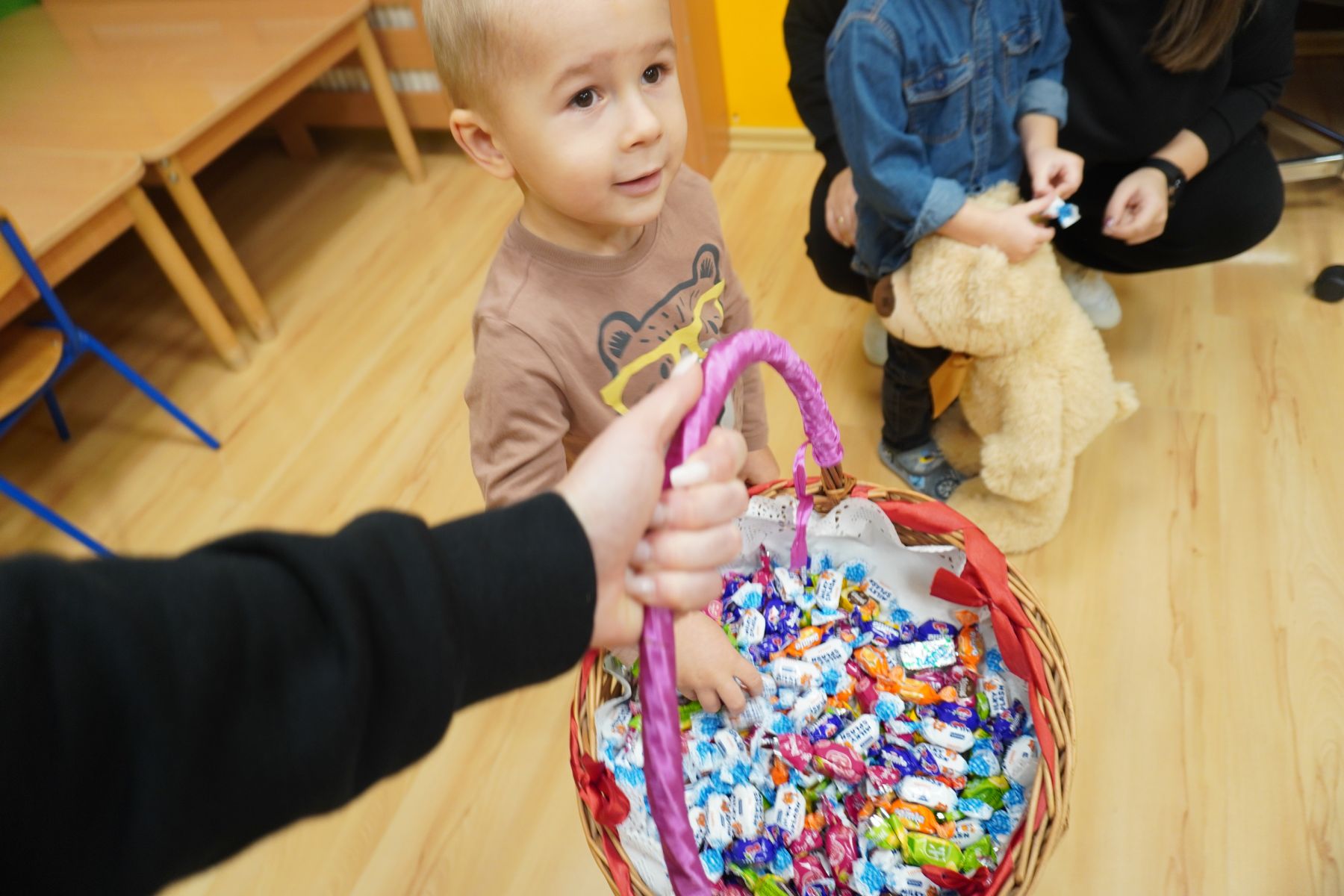 Największą atrakcją dnia były odwiedziny Pana Misia, który pojawił się niespodziewanie, wzbudzając ogromną radość wśród dzieci. Pan Miś żartował, robił zabawne sztuczki i tańczył razem z przedszkolakami. Dzieci śmiały się do łez, a ich entuzjazm udzielił się wszystkim obecnym.