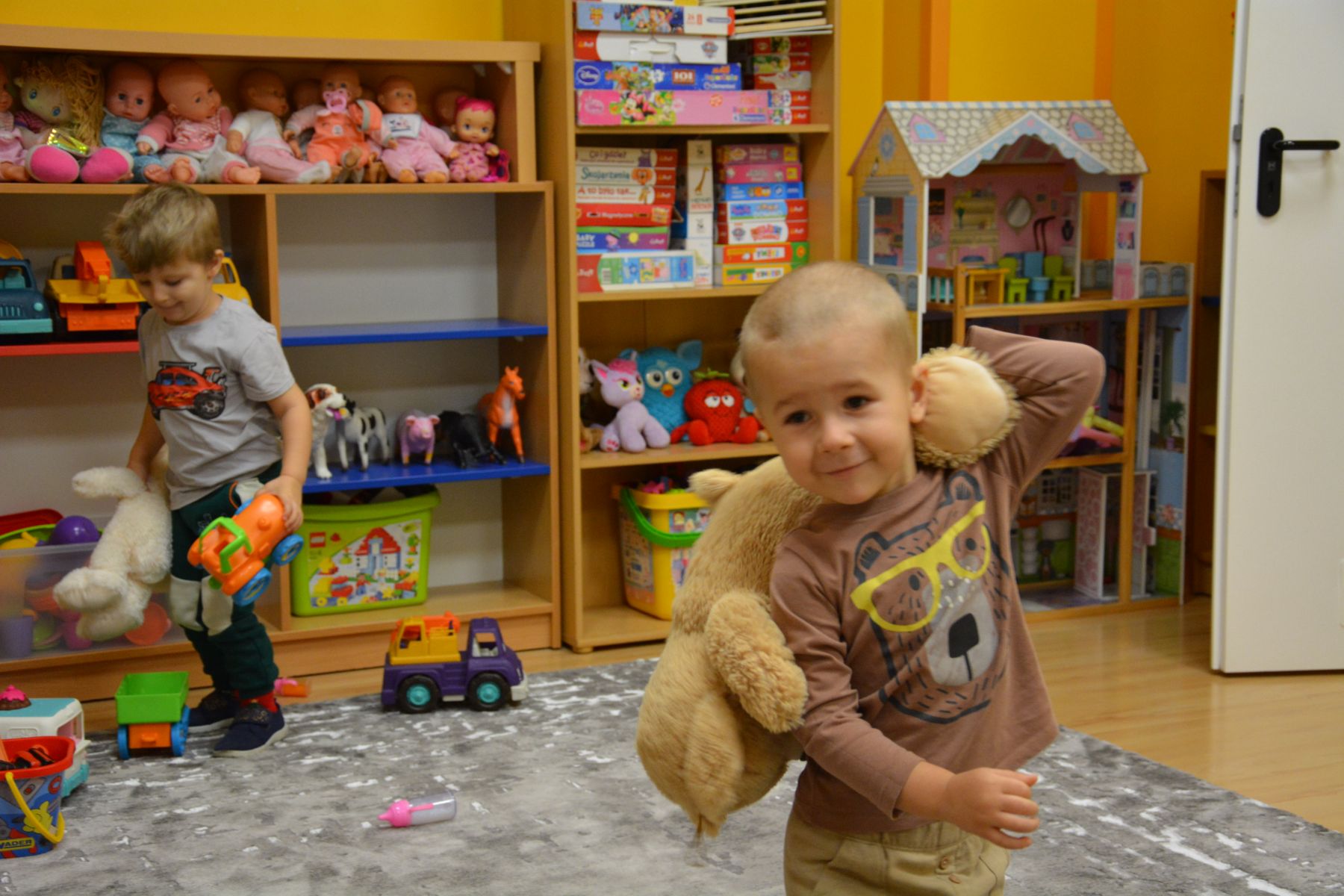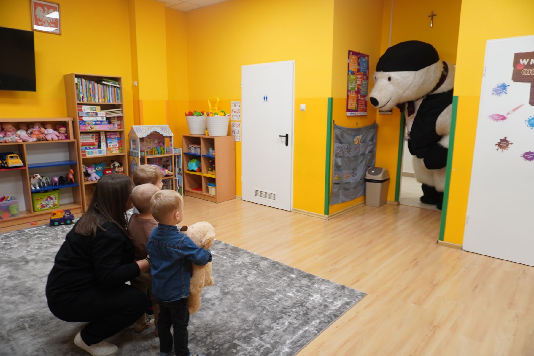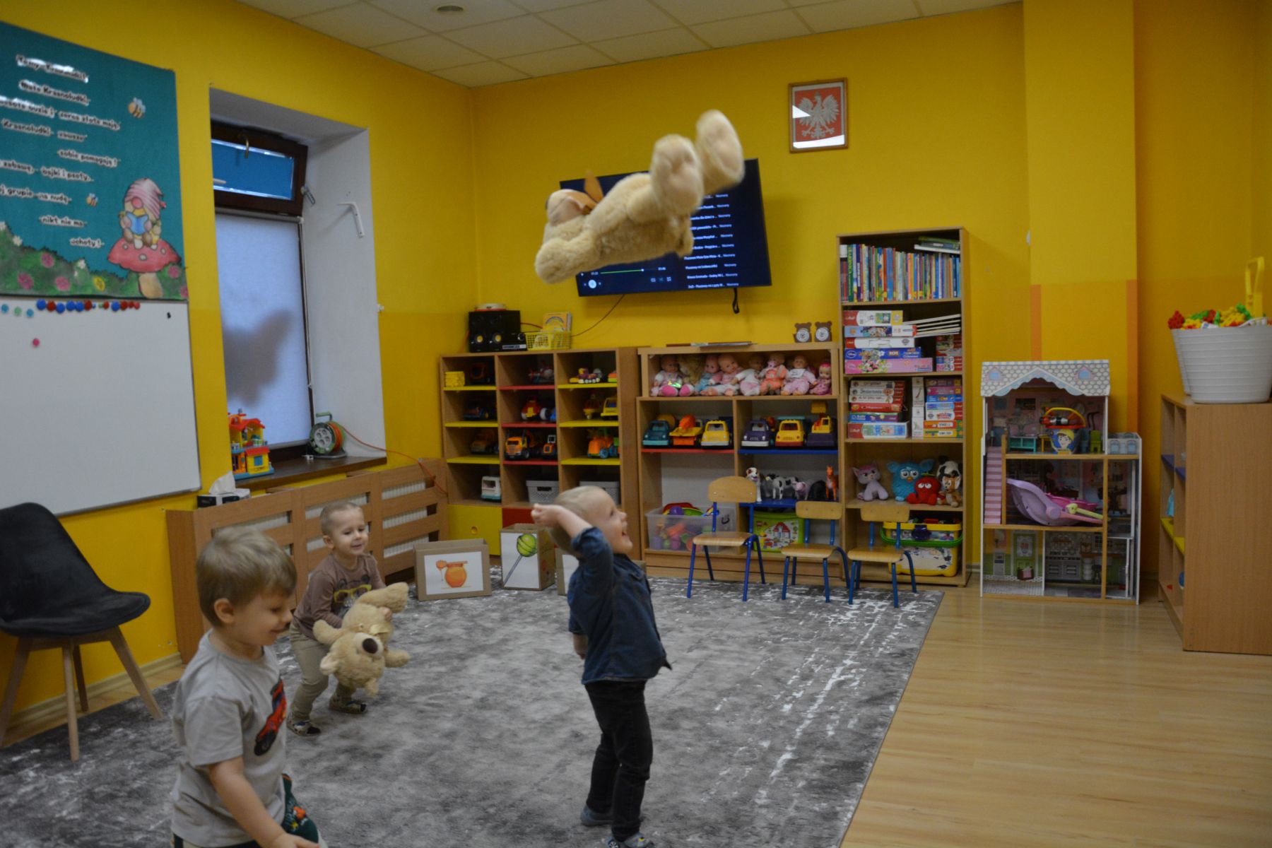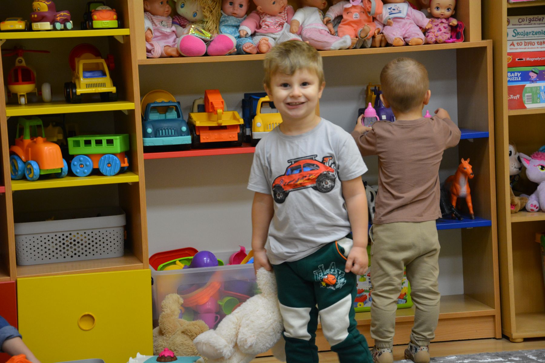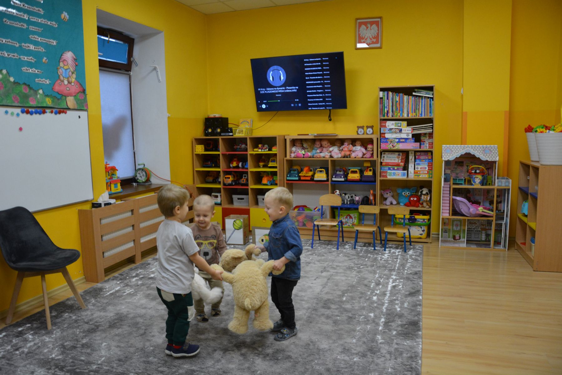 Największą atrakcją dnia były odwiedziny Pana Misia, który pojawił się niespodziewanie, wzbudzając ogromną radość wśród dzieci. Pan Miś żartował, robił zabawne sztuczki i tańczył razem z przedszkolakami. Dzieci śmiały się do łez, a ich entuzjazm udzielił się wszystkim obecnym.