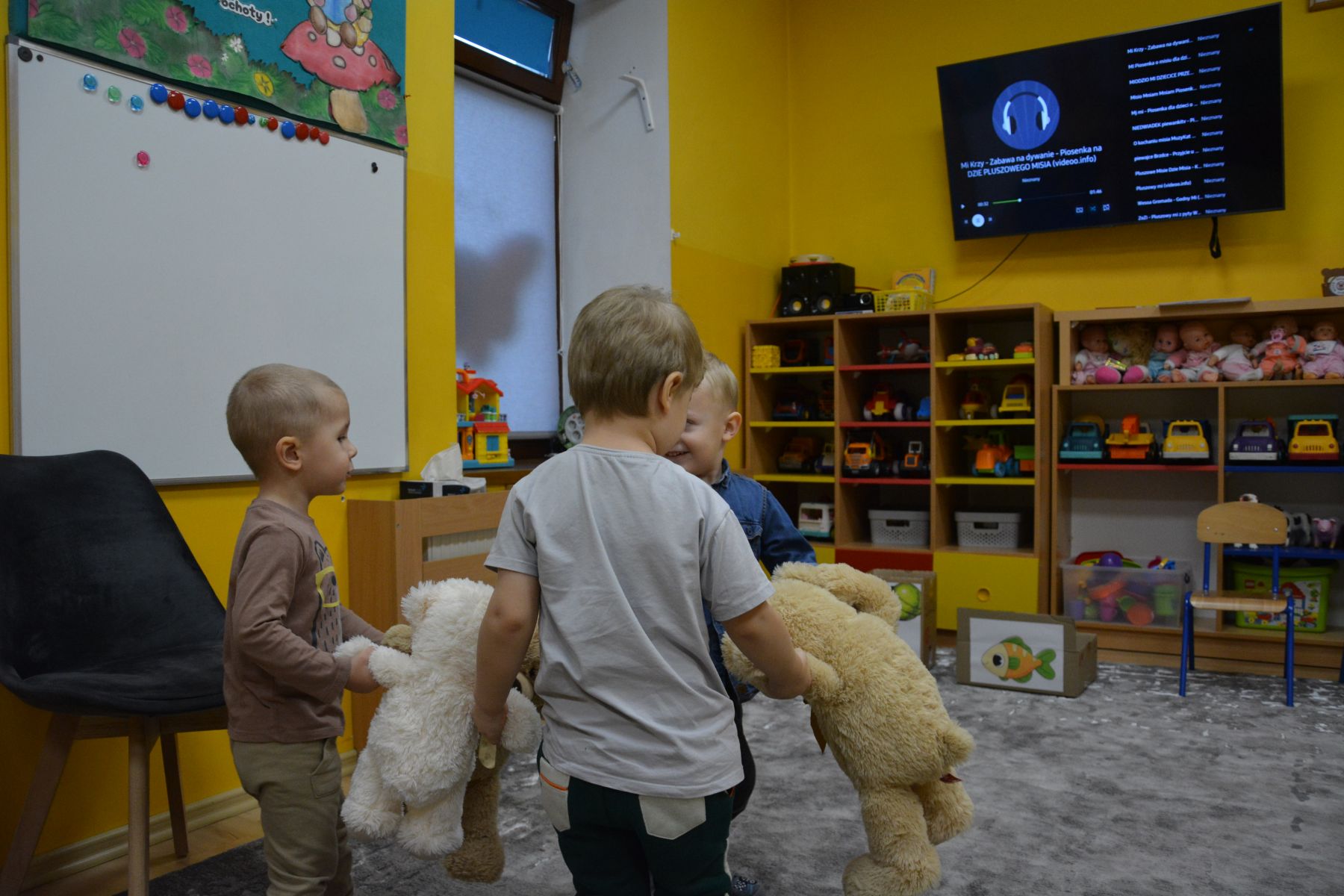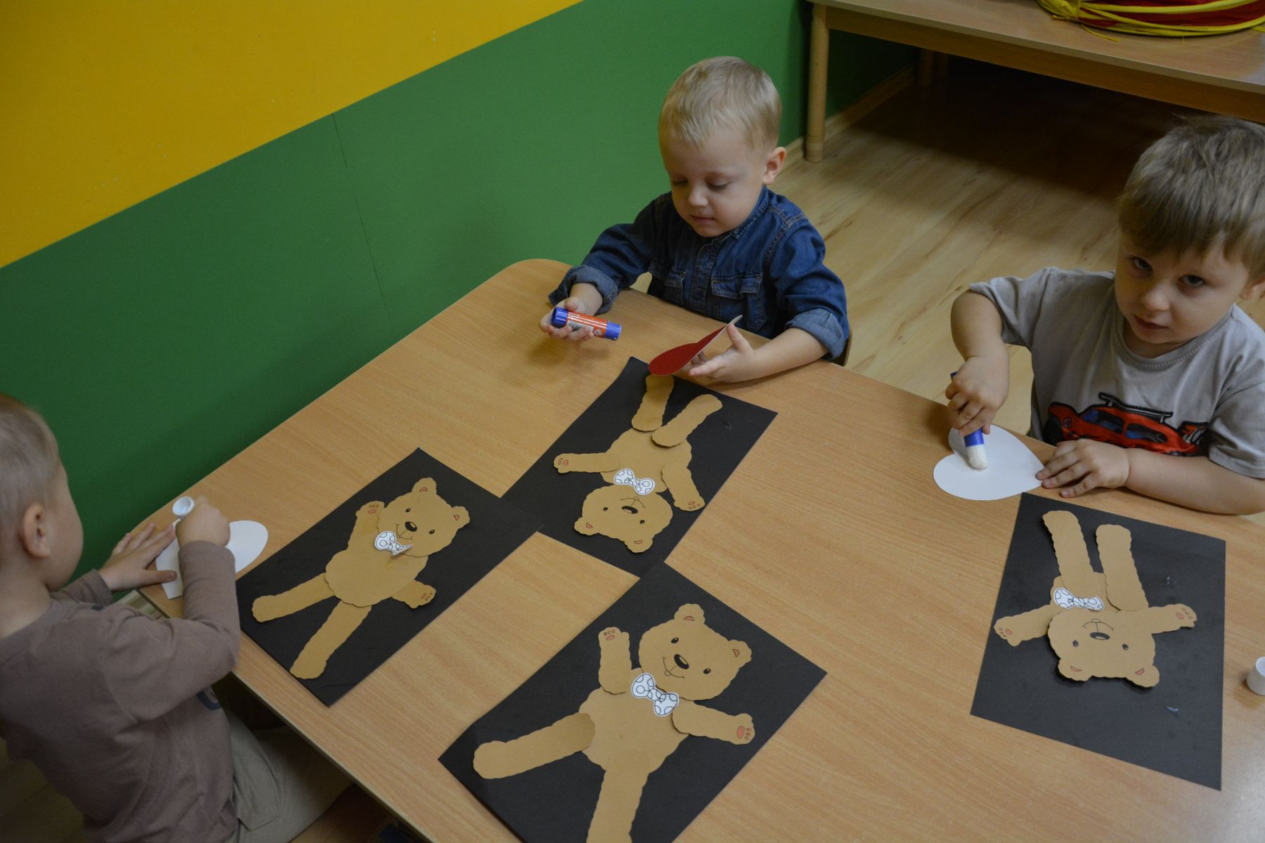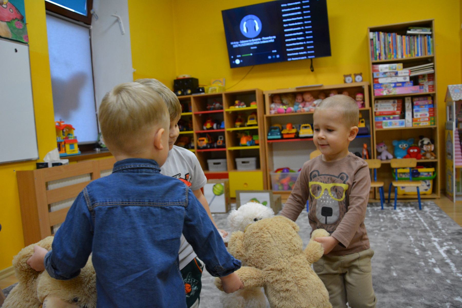 Przedszkolaki uczestniczyły w różnorodnych zajęciach plastycznych – malowały, wyklejały i tworzyły własne portrety misiów. Kolorowe prace ozdobiły przedszkolne korytarze, wprowadzając jeszcze więcej ciepła i uśmiechu. Nie zabrakło też wspólnych tańców, piosenek i zagadek o misiach.
