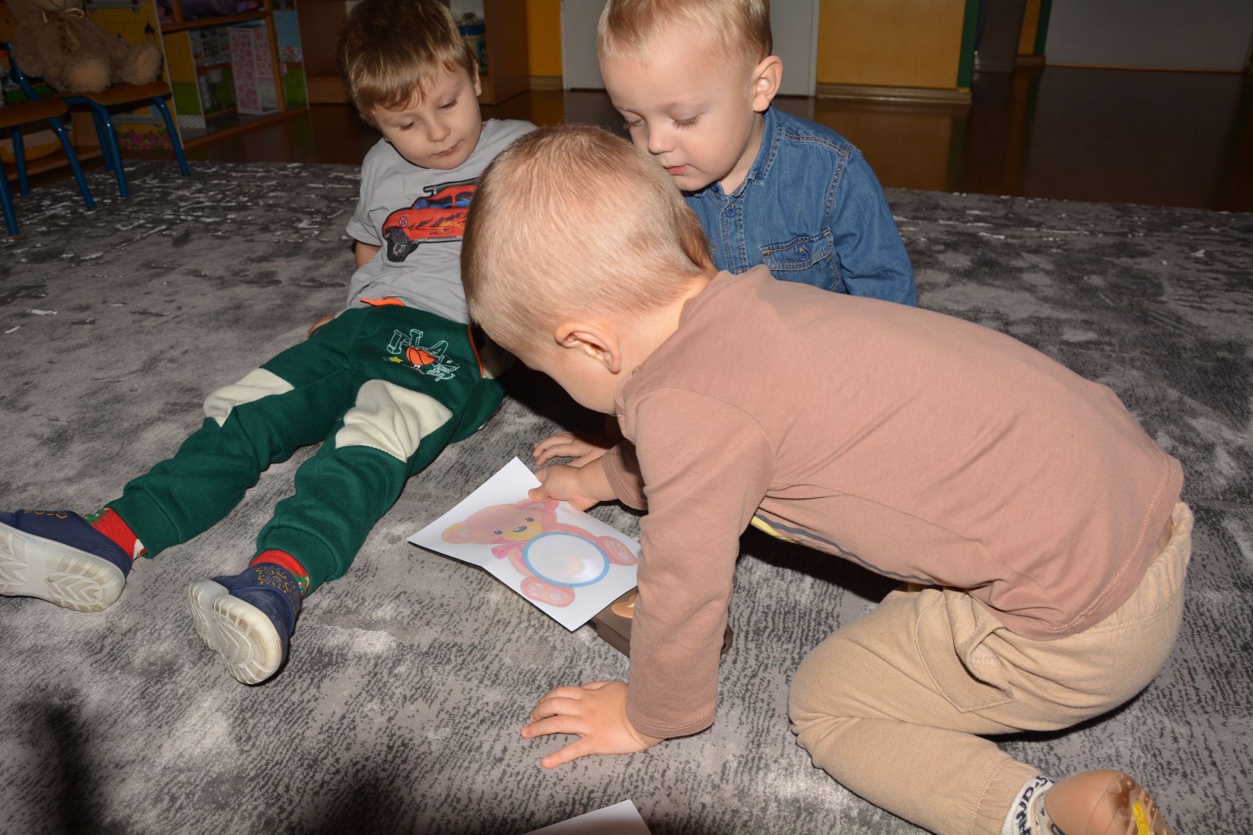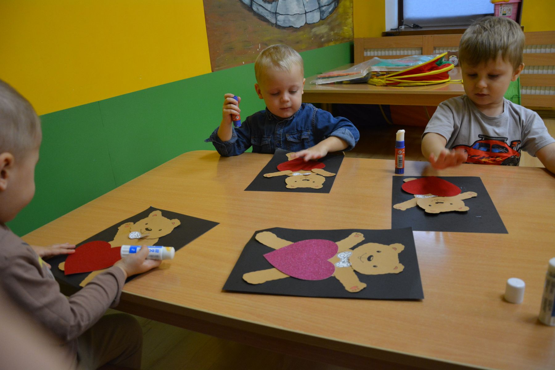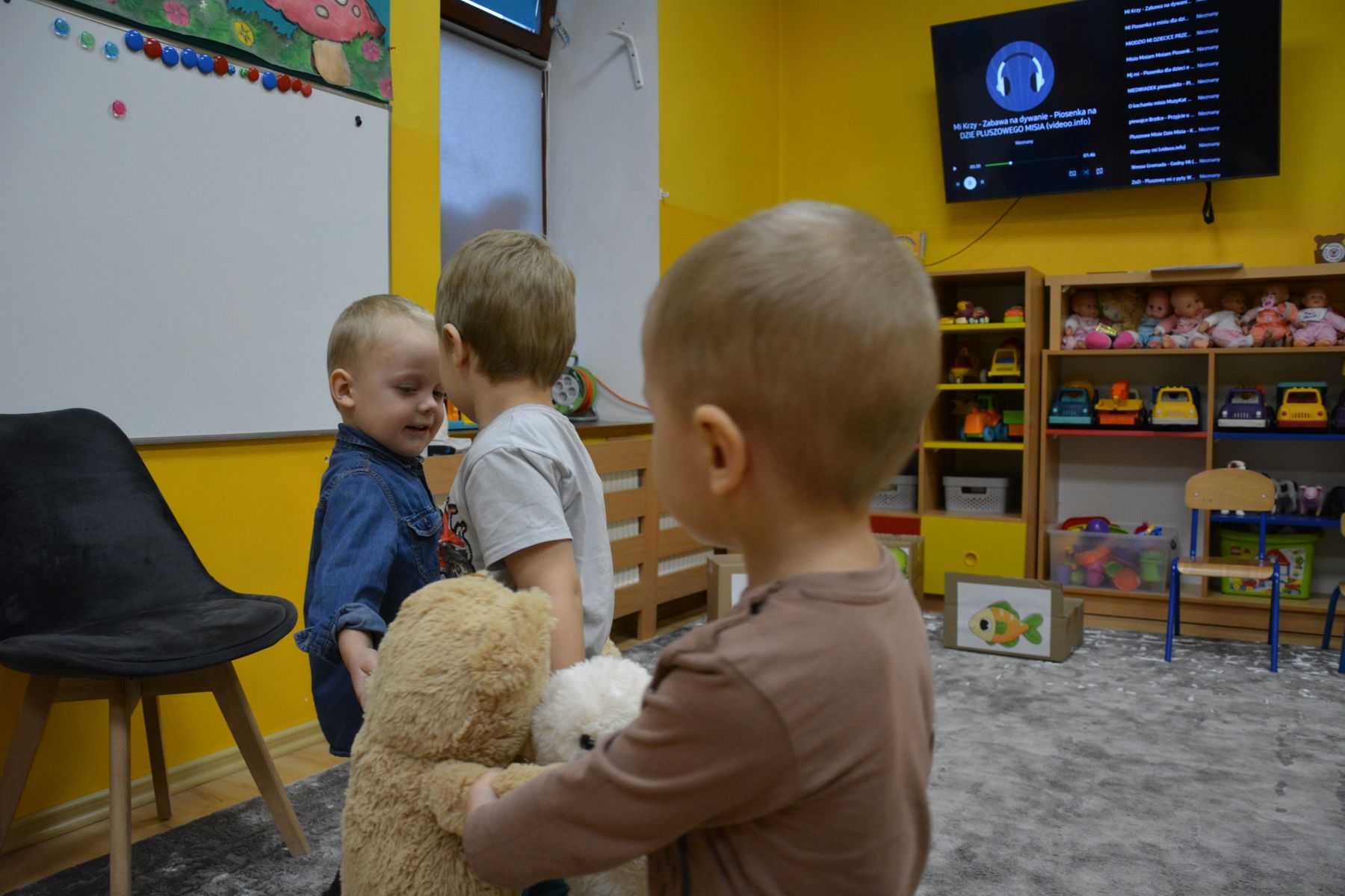 Przedszkolaki uczestniczyły w różnorodnych zajęciach plastycznych – malowały, wyklejały i tworzyły własne portrety misiów. Kolorowe prace ozdobiły przedszkolne korytarze, wprowadzając jeszcze więcej ciepła i uśmiechu. Nie zabrakło też wspólnych tańców, piosenek i zagadek o misiach.