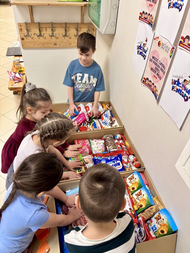 Serdeczne podziękowania należą się wszystkim rodzicom, którzy wsparli akcję, przynosząc dary i zachęcając dzieci do udziału. Dzięki wspólnemu zaangażowaniu udało się stworzyć coś naprawdę wyjątkowego – atmosferę empatii, współpracy i radości z pomagania.