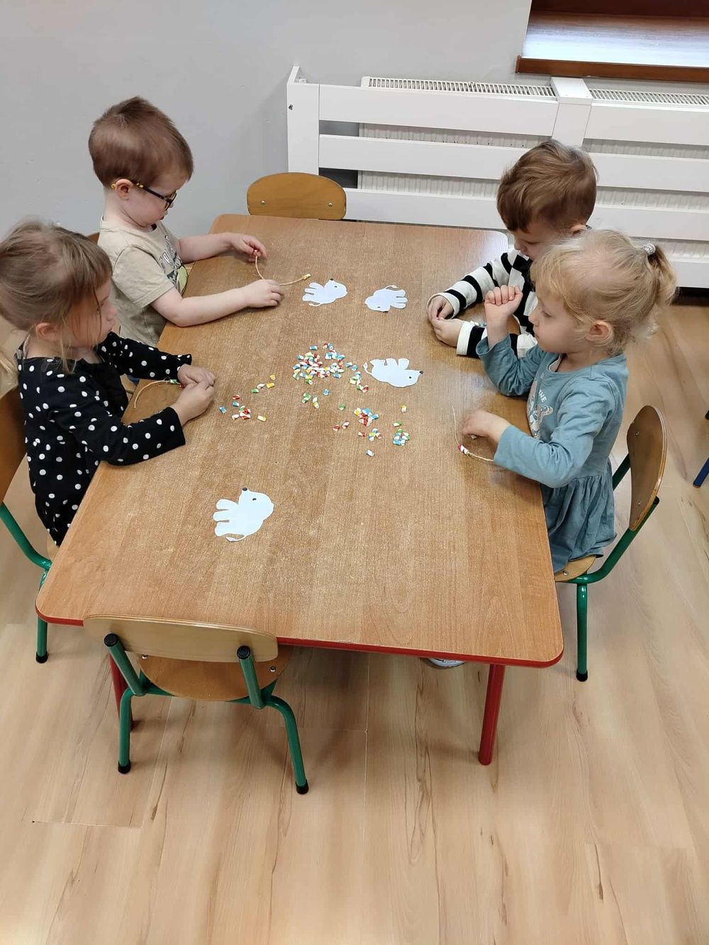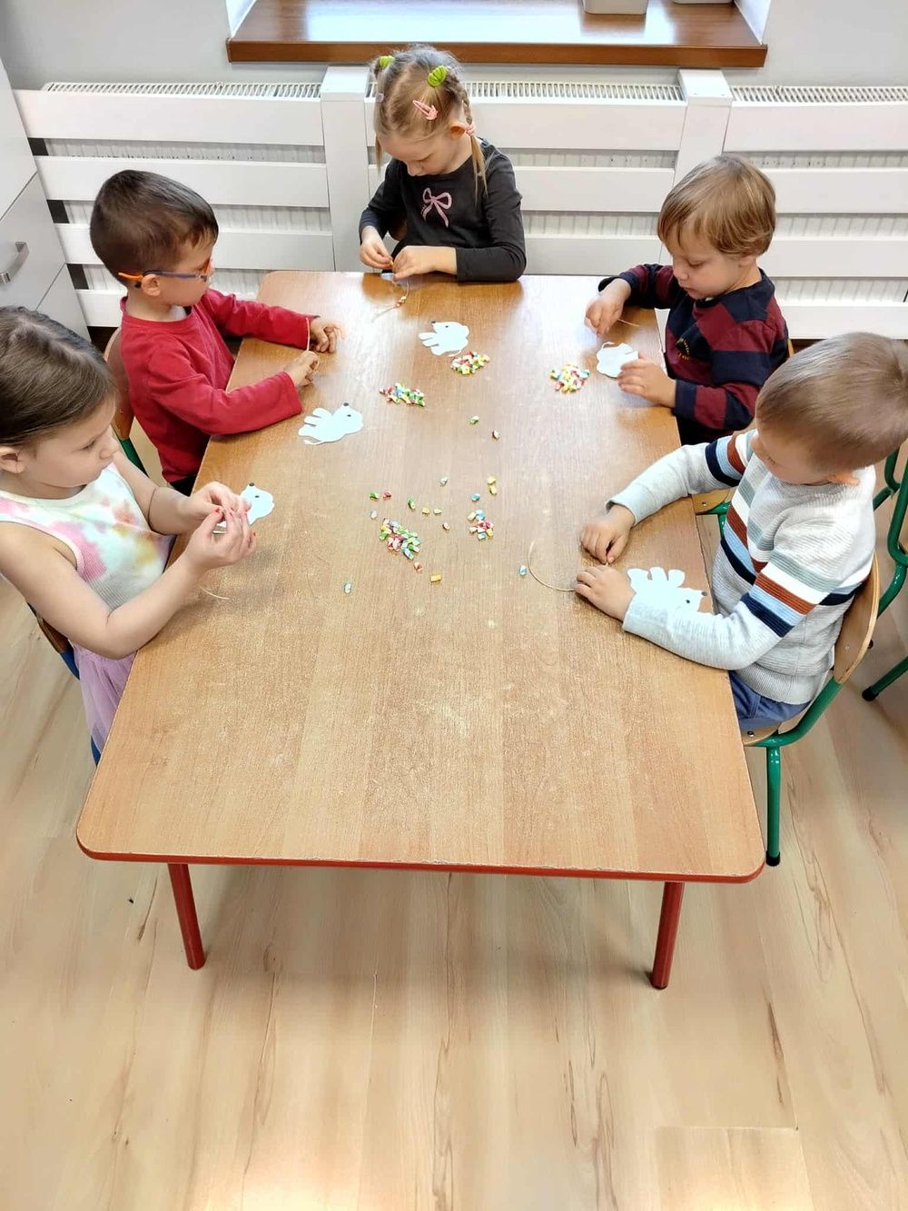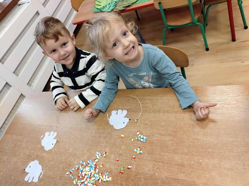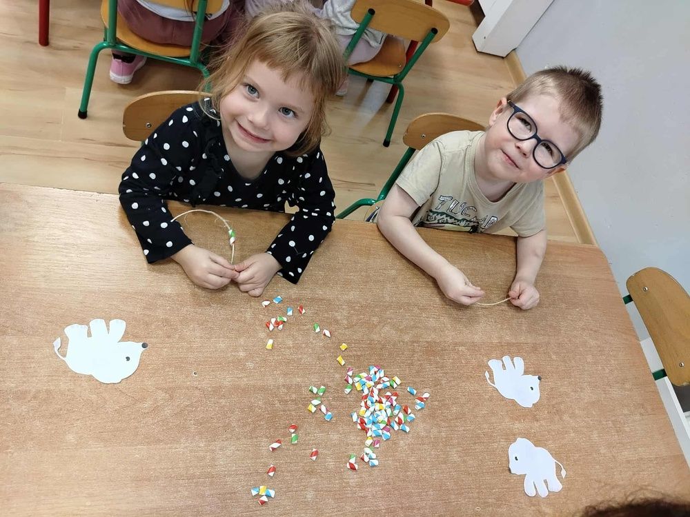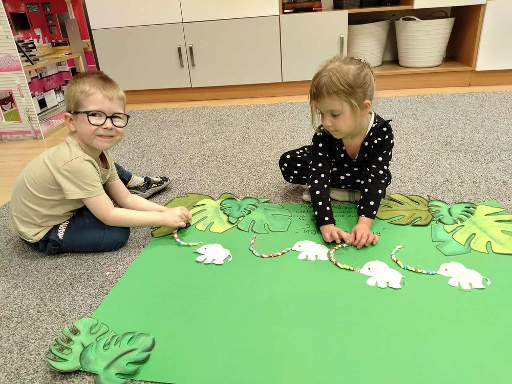 Co dzieci musiały zrobić? : zadaniem dzieci było nawlekanie kawałków pociętej plastikowej słomki na sznurek, która utworzy trąbę słonia.