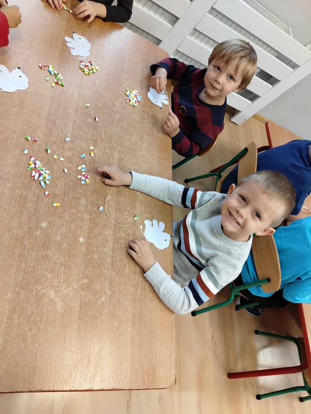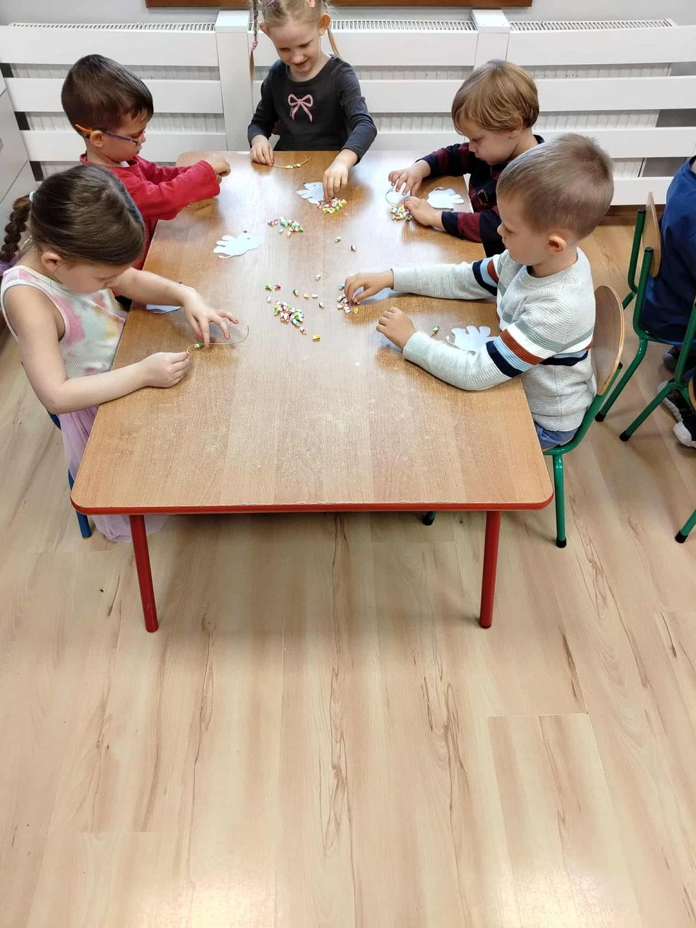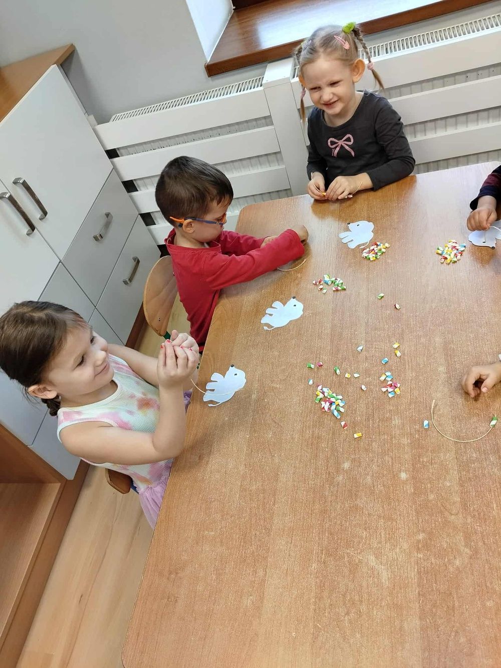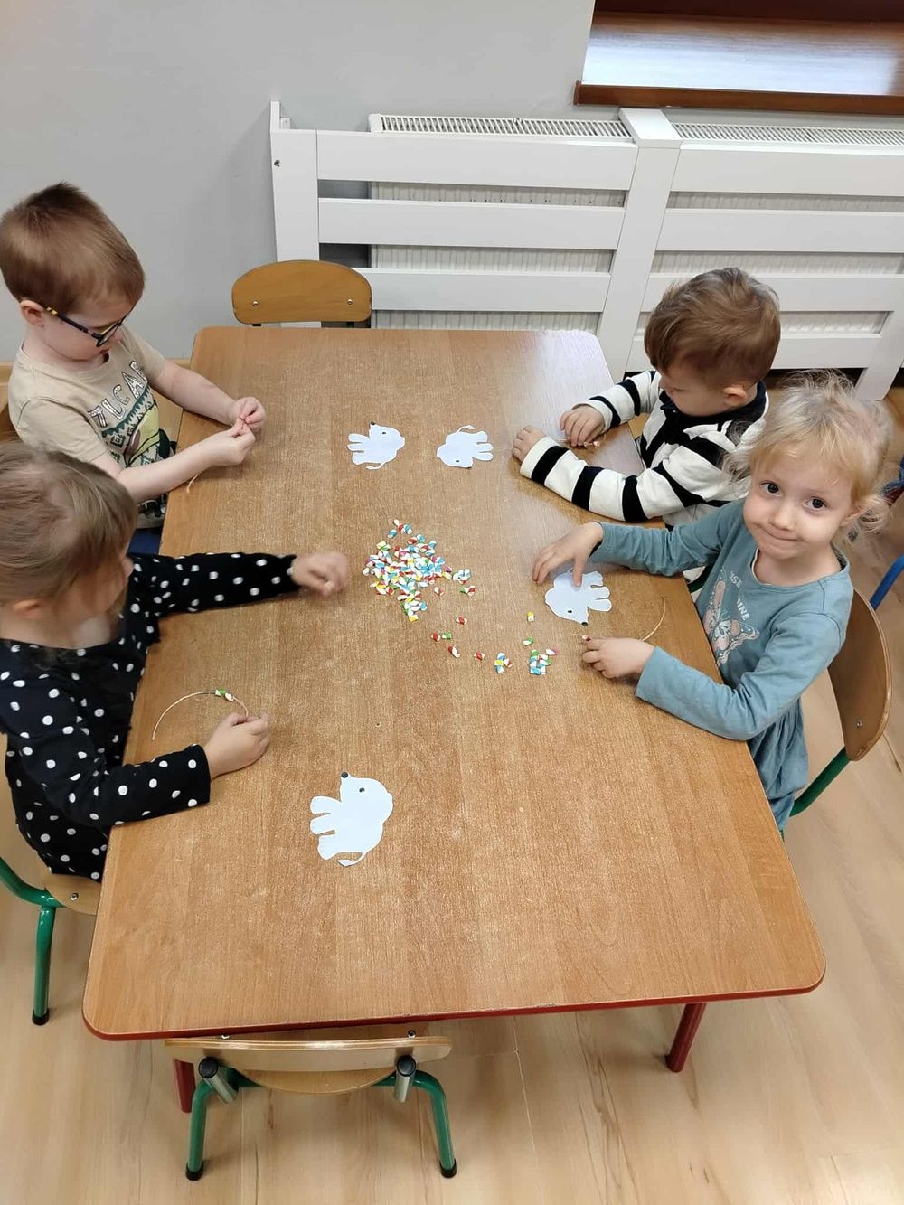 Co dzieci musiały zrobić? : zadaniem dzieci było nawlekanie kawałków pociętej plastikowej słomki na sznurek, która utworzy trąbę słonia.