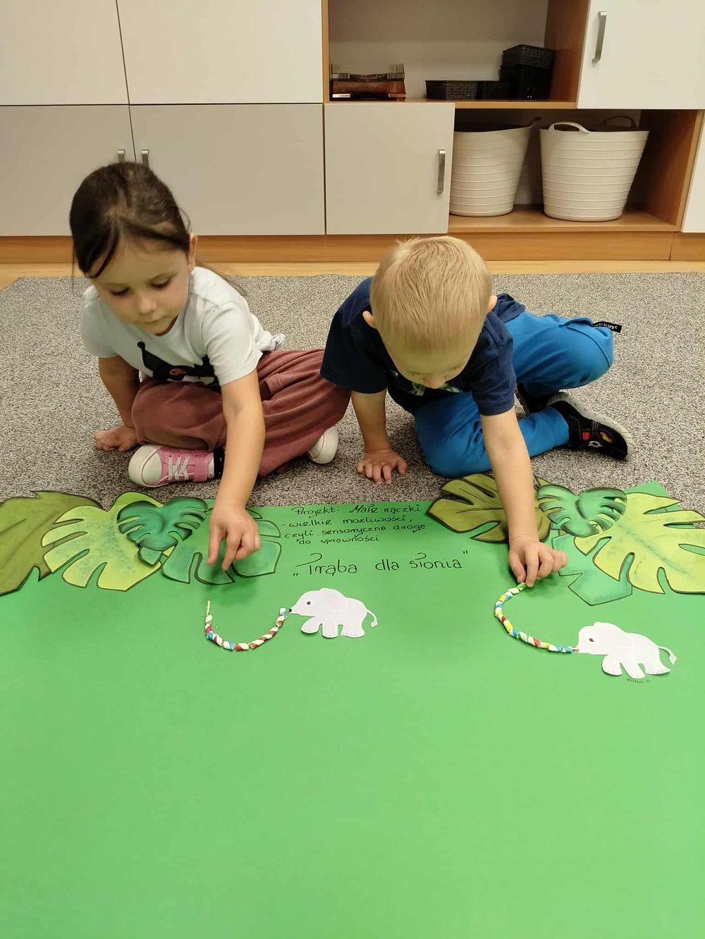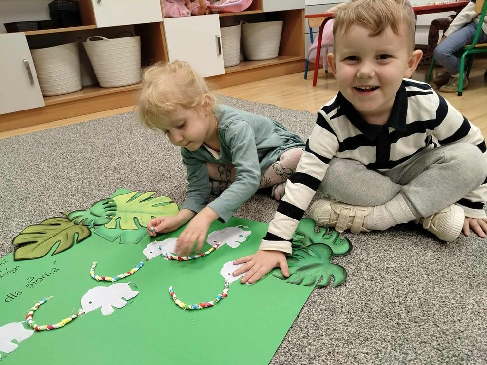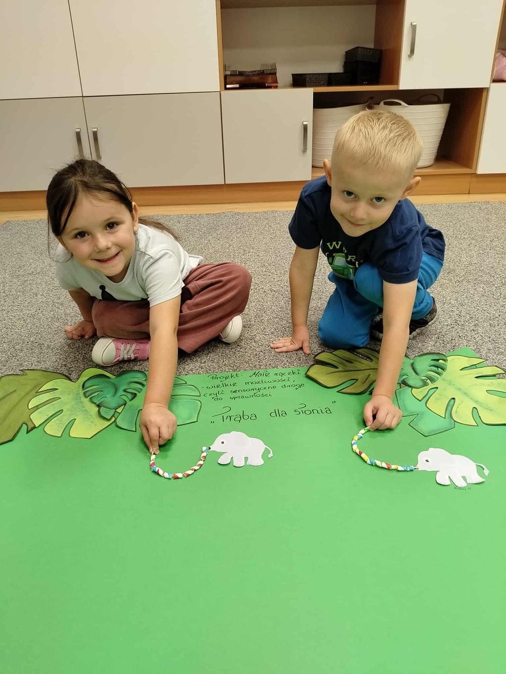 Zadanie "Trąba dla słonia" z projektu :“MAŁE RĄCZKI -WIELKIE MOŻLIWOŚCI,CZYLI SENSORYCZNA DROGA DO SPRAWNOŚCI"