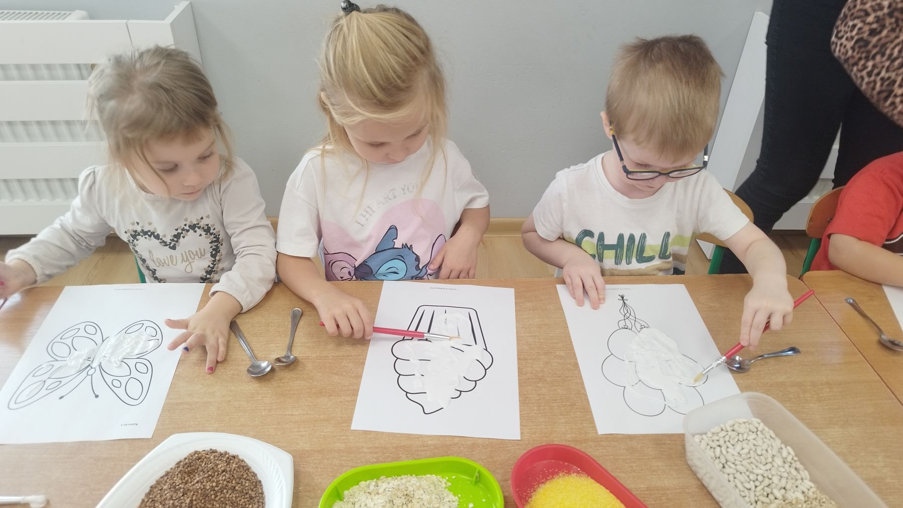 Zadanie z projektu : “MAŁE RĄCZKI-WIELKIE MOŻLIWOŚCI, CZYLI SENSORYCZNA DROGA DO SPRAWNOŚCI : Wysypywanki”