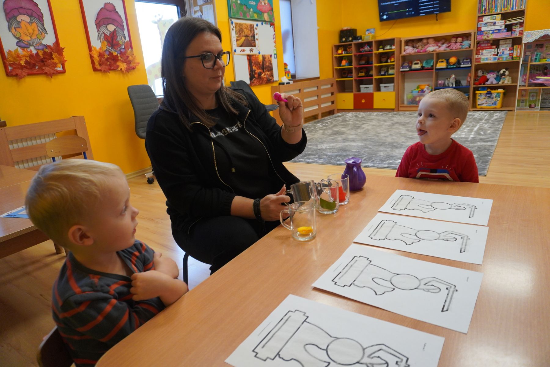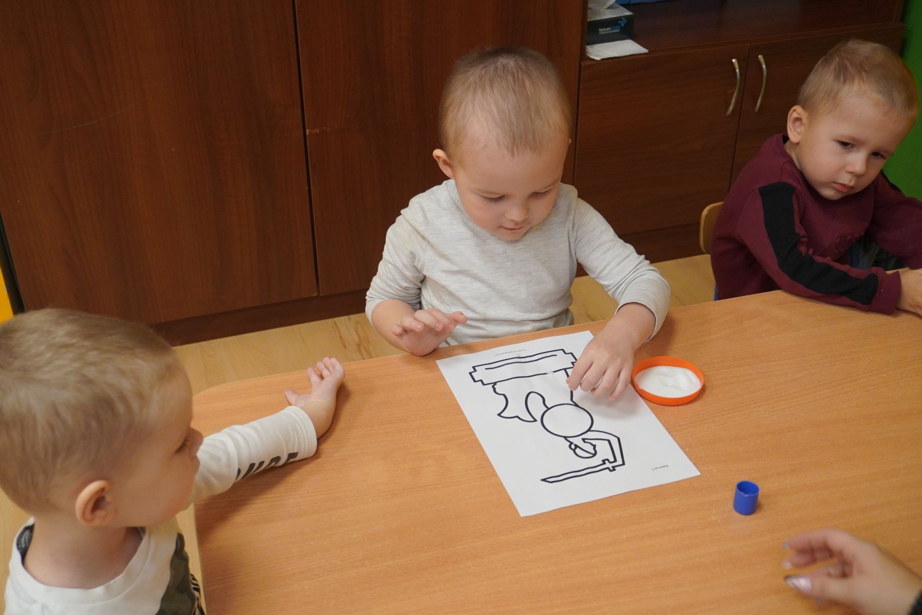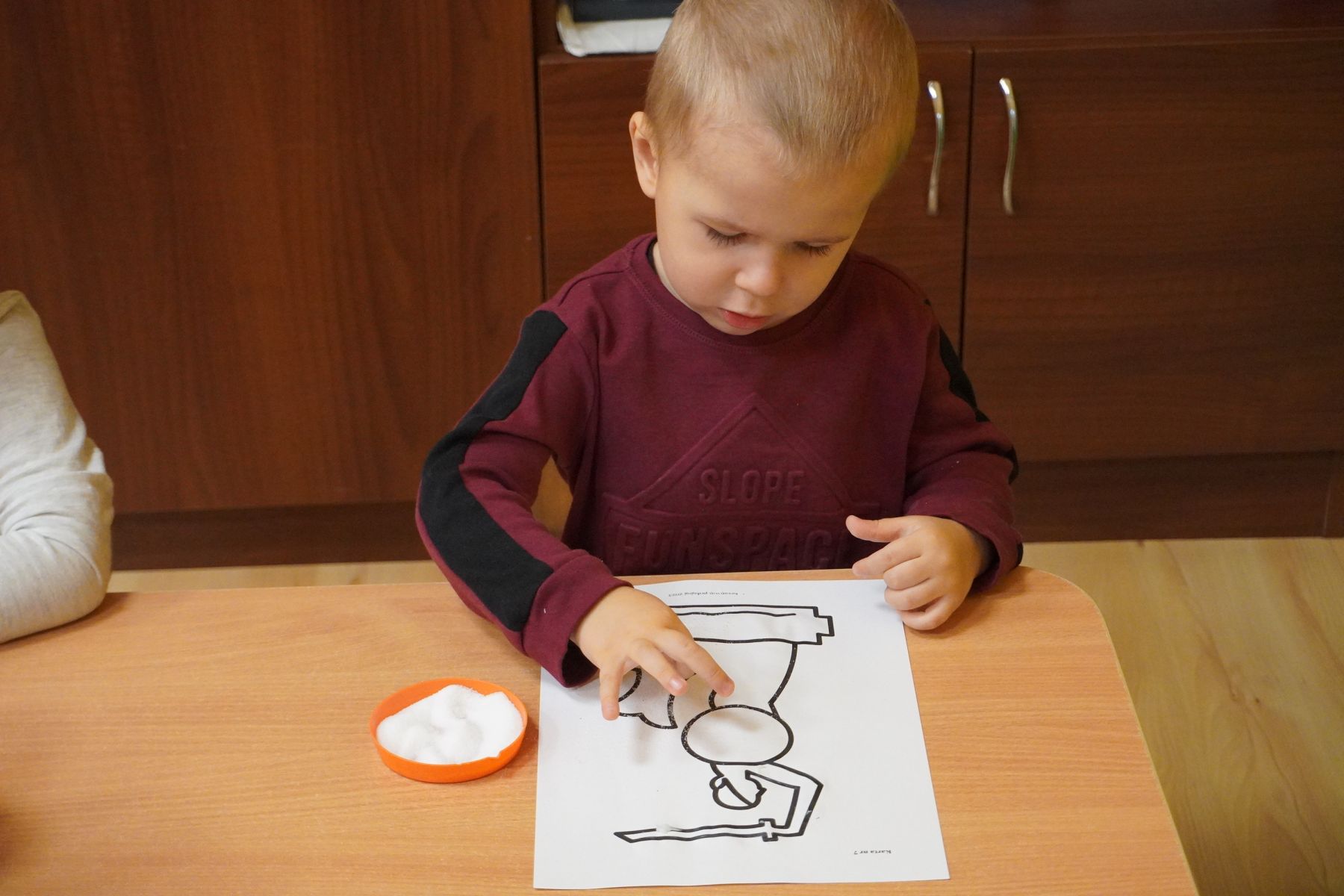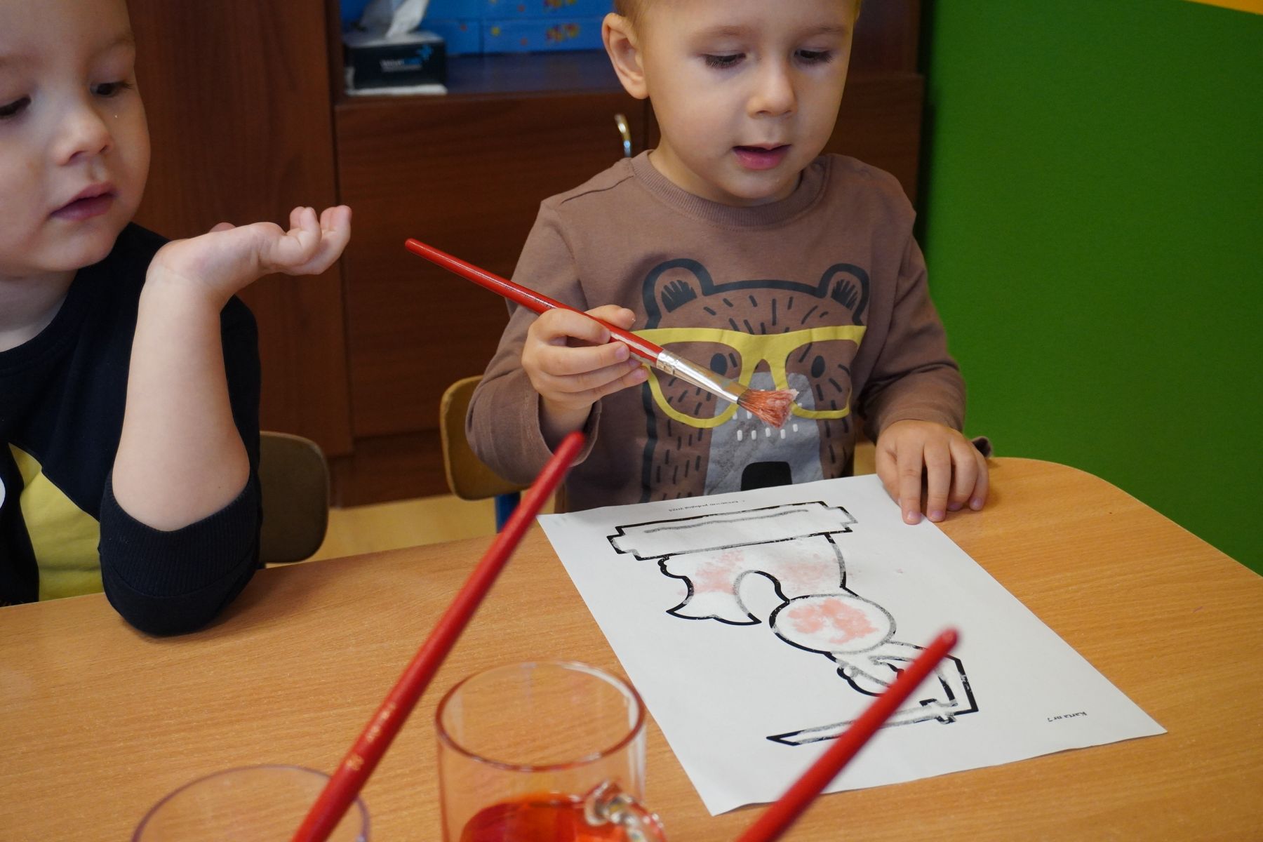 Zadaniem dzieci było obsypanie solą szablonu Syrenki Warszawskiej a następnie po wyschnięciu - pomalowanie jej farbami.
