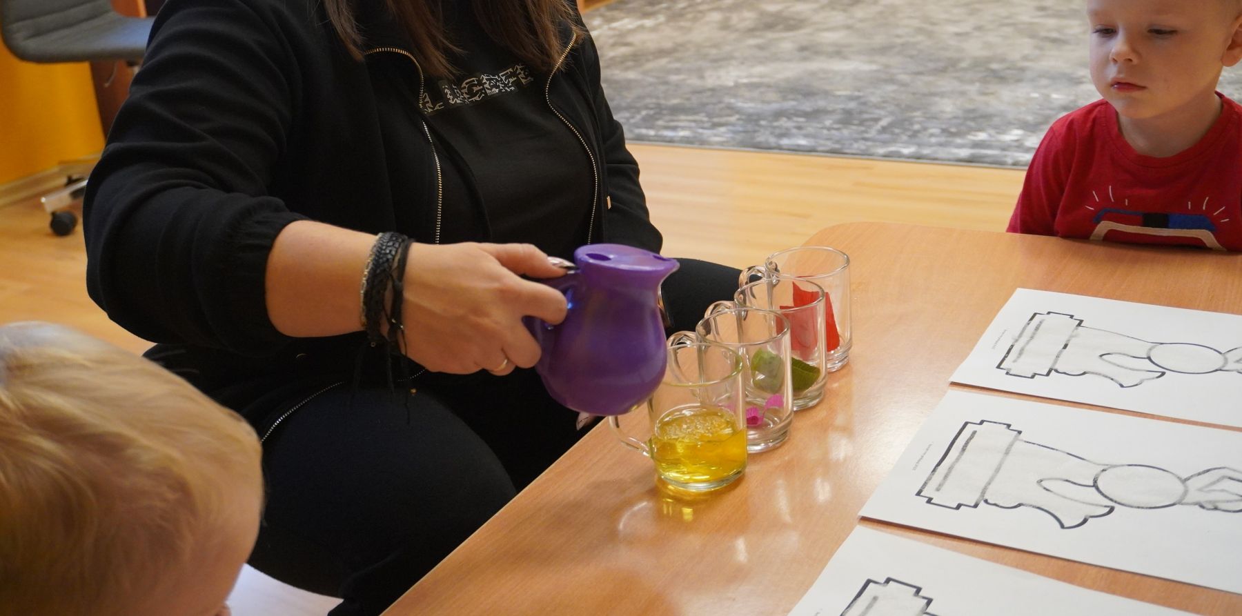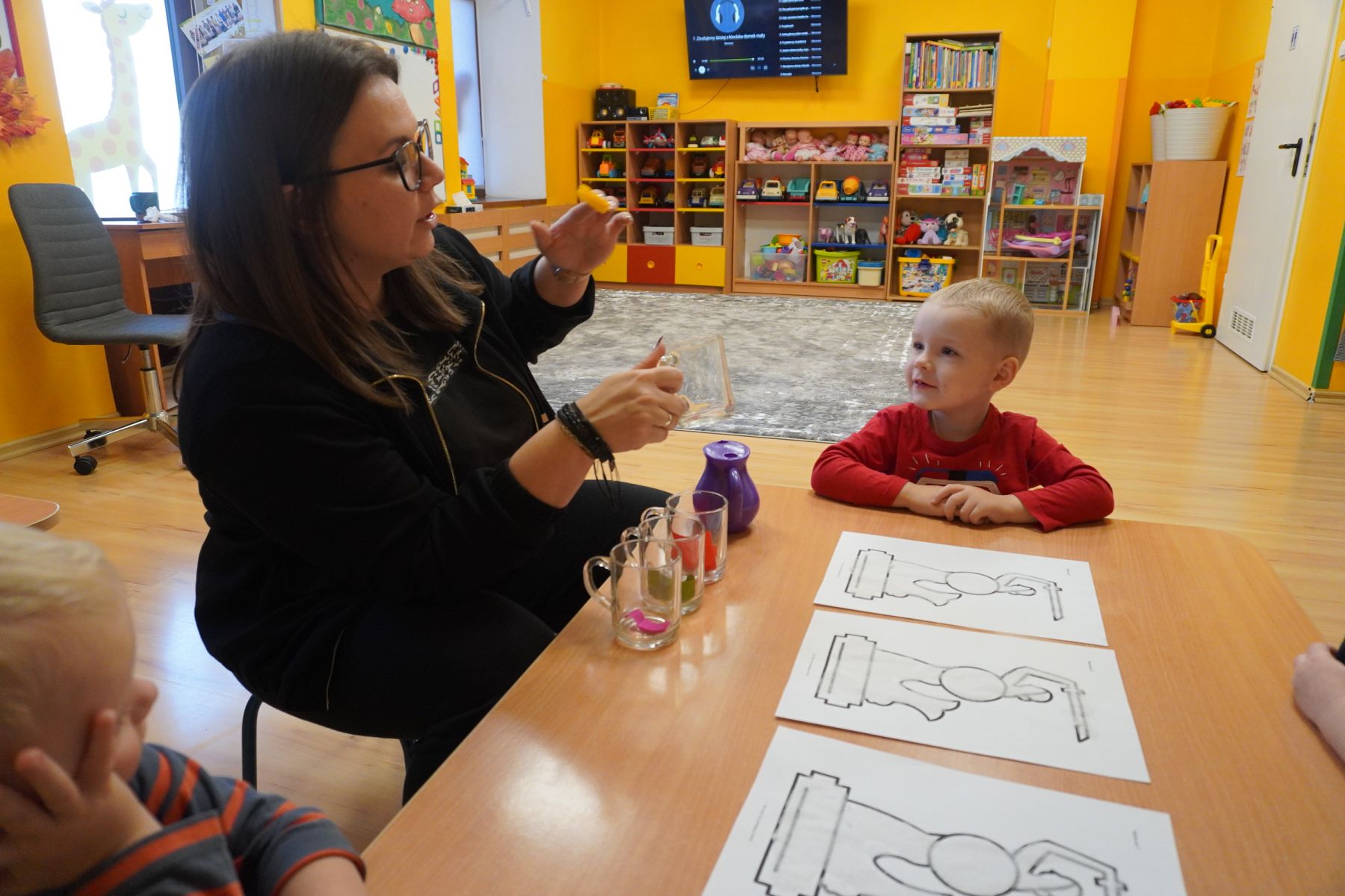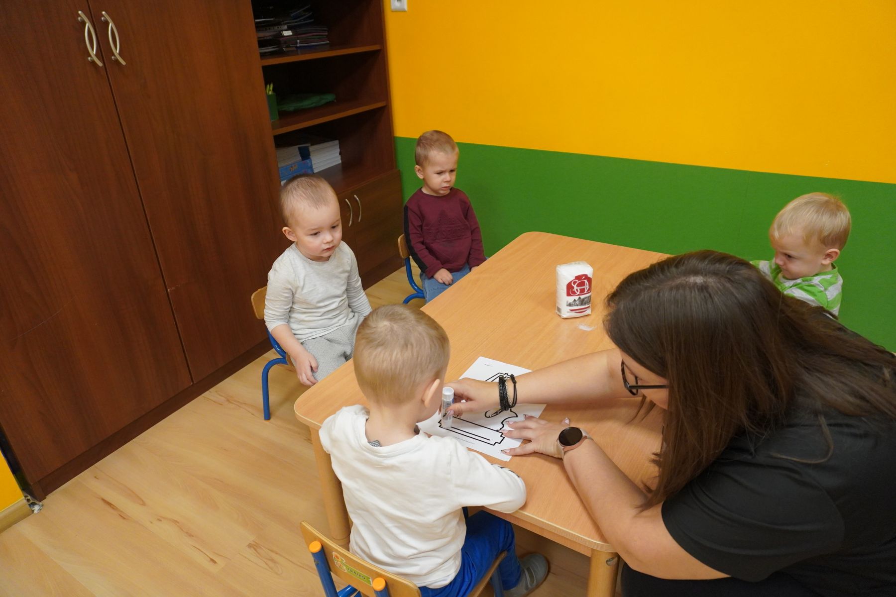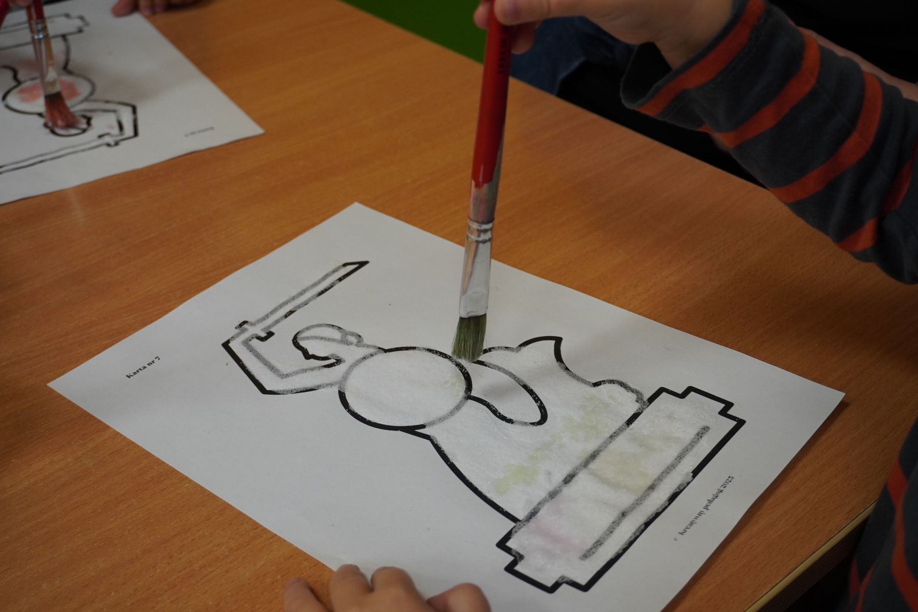 Zadaniem dzieci było obsypanie solą szablonu Syrenki Warszawskiej a następnie po wyschnięciu - pomalowanie jej farbami.