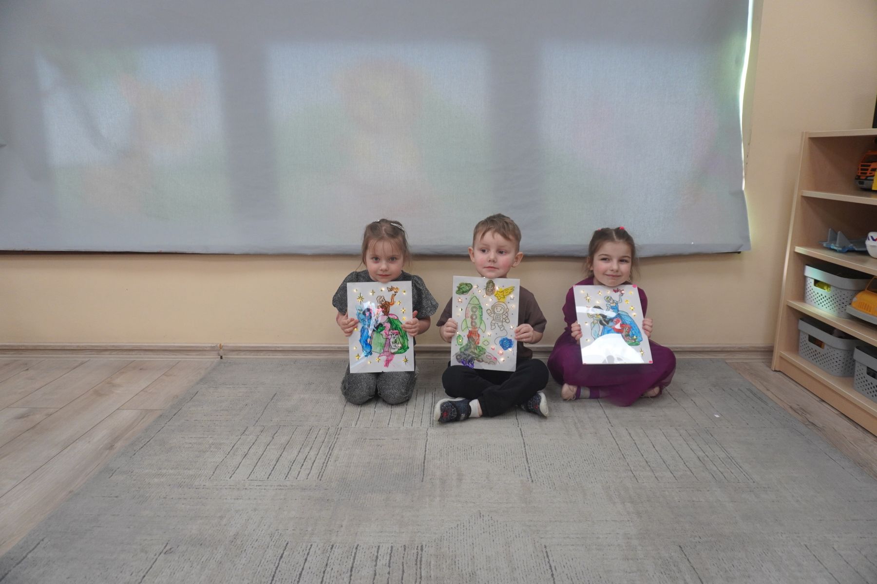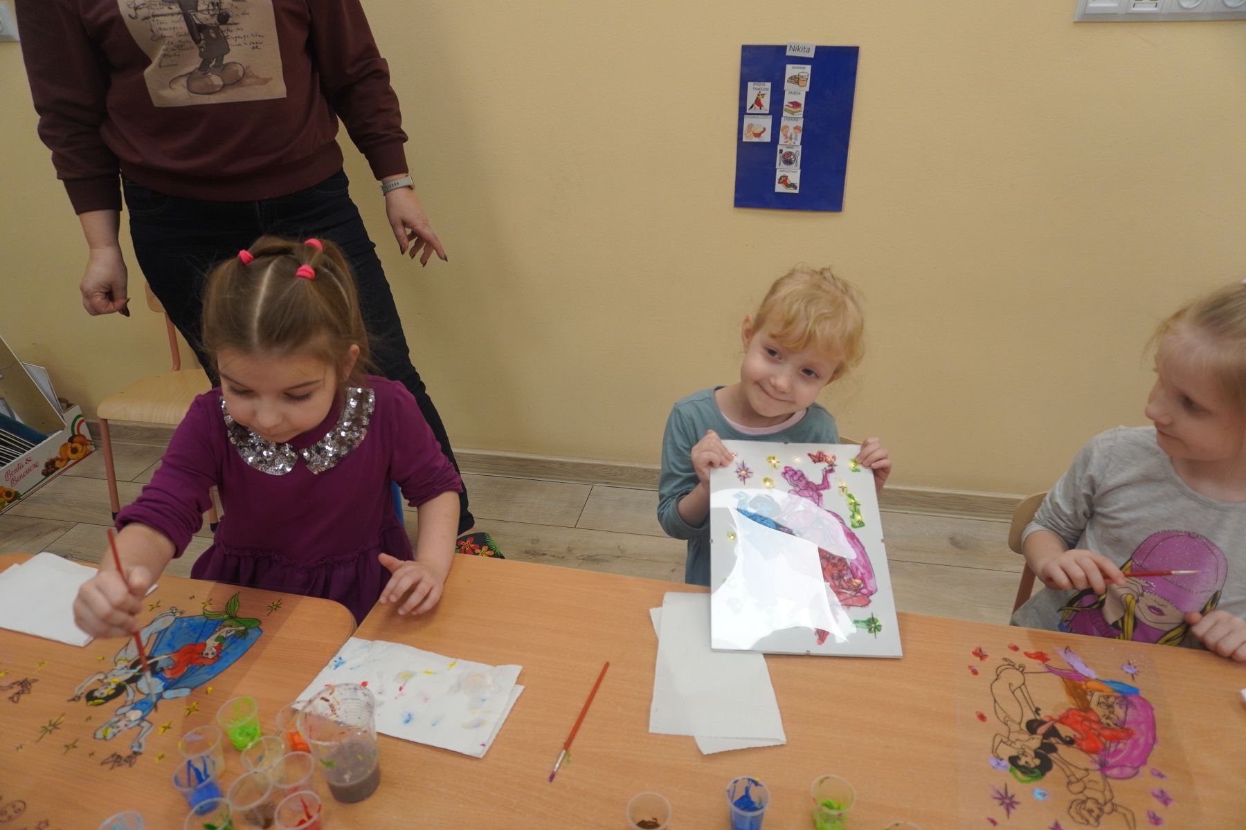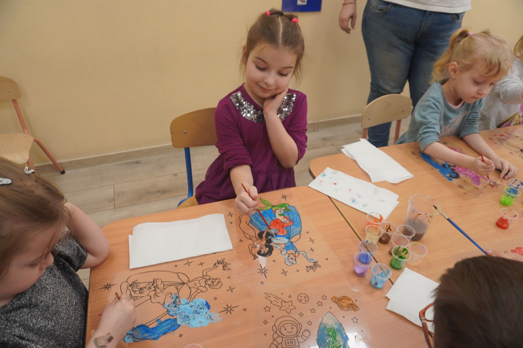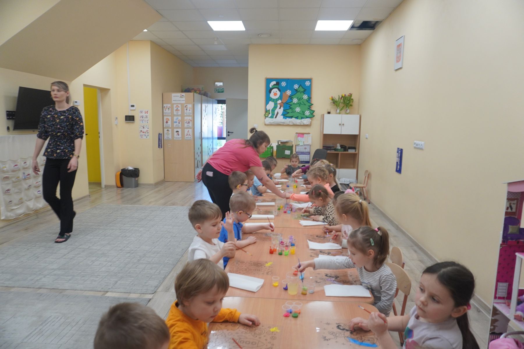 Radość dzieci była ogromna – z entuzjazmem mieszały barwy, eksperymentowały z kształtami i z dumą prezentowały swoje kolorowe obrazki.