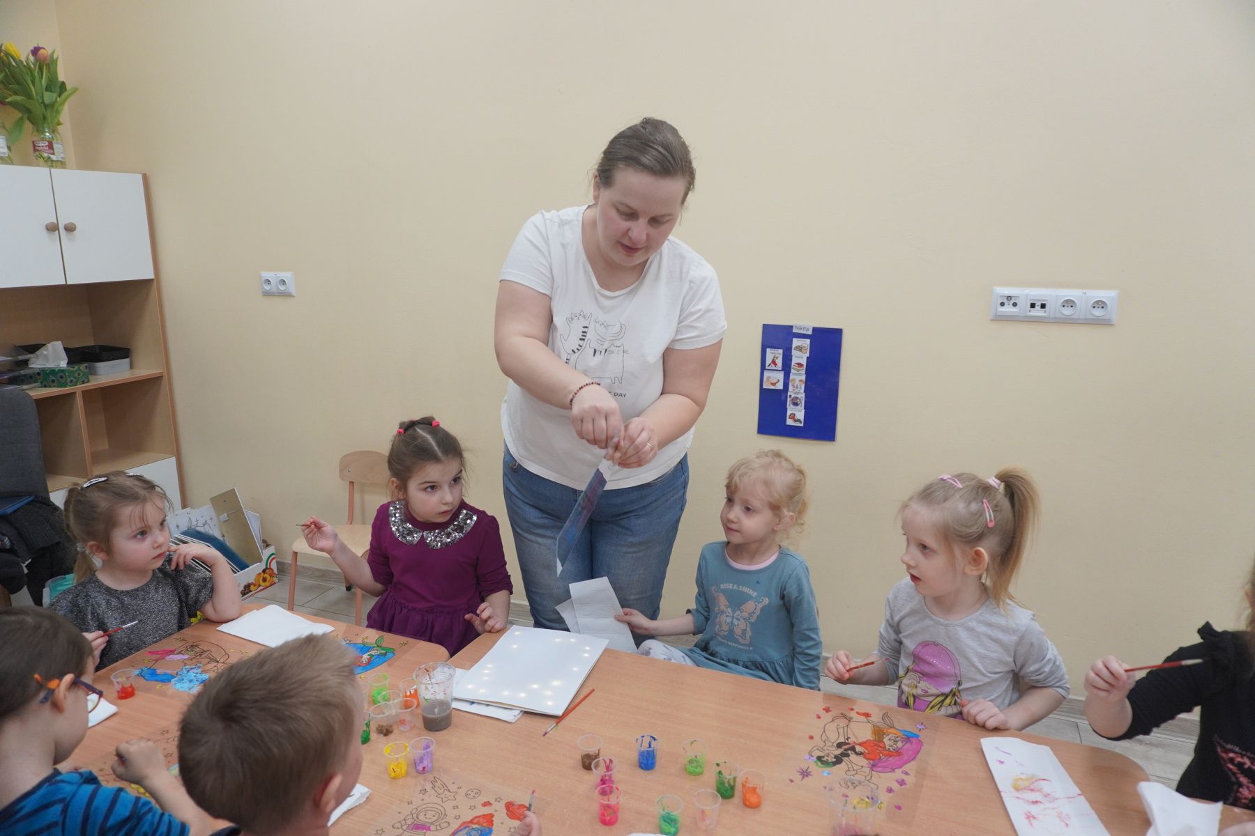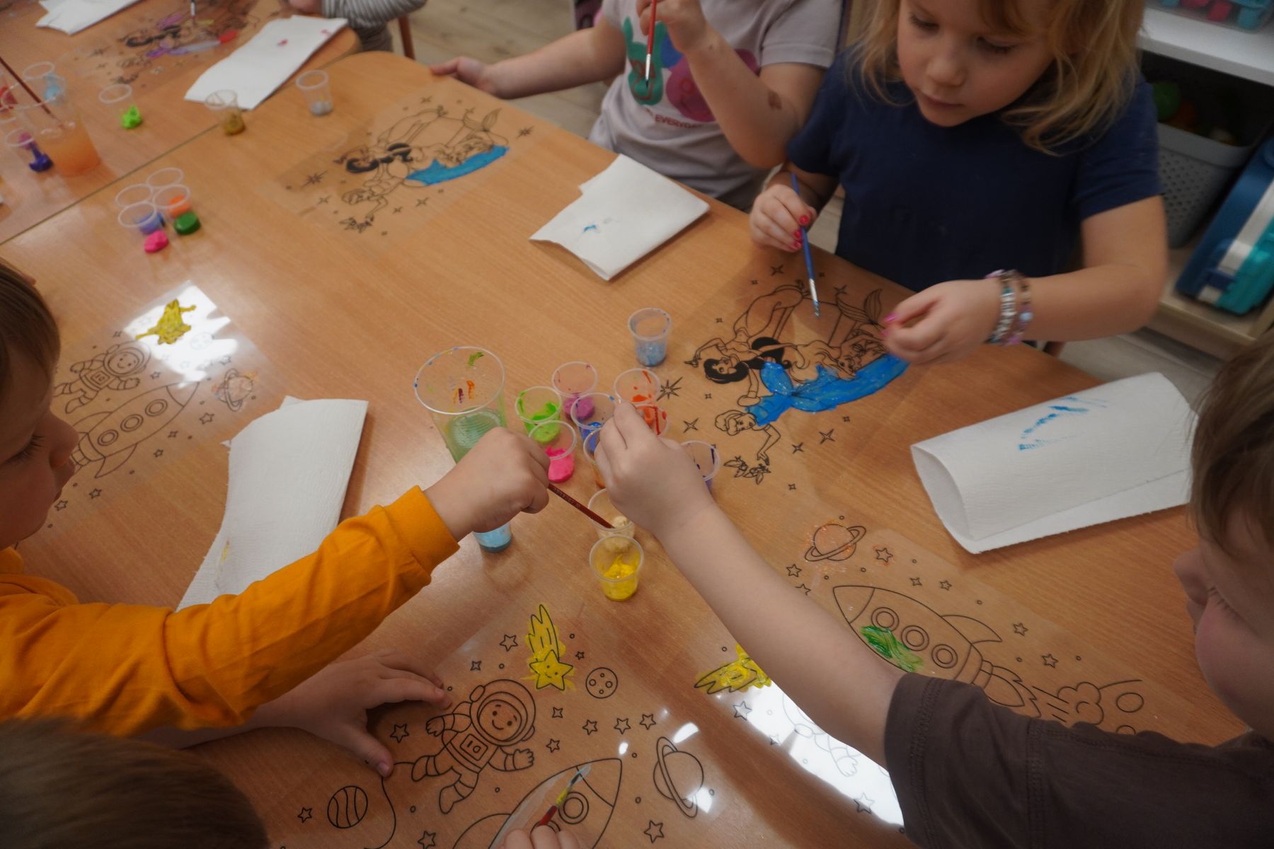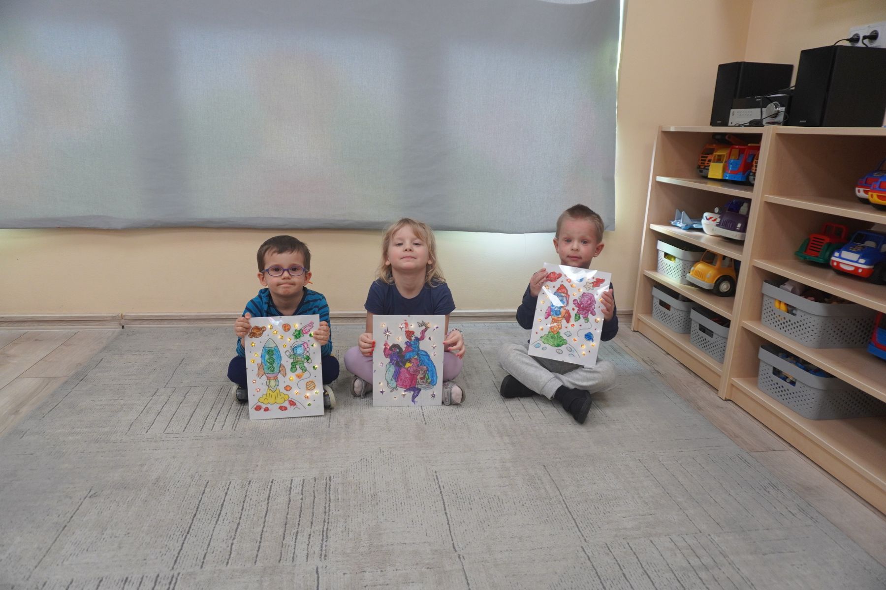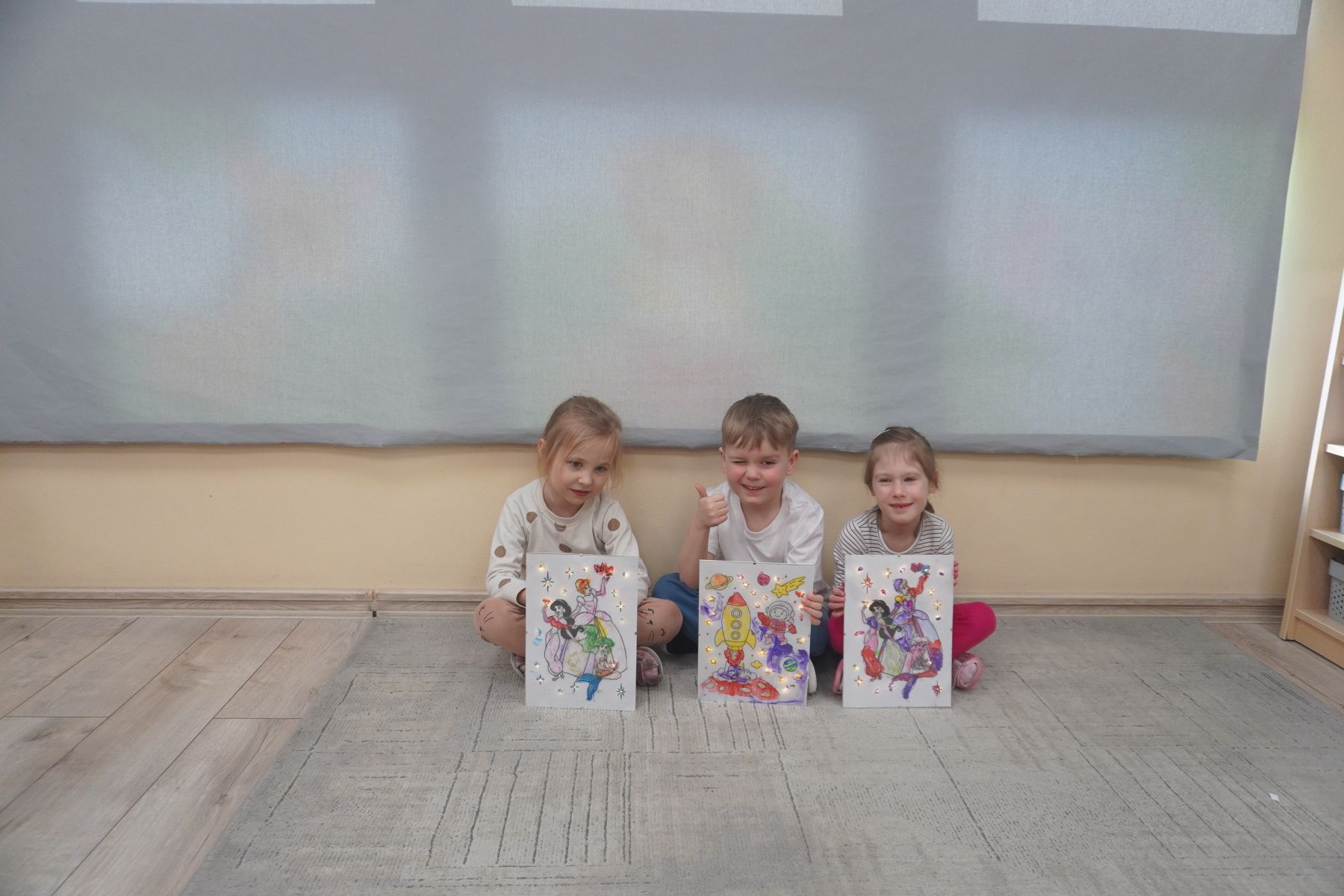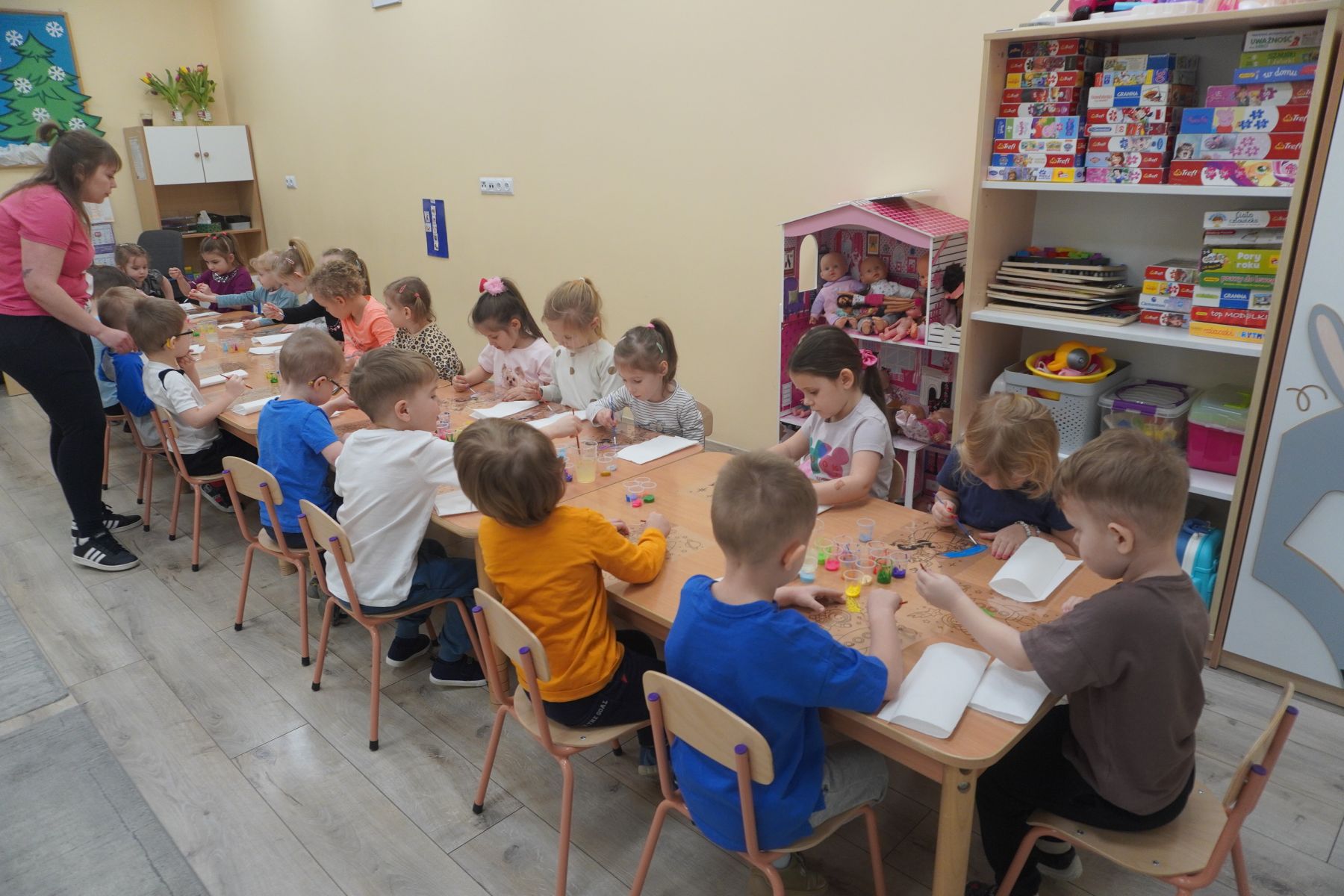 Radość dzieci była ogromna – z entuzjazmem mieszały barwy, eksperymentowały z kształtami i z dumą prezentowały swoje kolorowe obrazki.