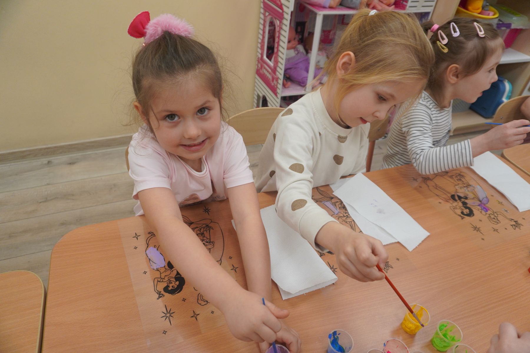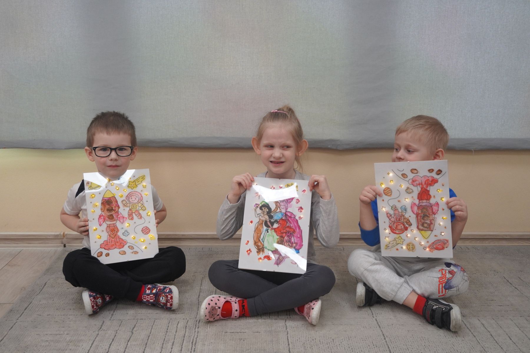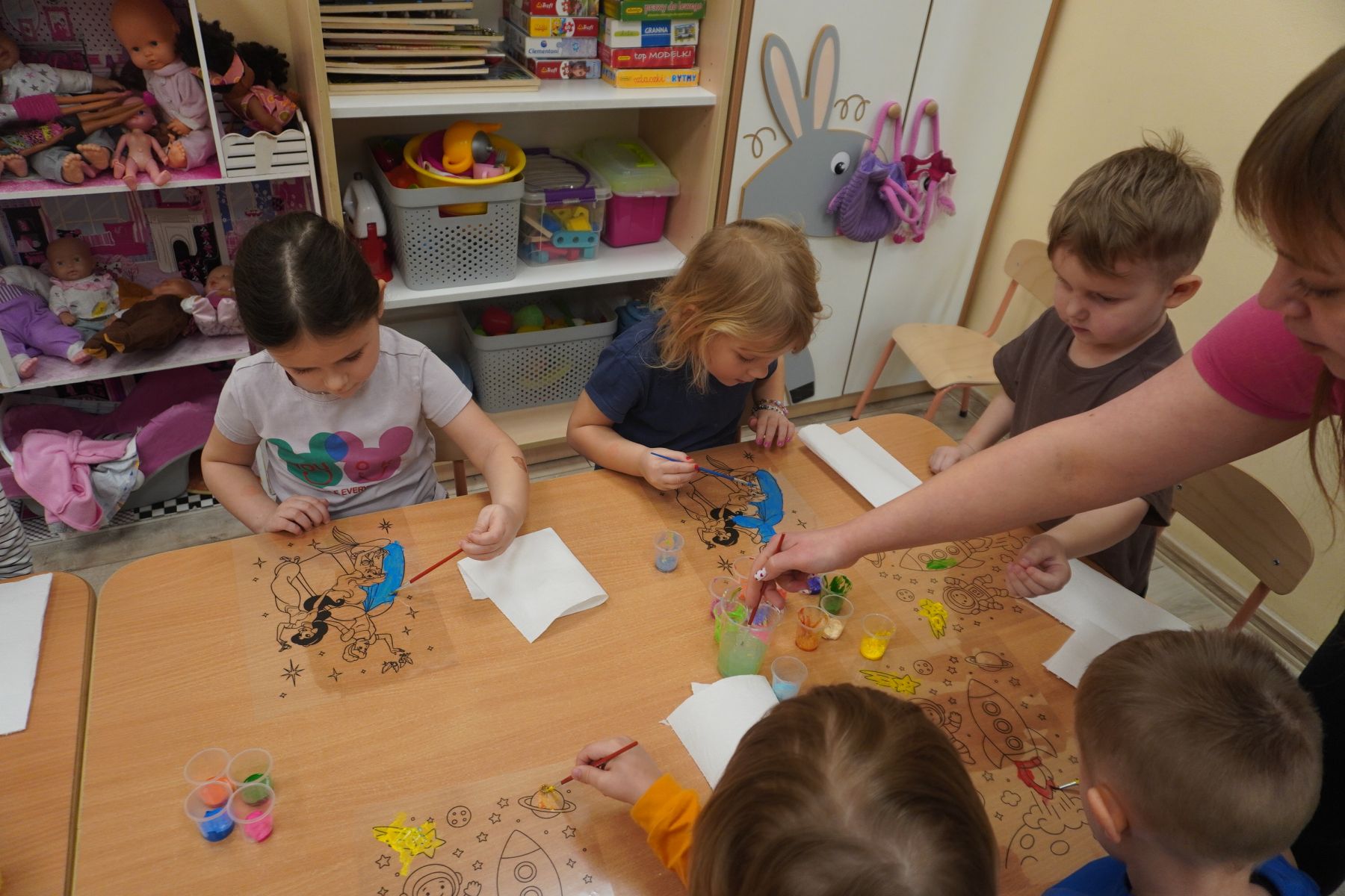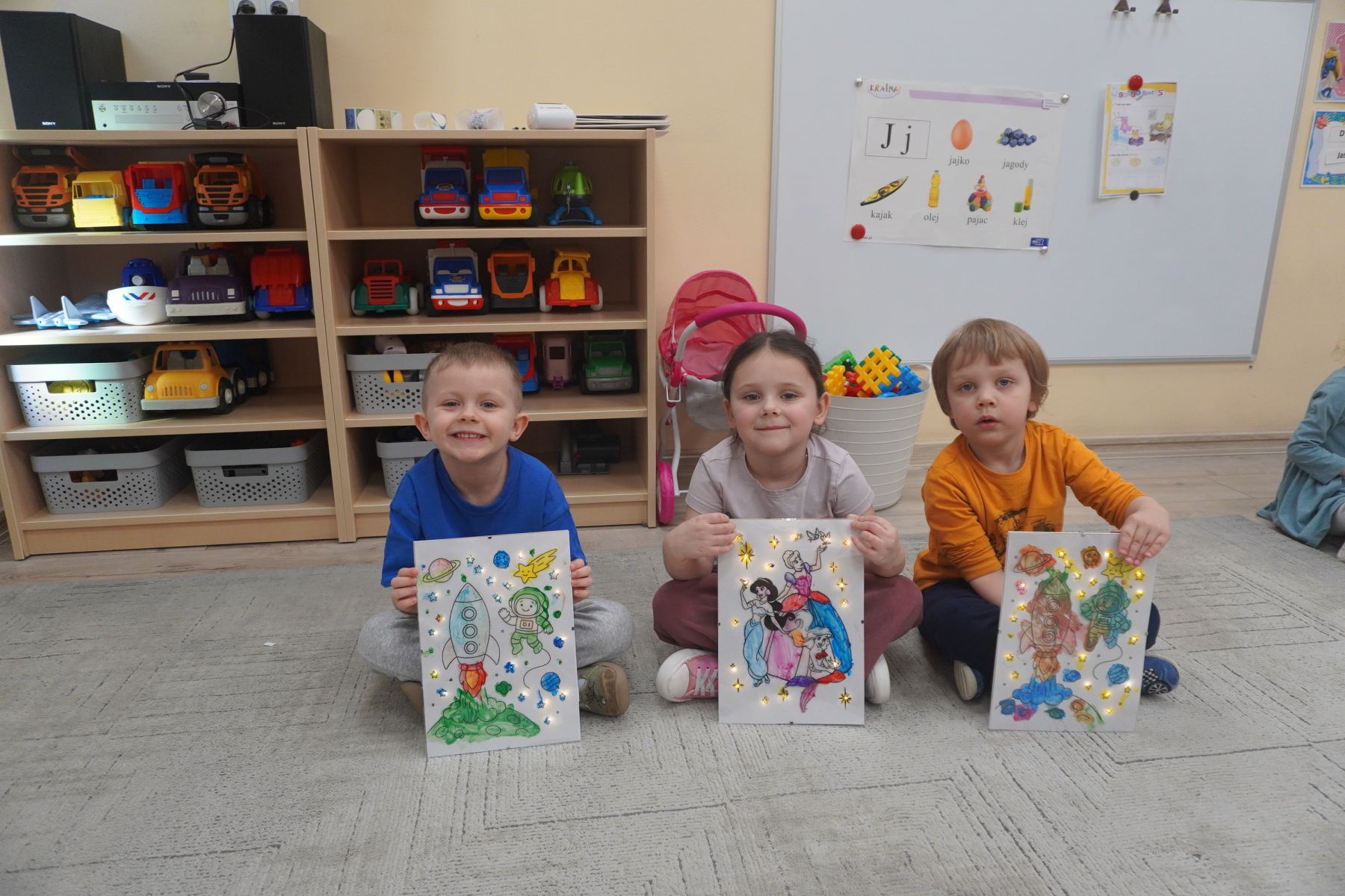 Radość dzieci była ogromna – z entuzjazmem mieszały barwy, eksperymentowały z kształtami i z dumą prezentowały swoje kolorowe obrazki.