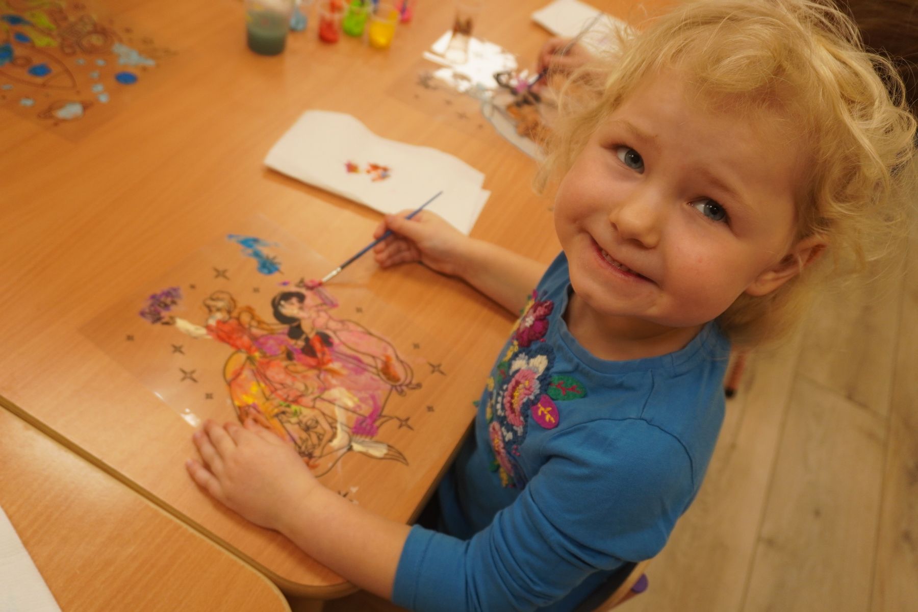 Podczas warsztatów „Malowanie na szkle” dzieci odkryły magię kolorów i światła.