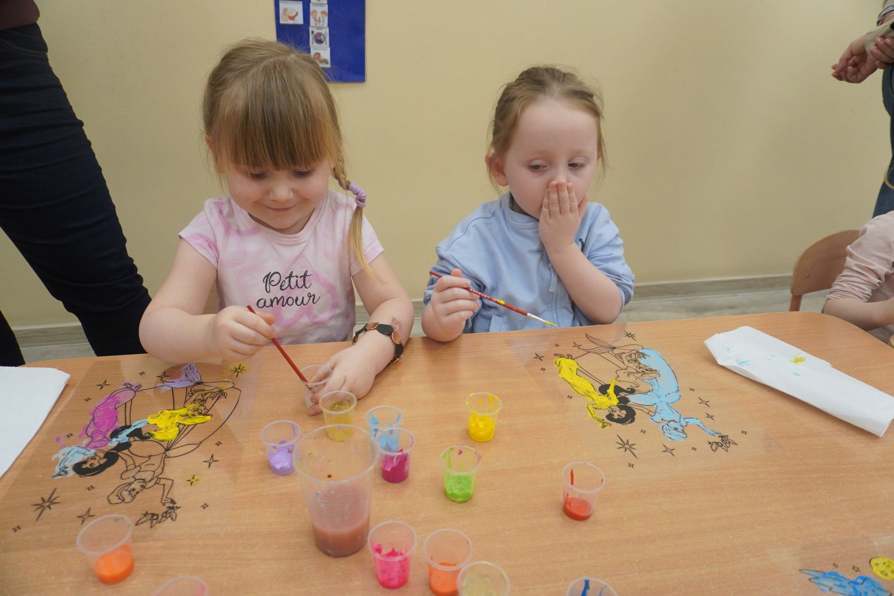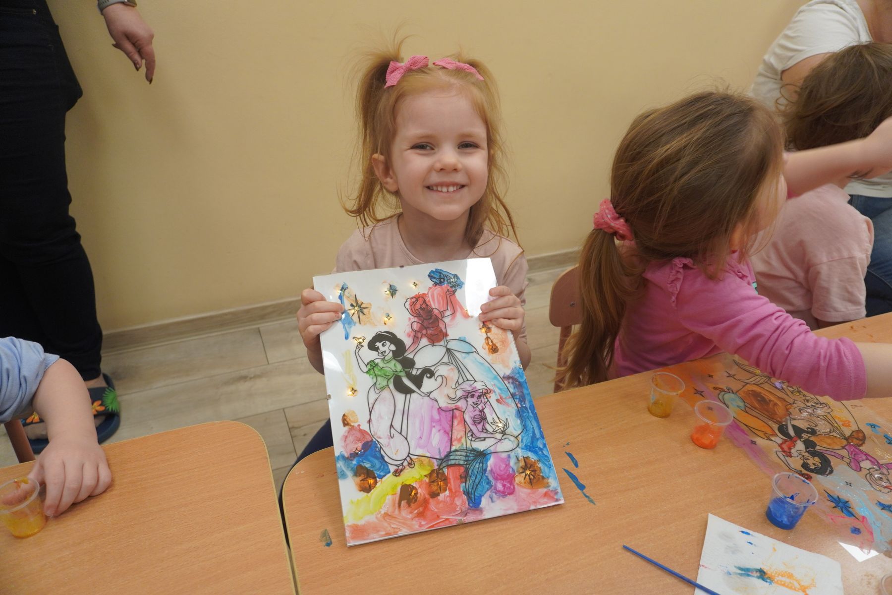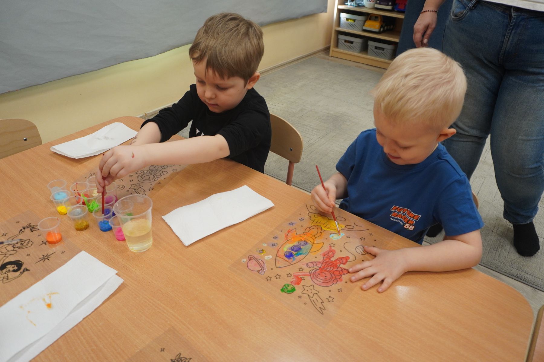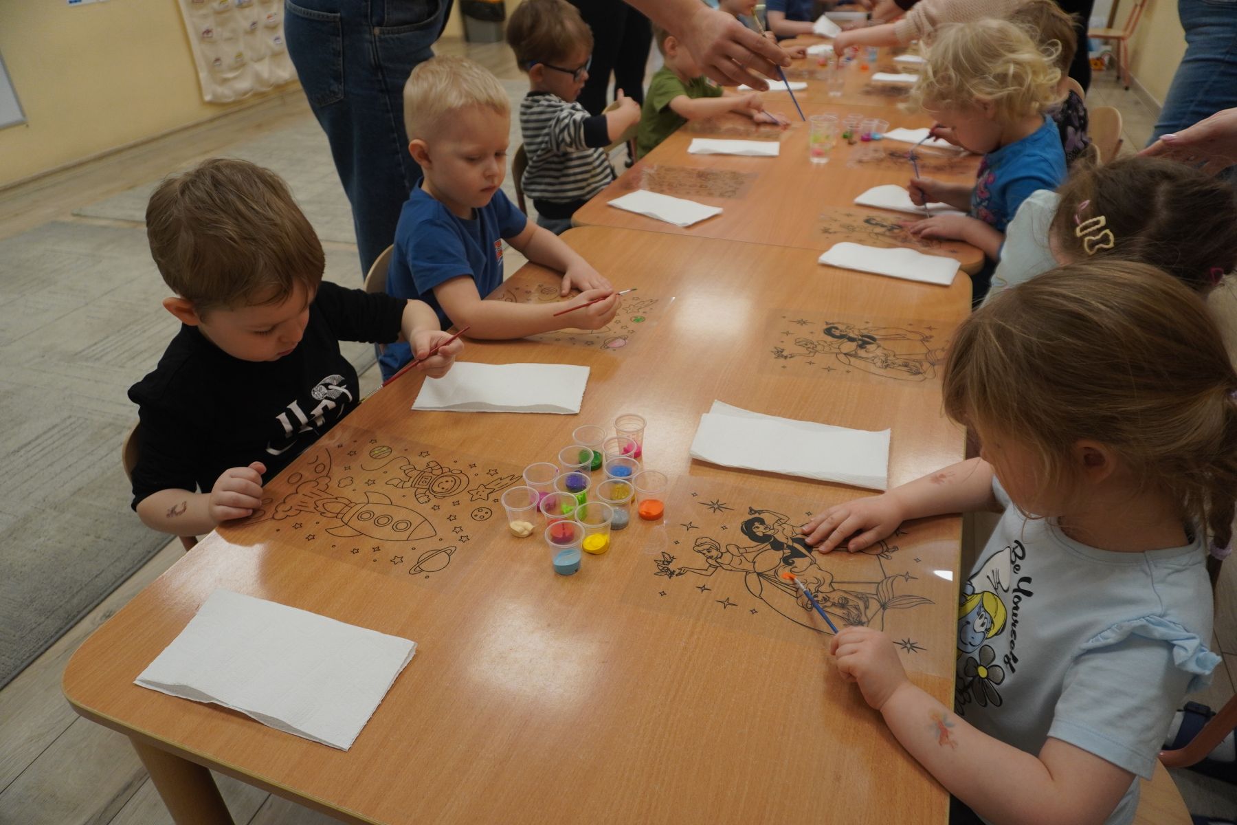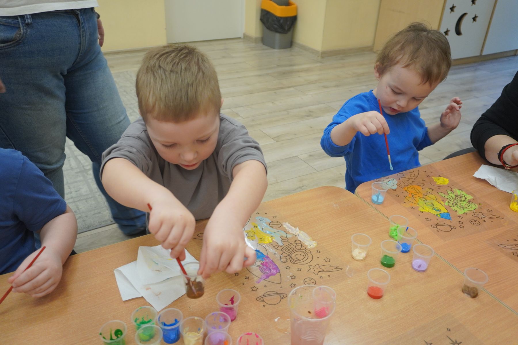 Radość dzieci była ogromna – z entuzjazmem mieszały barwy, eksperymentowały z kształtami i z dumą prezentowały swoje kolorowe obrazki.