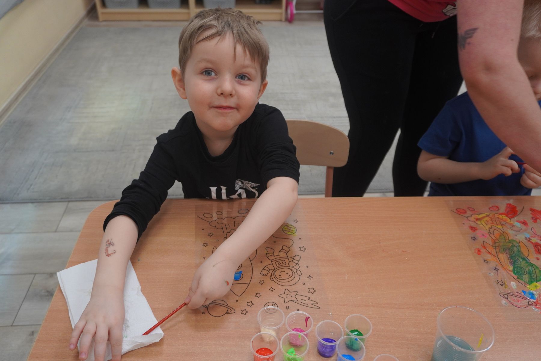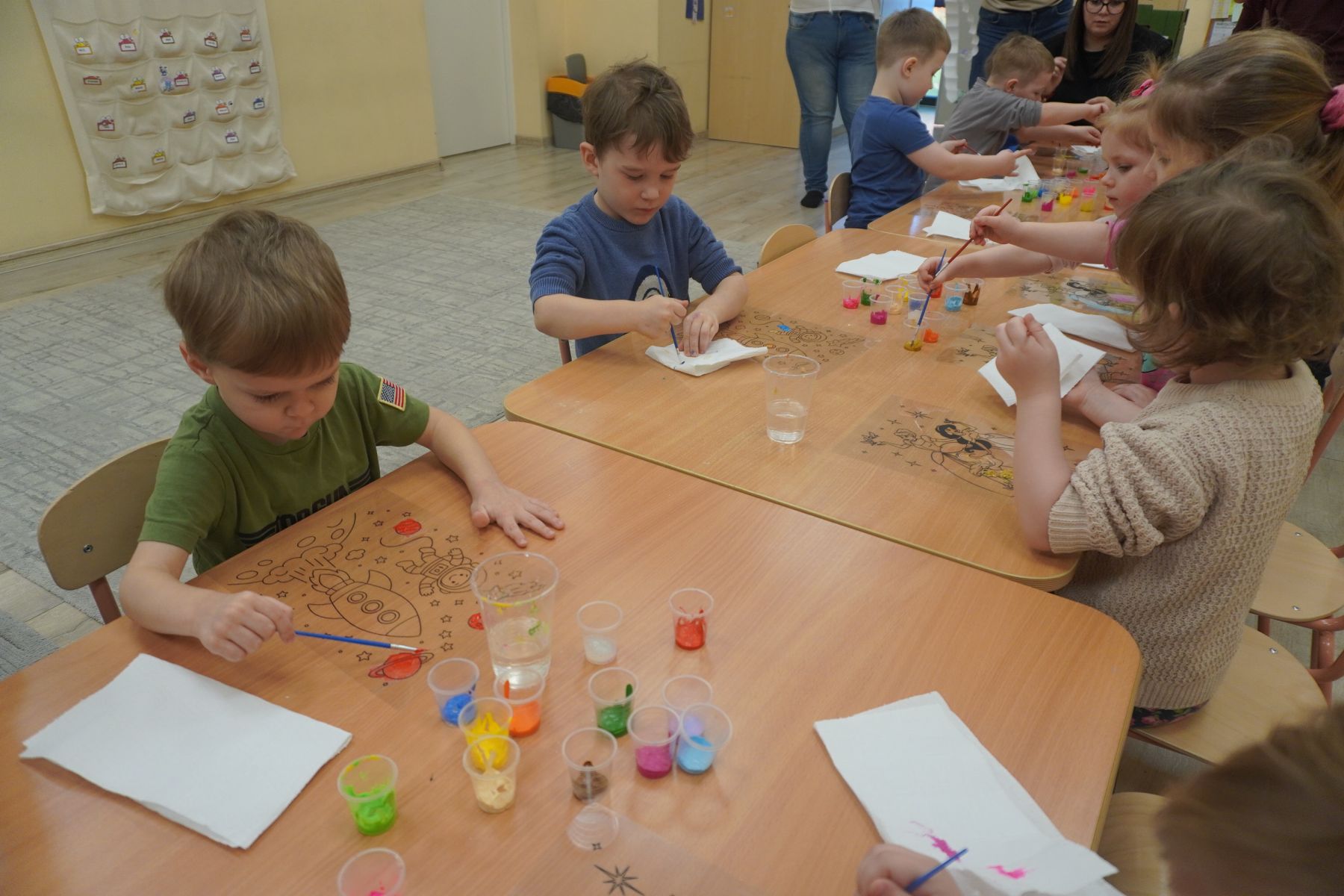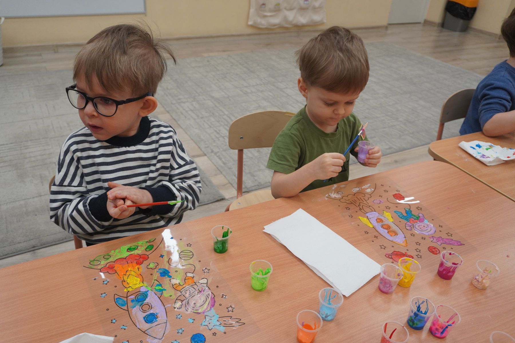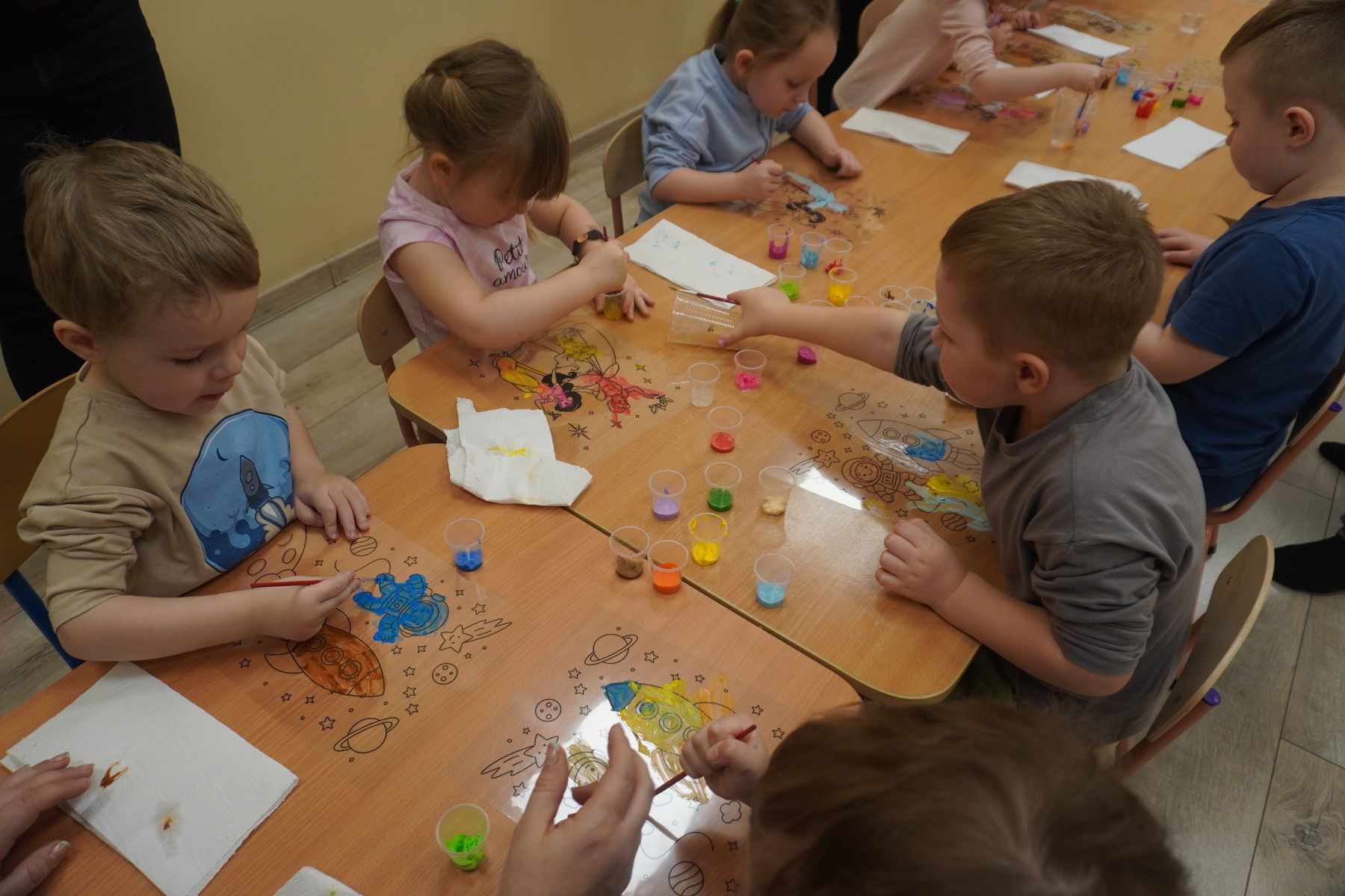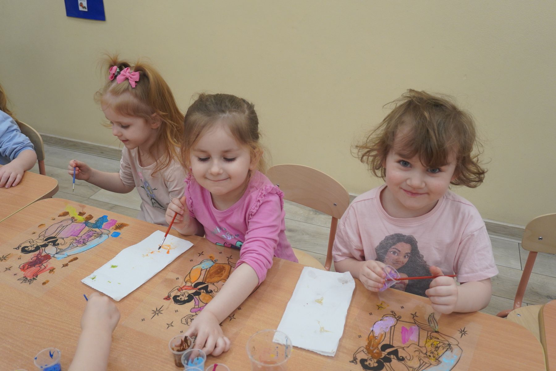 Radość dzieci była ogromna – z entuzjazmem mieszały barwy, eksperymentowały z kształtami i z dumą prezentowały swoje kolorowe obrazki.