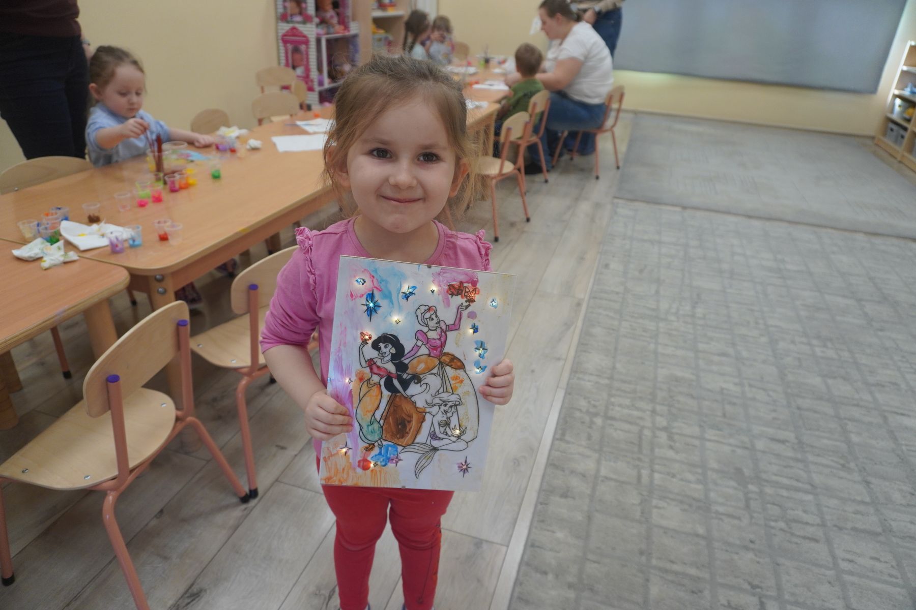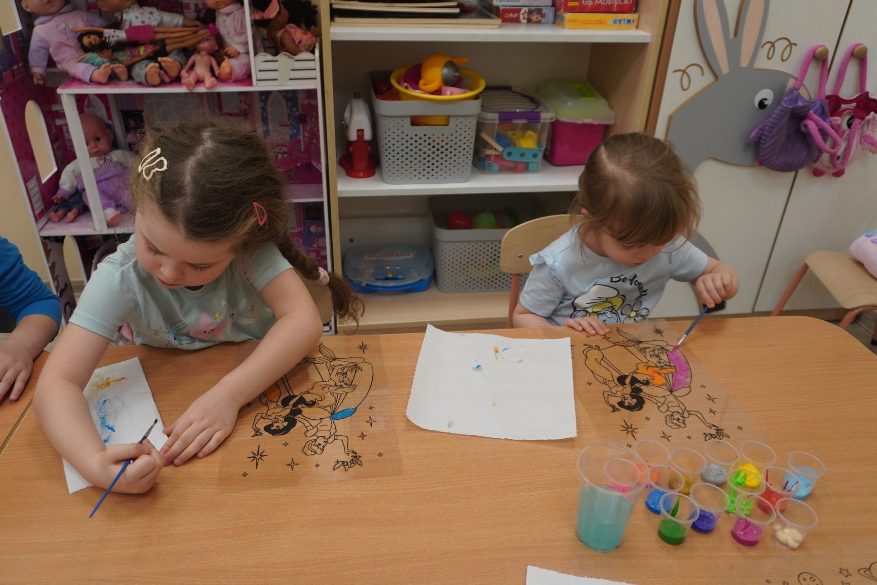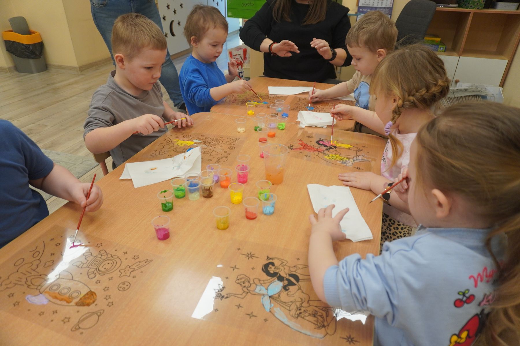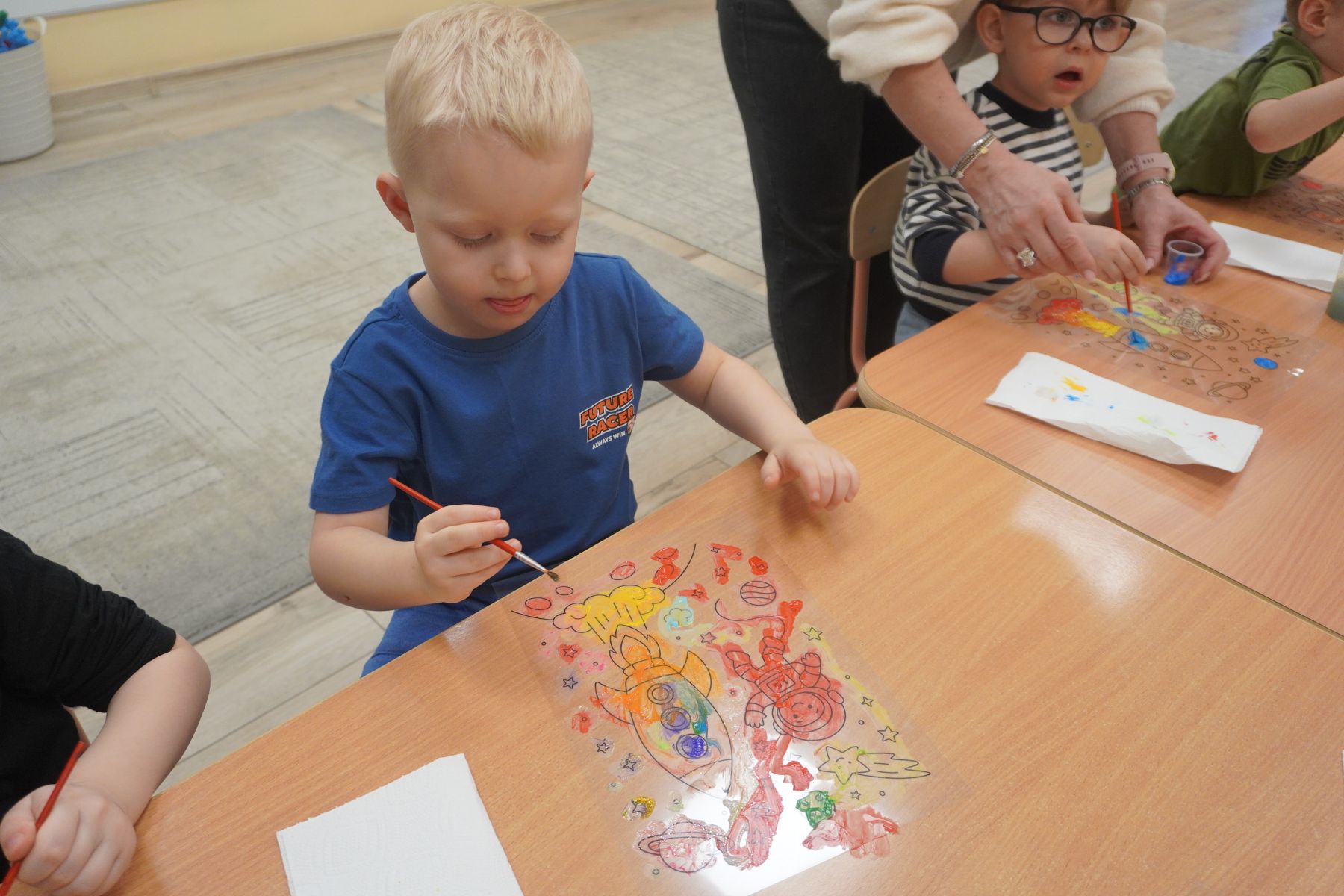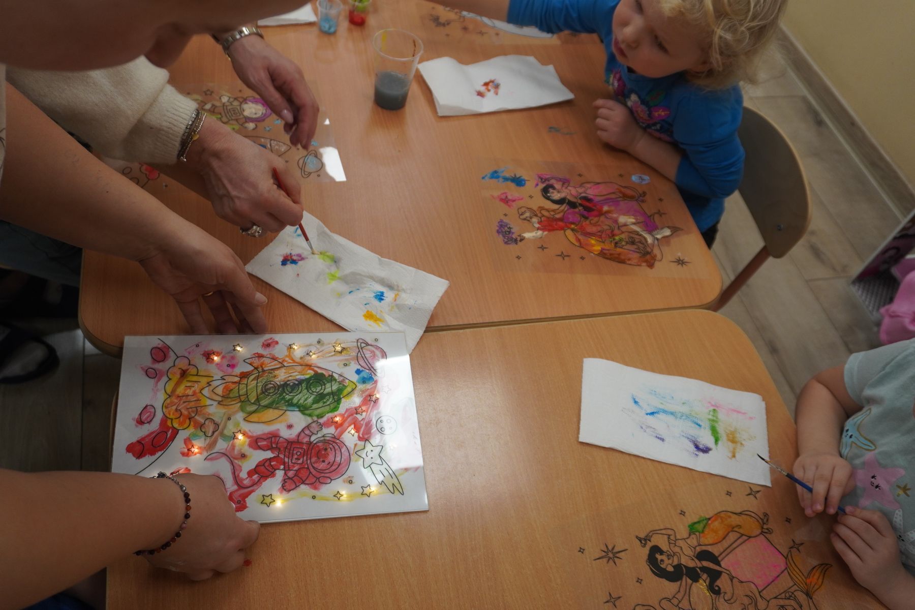 Radość dzieci była ogromna – z entuzjazmem mieszały barwy, eksperymentowały z kształtami i z dumą prezentowały swoje kolorowe obrazki.