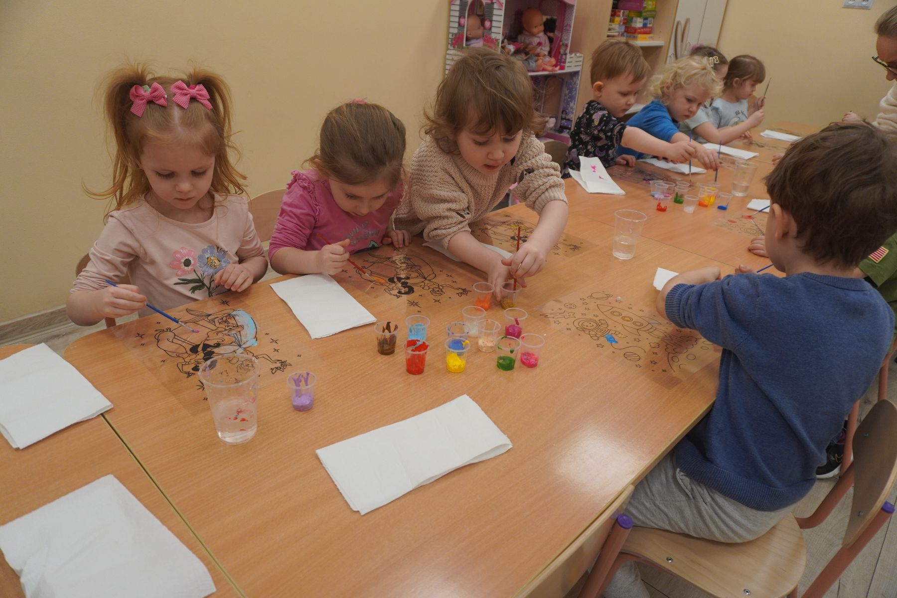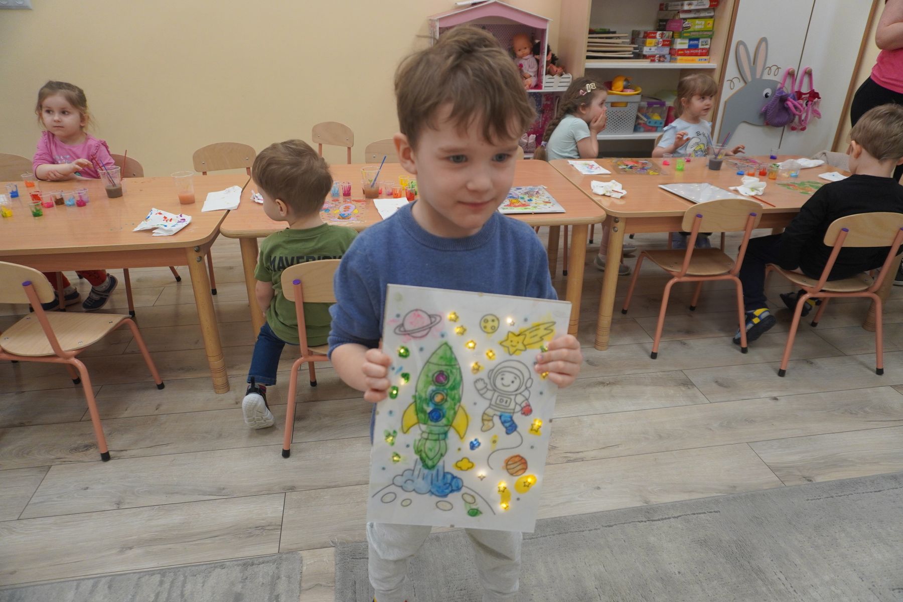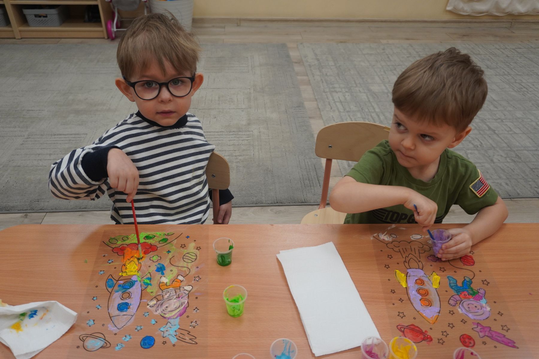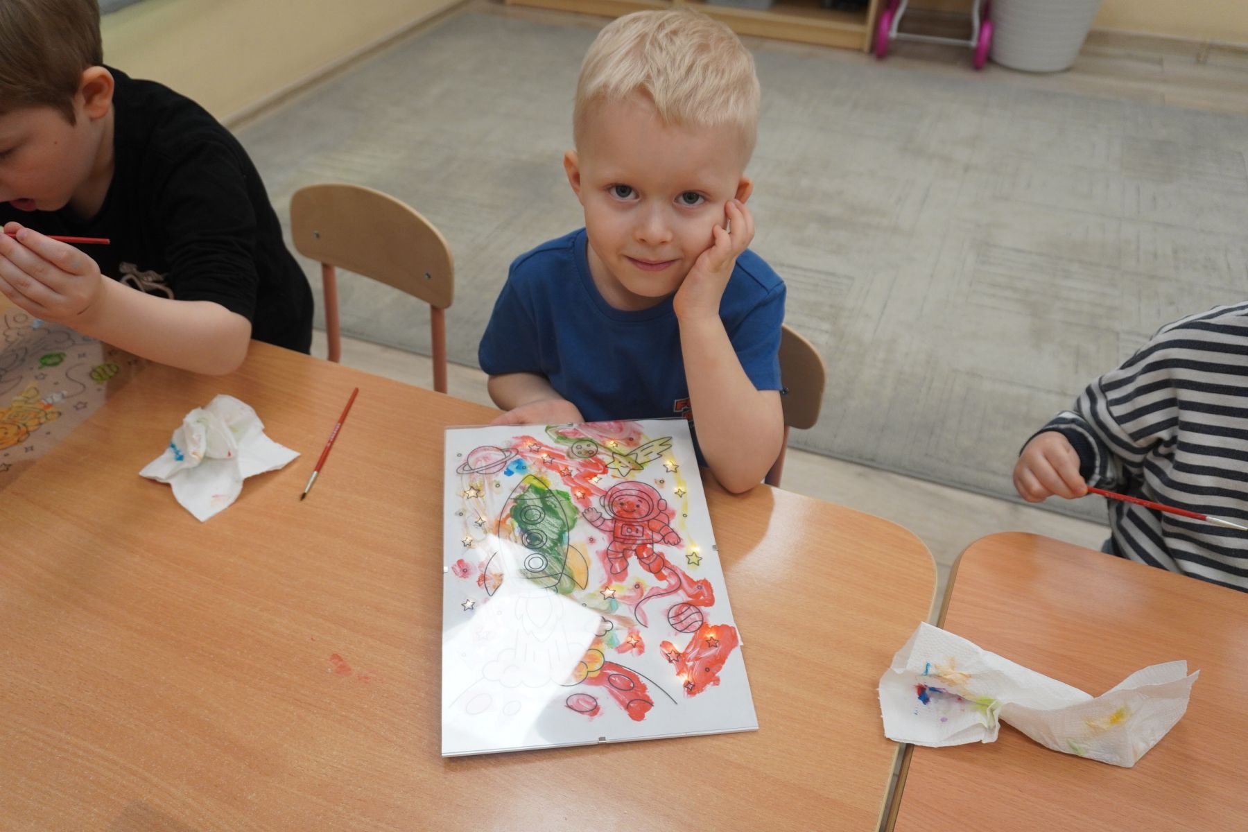 Radość dzieci była ogromna – z entuzjazmem mieszały barwy, eksperymentowały z kształtami i z dumą prezentowały swoje kolorowe obrazki.