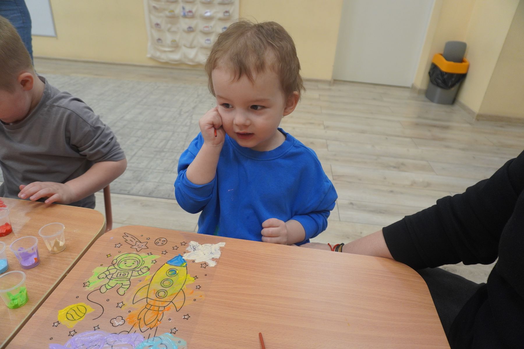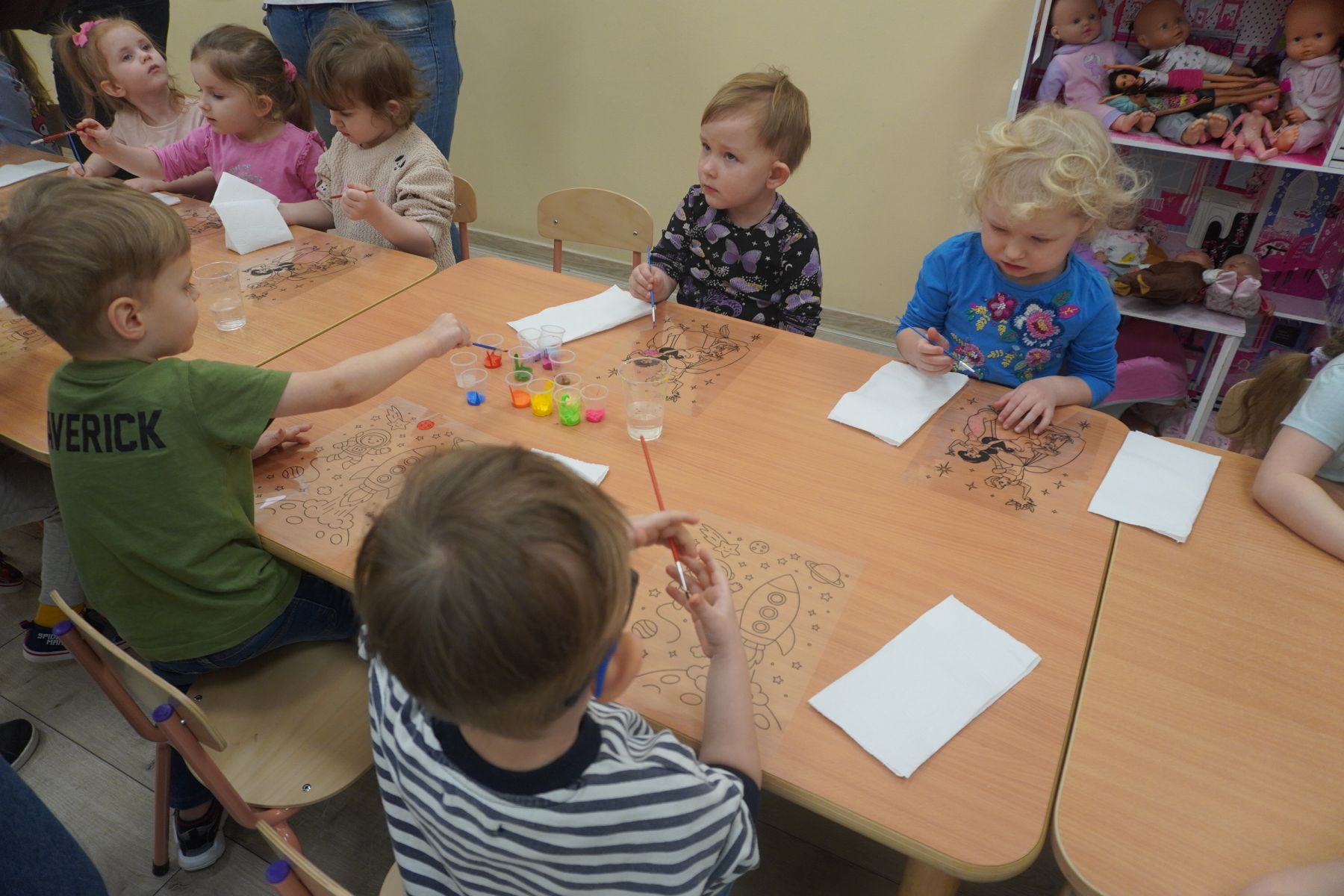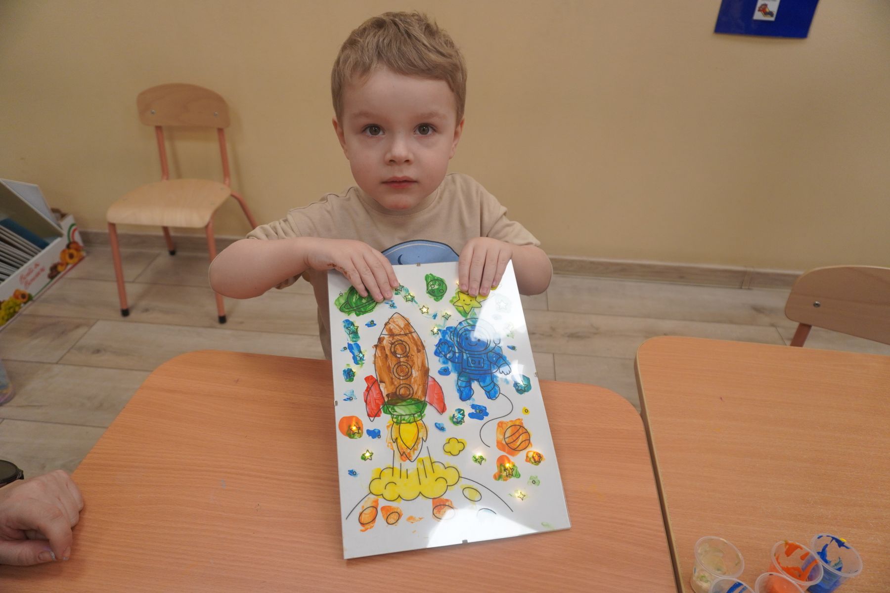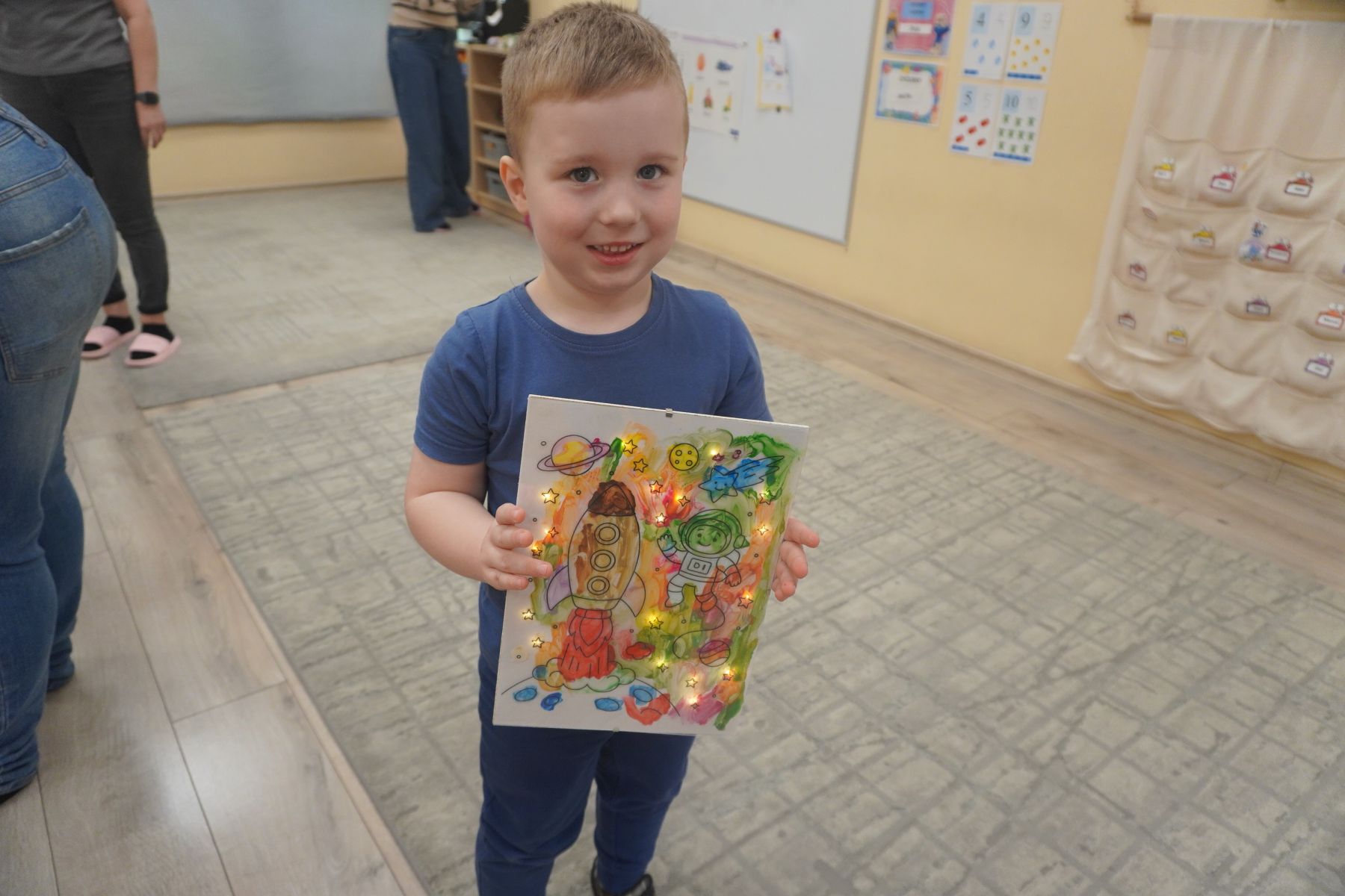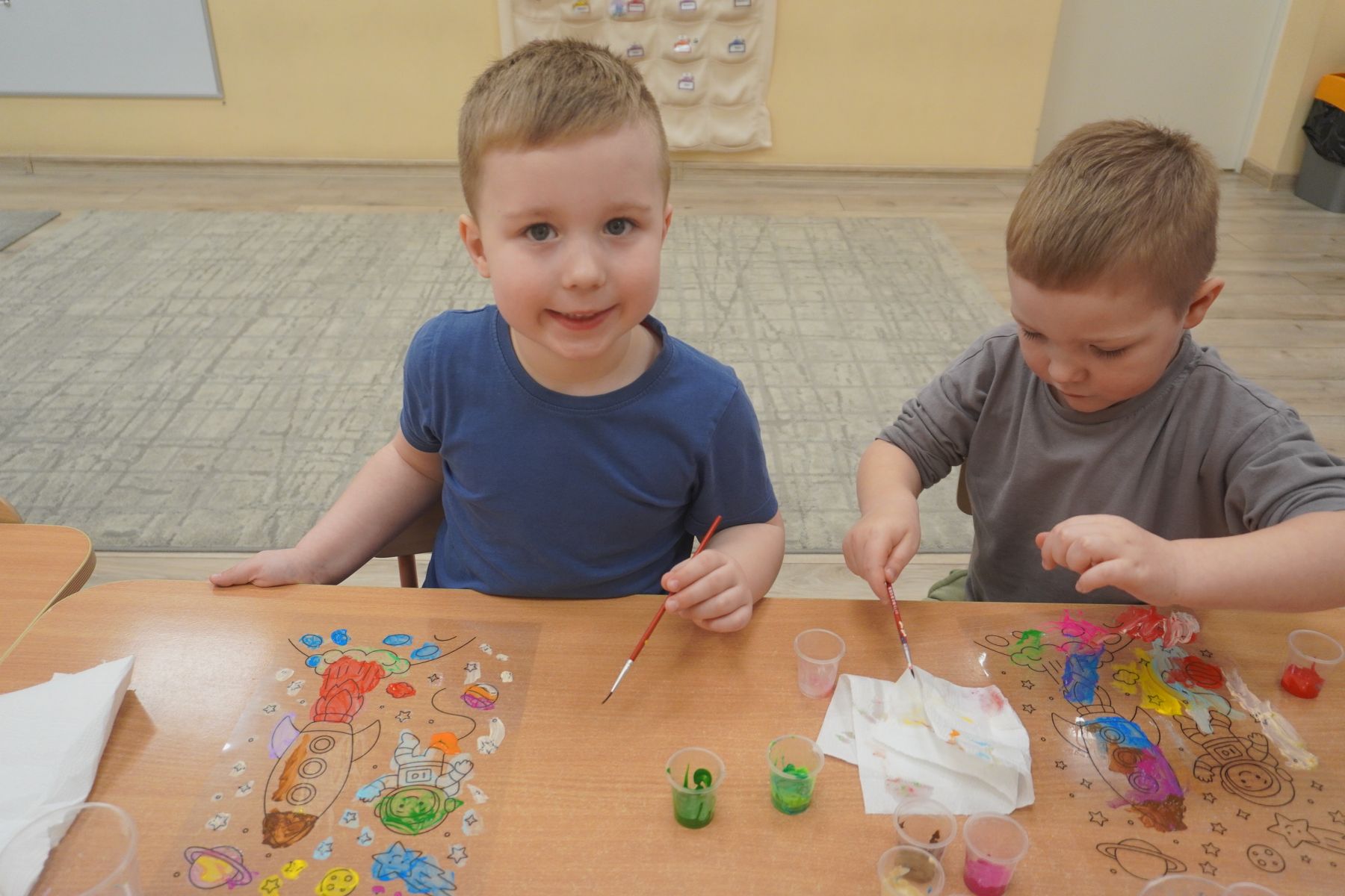 Radość dzieci była ogromna – z entuzjazmem mieszały barwy, eksperymentowały z kształtami i z dumą prezentowały swoje kolorowe obrazki.