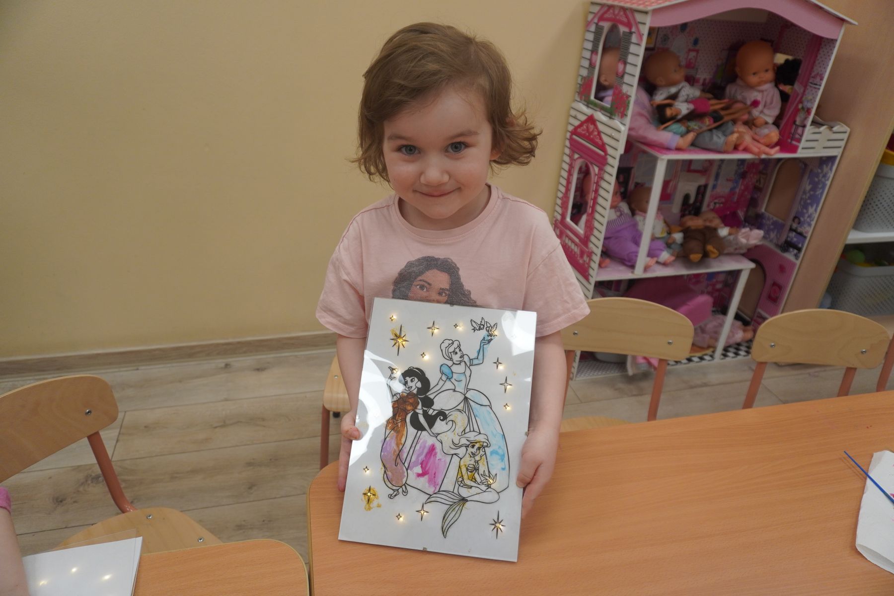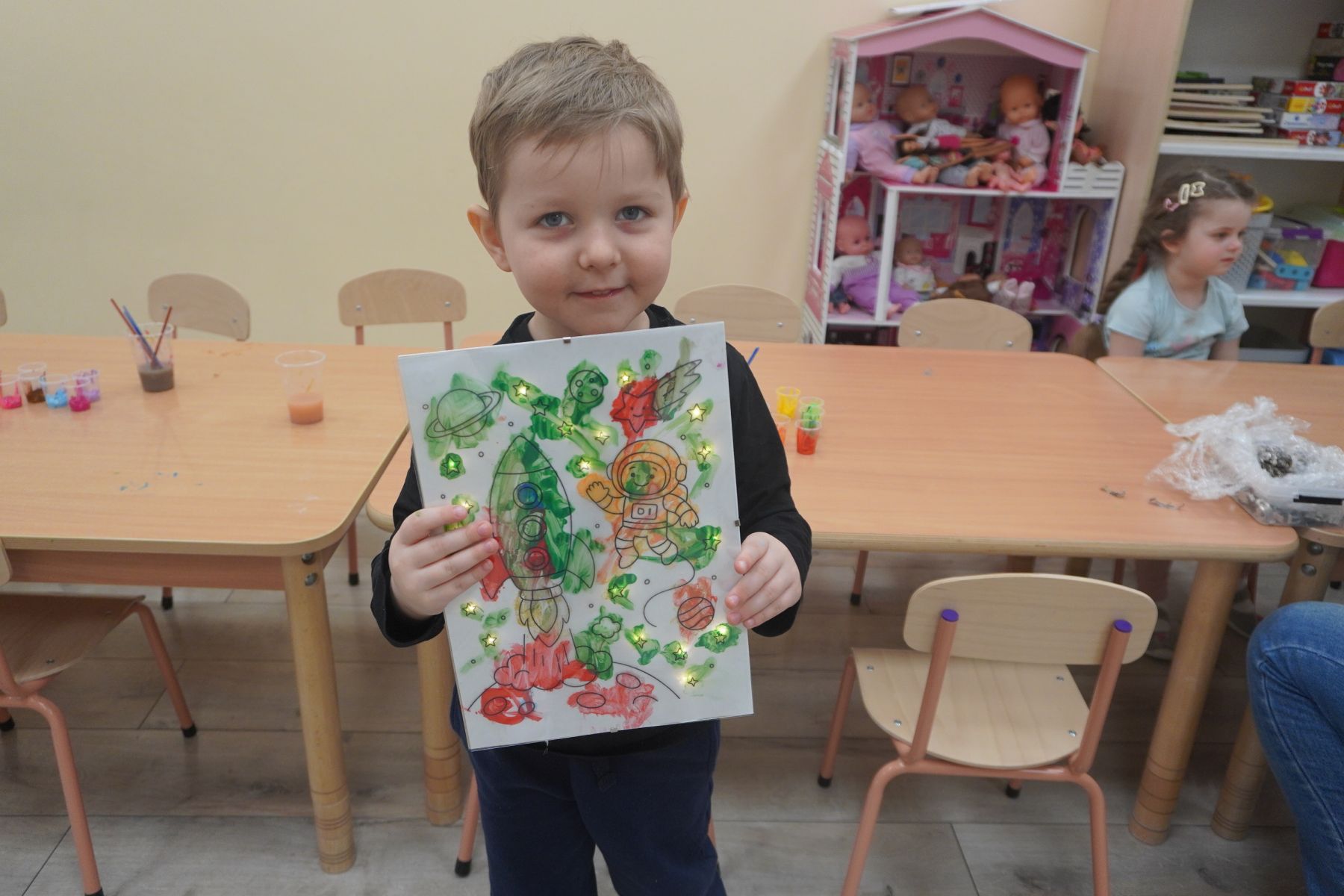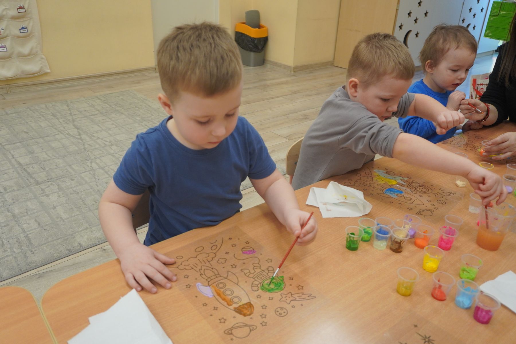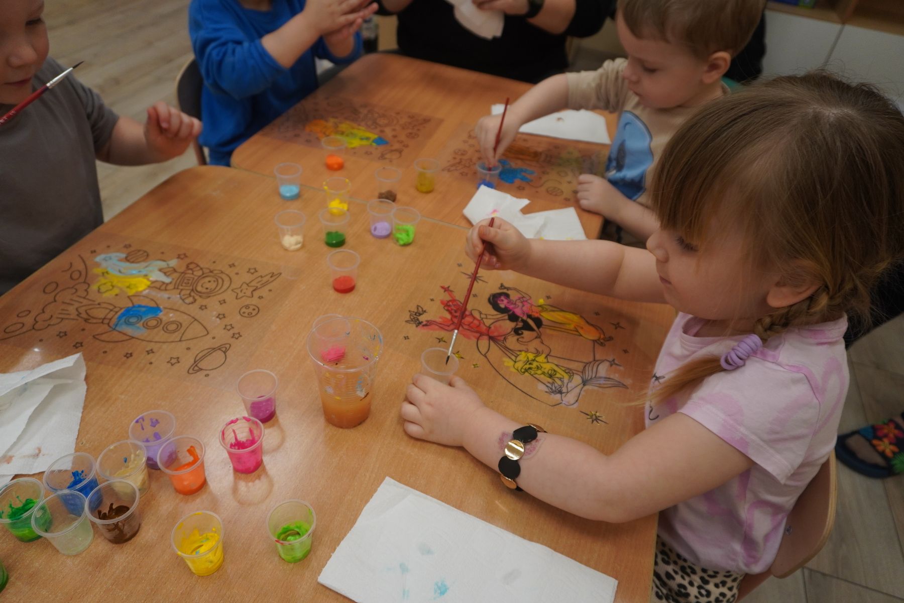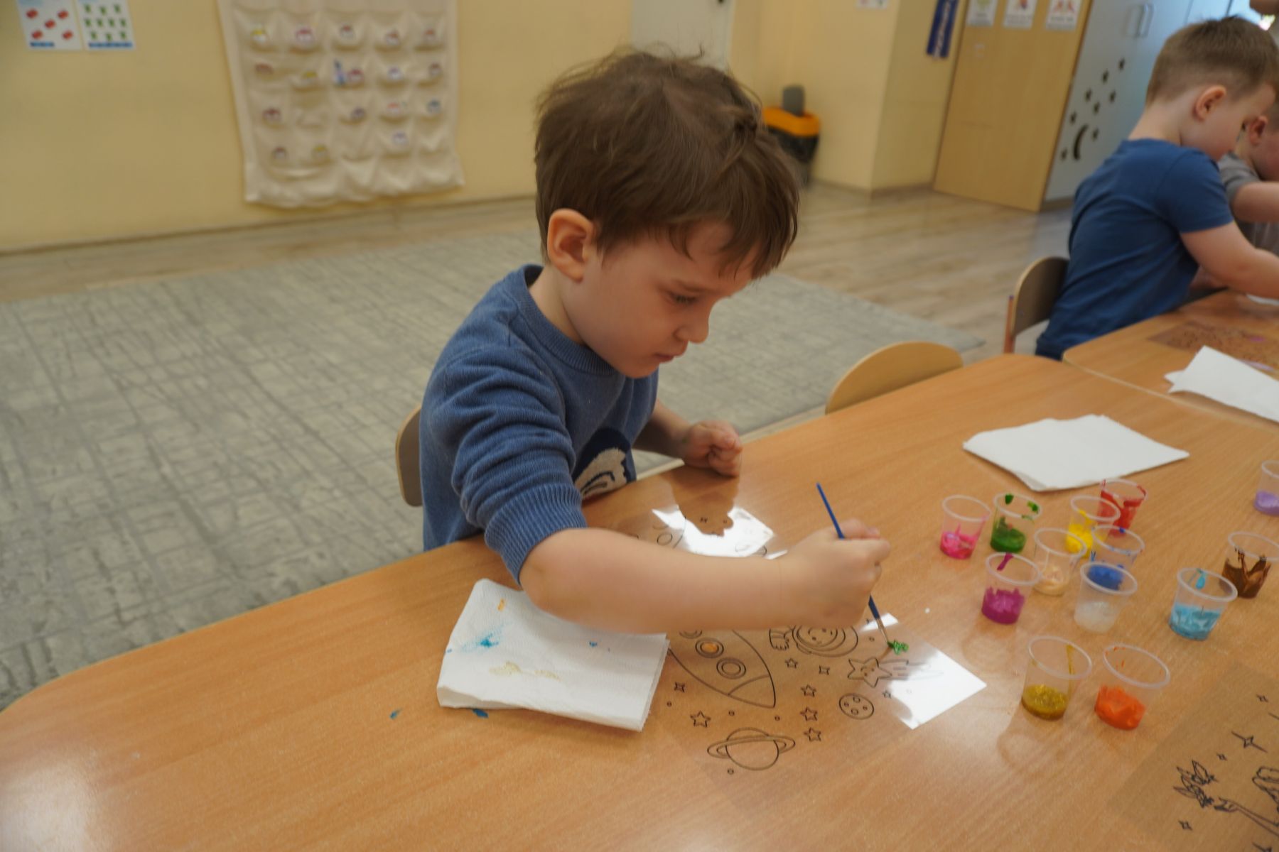 Radość dzieci była ogromna – z entuzjazmem mieszały barwy, eksperymentowały z kształtami i z dumą prezentowały swoje kolorowe obrazki.