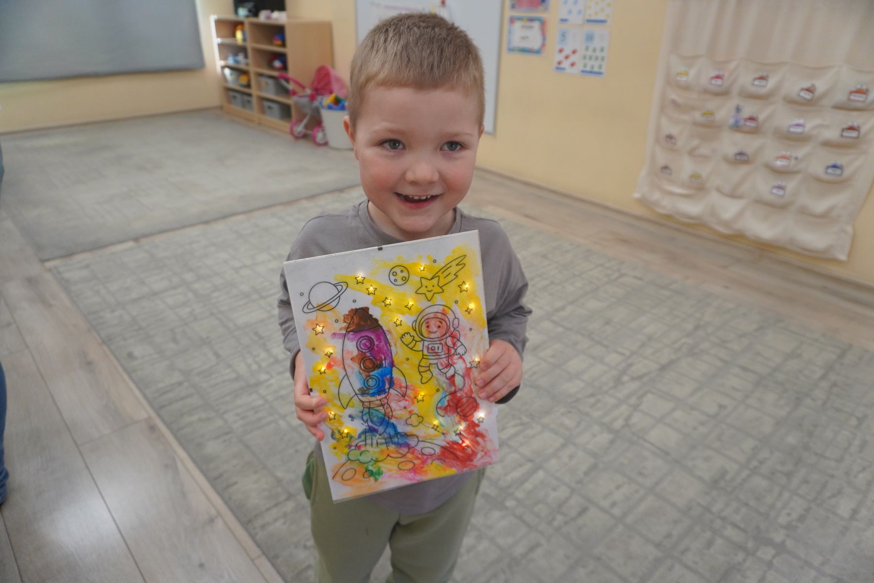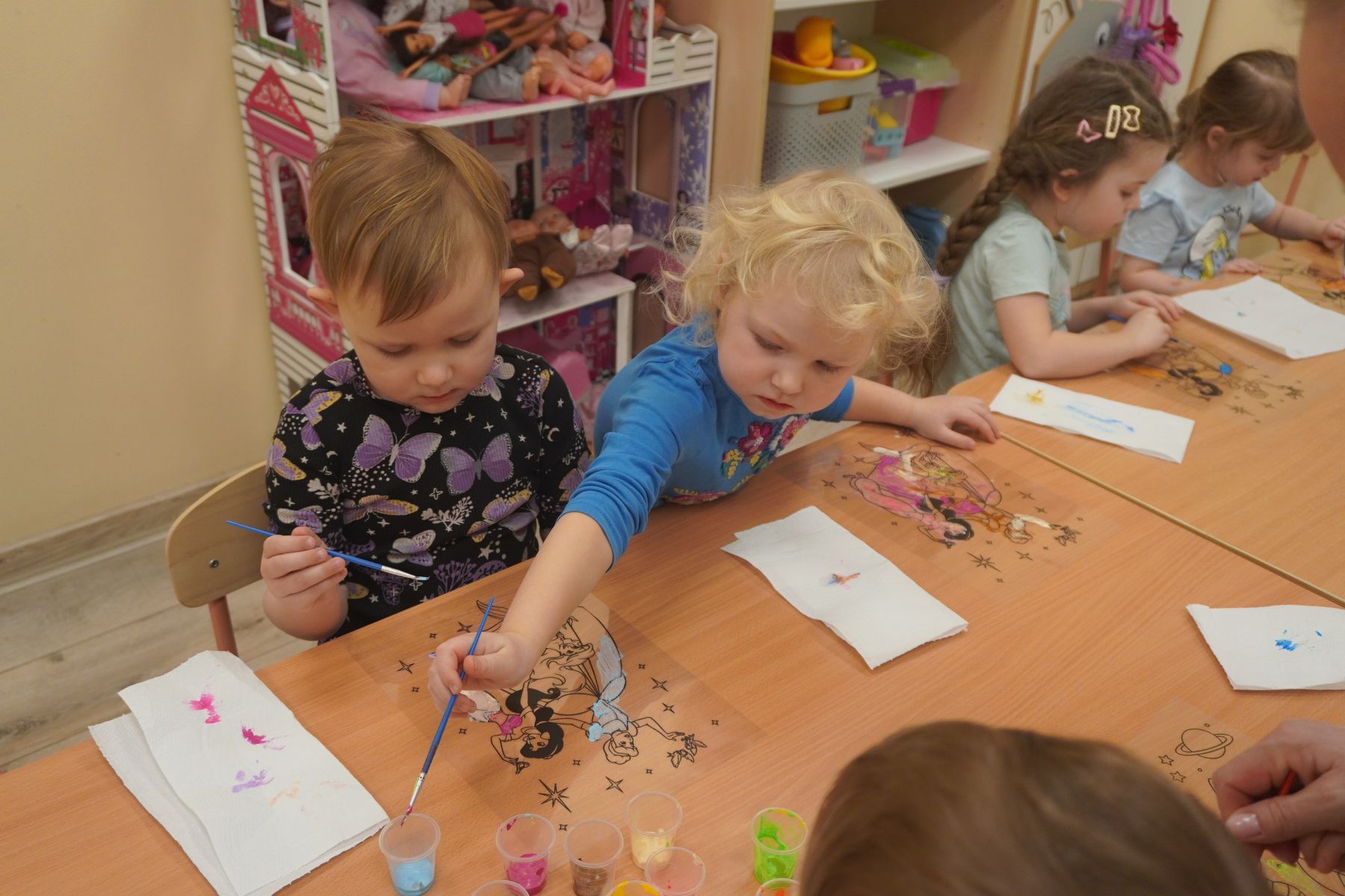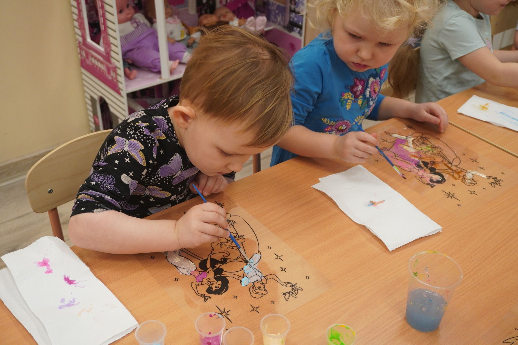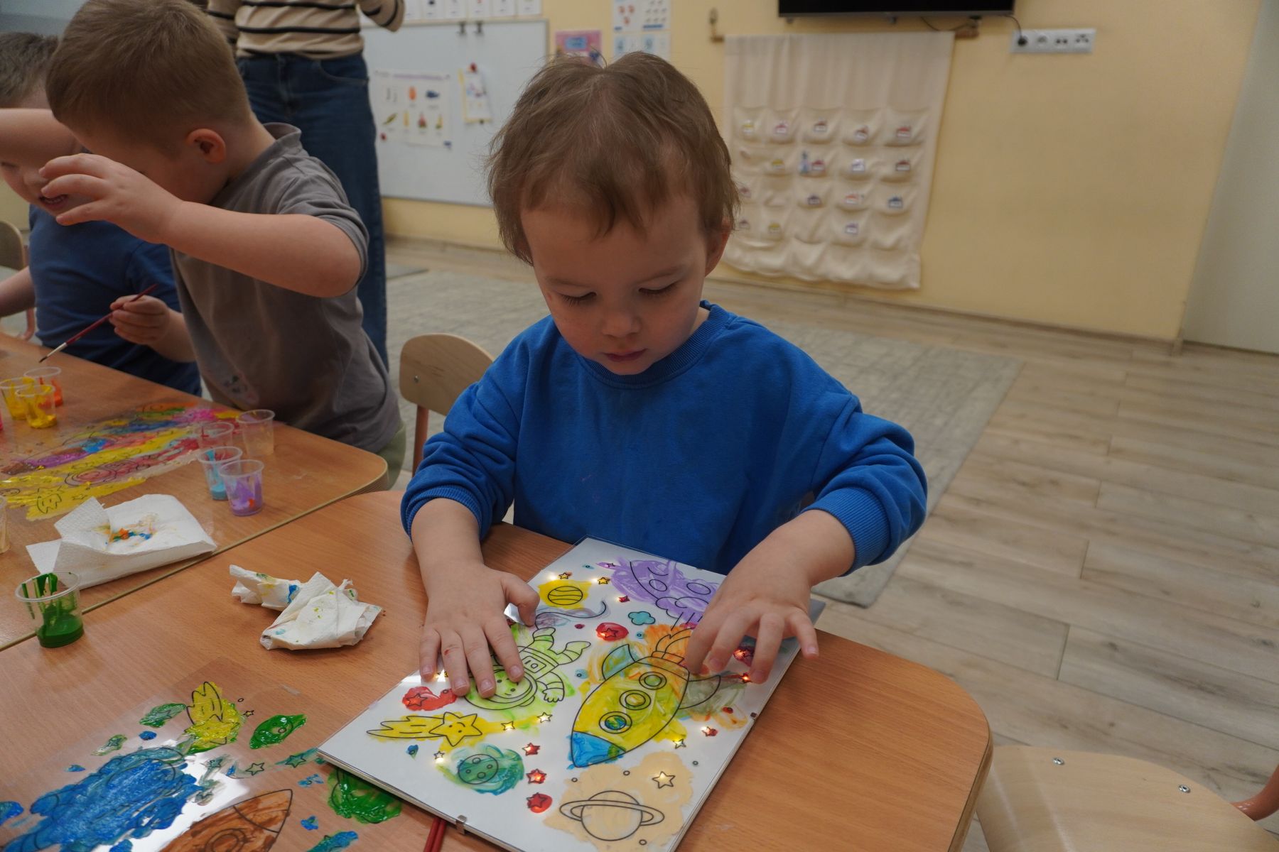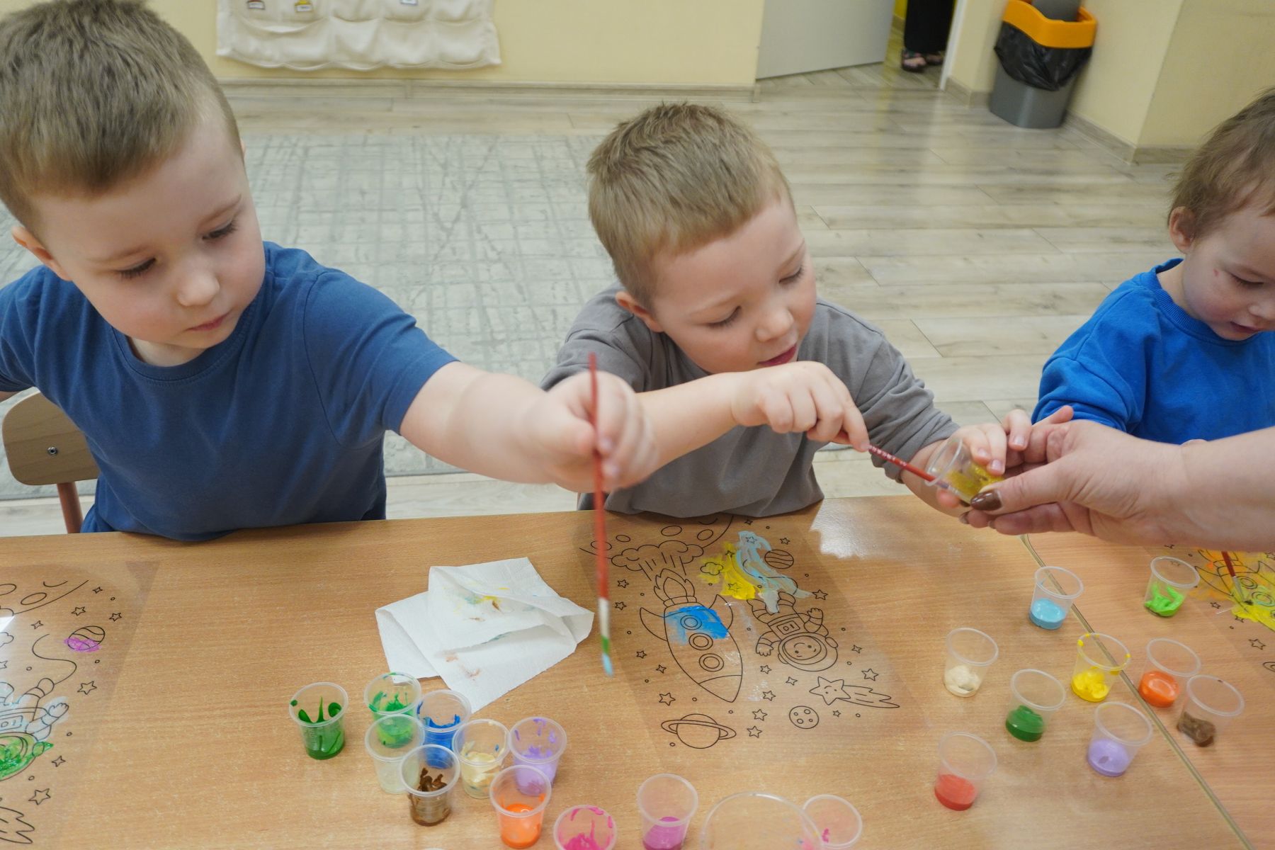 Radość dzieci była ogromna – z entuzjazmem mieszały barwy, eksperymentowały z kształtami i z dumą prezentowały swoje kolorowe obrazki.