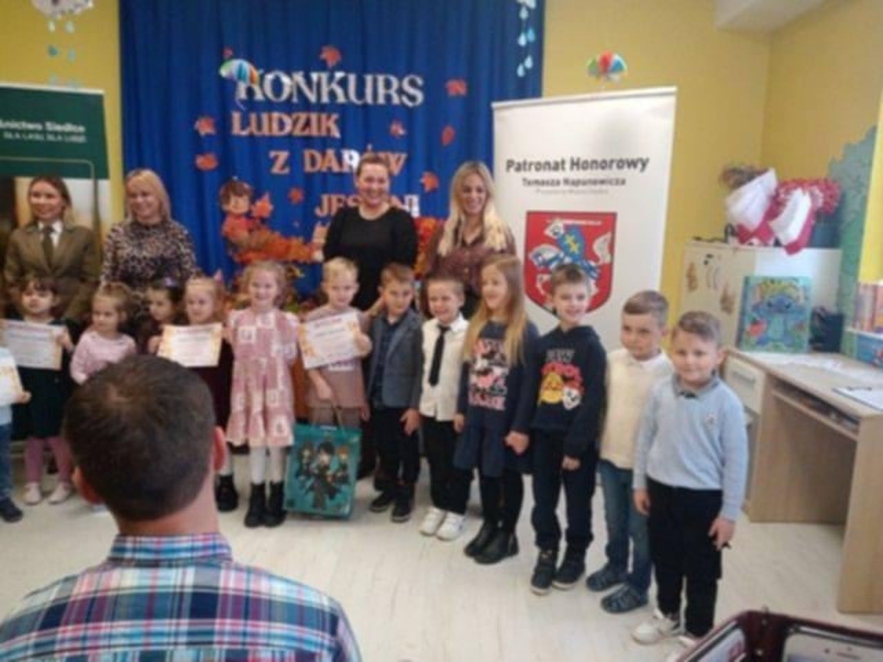 W dniu wczorajszym (tj. 6.11.2025) w Przedszkolu Smerfna Chata odbyło się oficjalne wręczenie dyplomów i nagród w organizowanym przez tą placówkę konkursie "Ludzik z darów jesieni".
