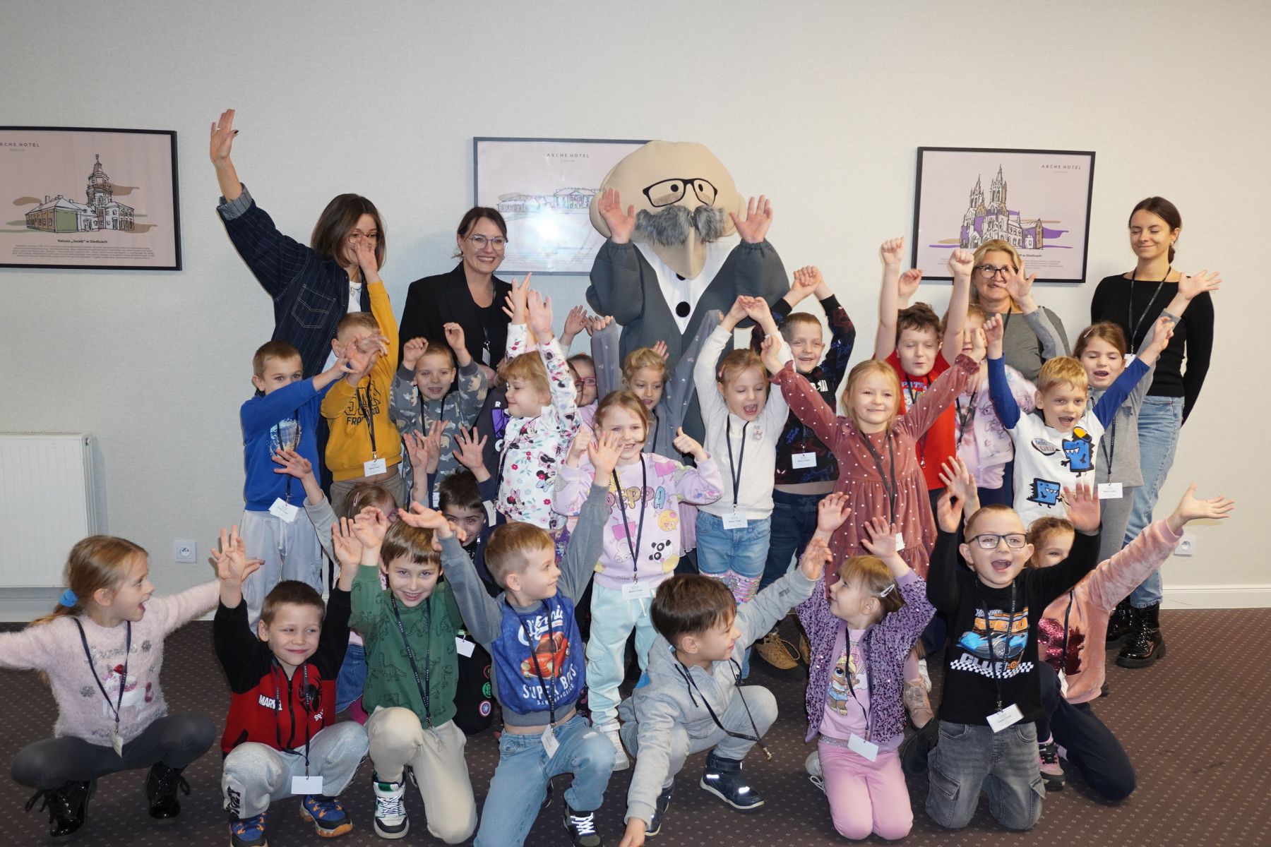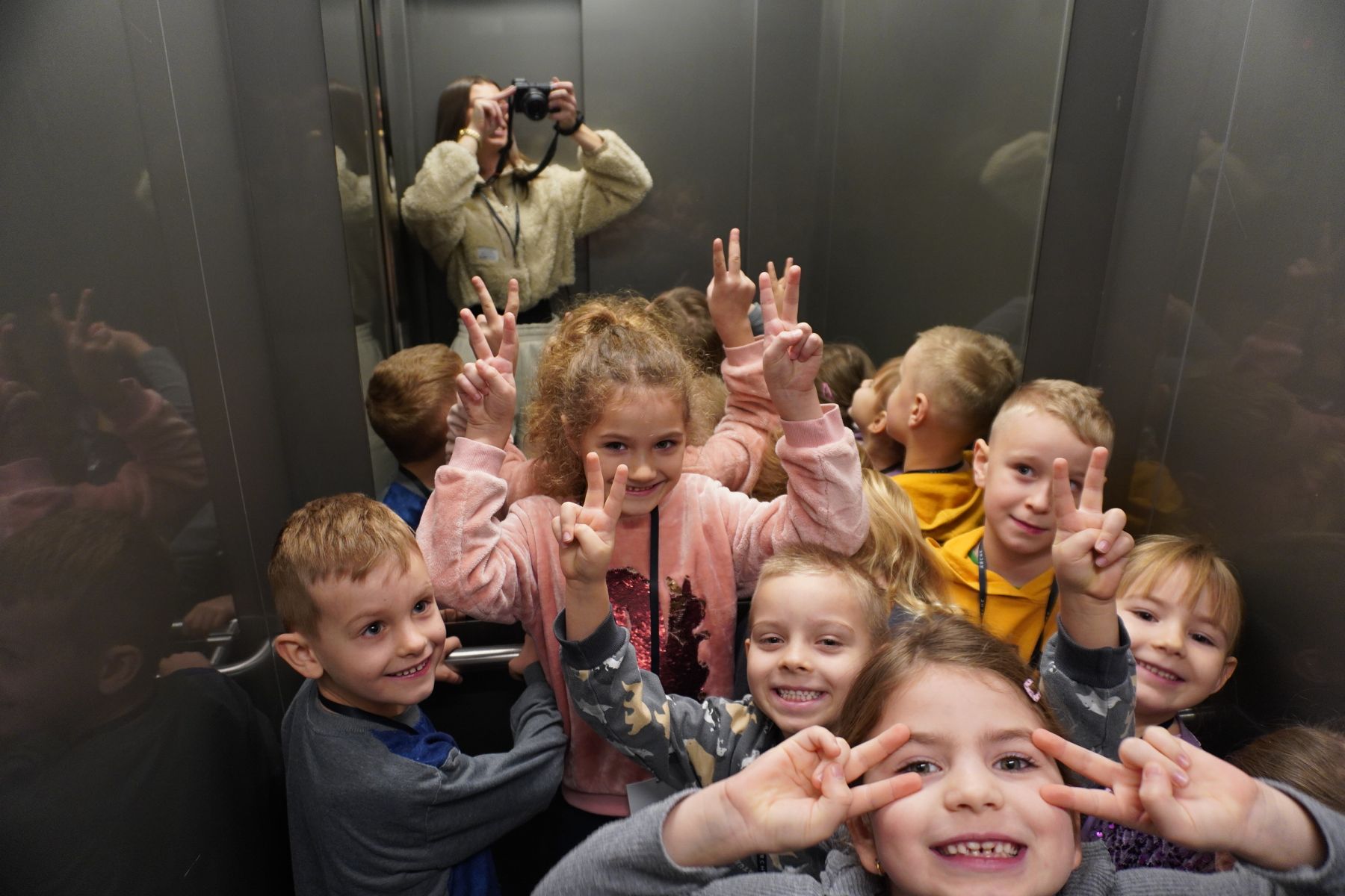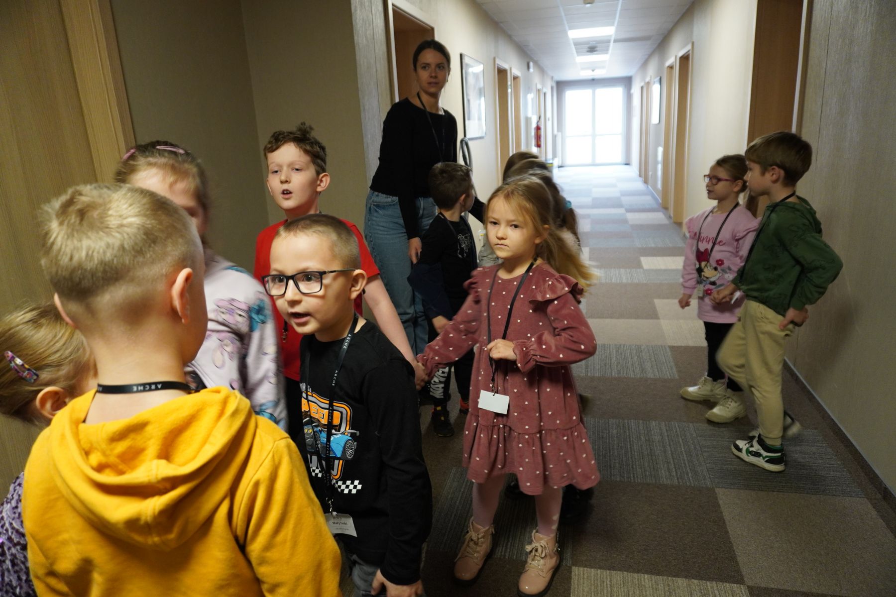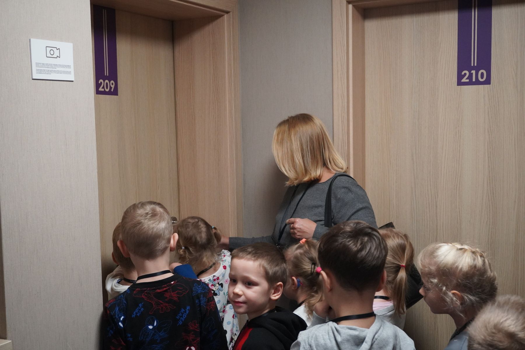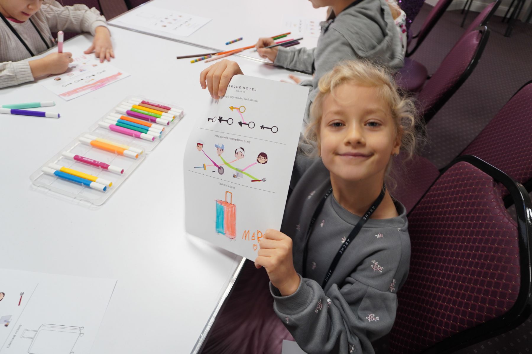 Zwiedzanie rozpoczęło się od recepcji, później dzieci przeszły do pokoi gościnnych – każdy z nich urządzony ze smakiem, nowoczesny, a jednocześnie przytulny. Wygodne łóżka, piękne widoki z okien i dbałość o każdy detal sprawiały, że chciało się tam zostać na dłużej.