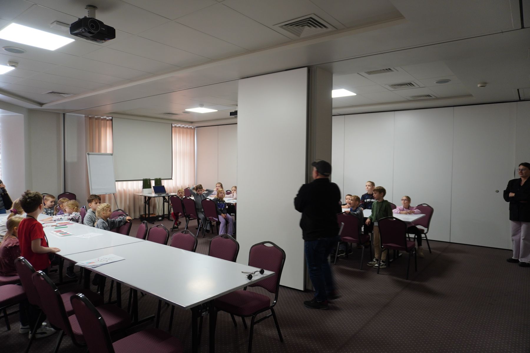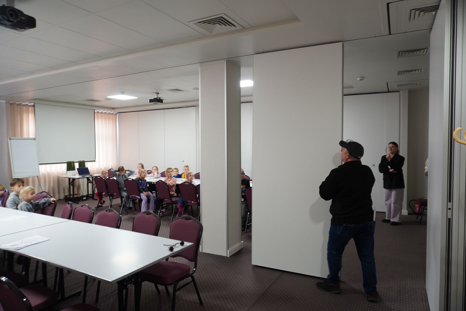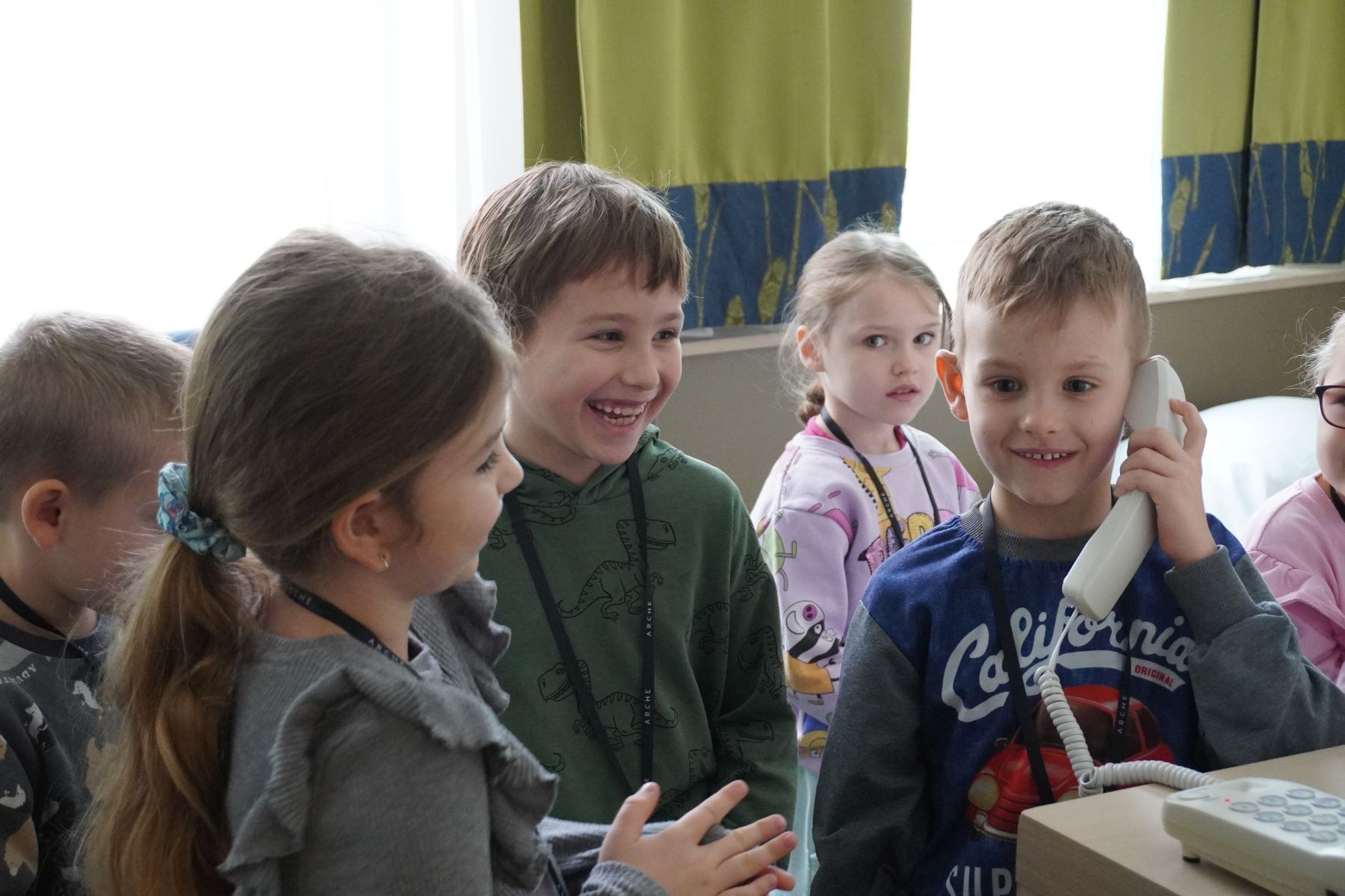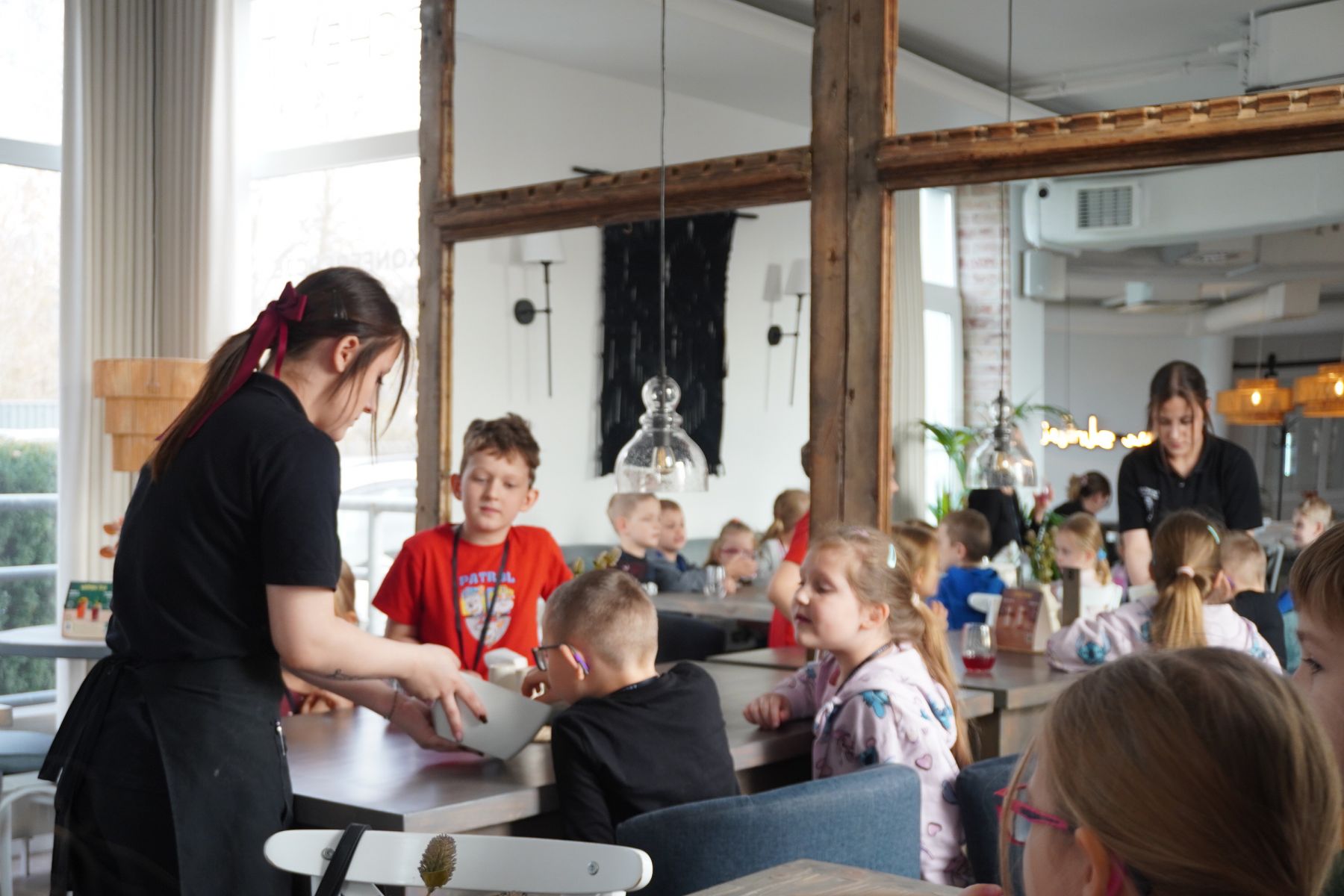 Zwiedzanie rozpoczęło się od recepcji, później dzieci przeszły do pokoi gościnnych – każdy z nich urządzony ze smakiem, nowoczesny, a jednocześnie przytulny. Wygodne łóżka, piękne widoki z okien i dbałość o każdy detal sprawiały, że chciało się tam zostać na dłużej.